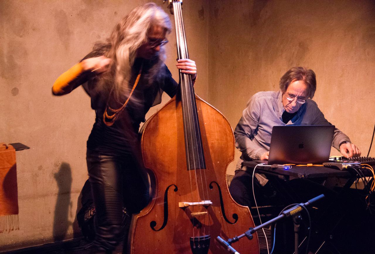 A musicologist and music journalist who not only devotes herself to writing about the music of (free) improvisation, but is also active as a double bass player, and a composer whose electronic compositions have a lot in common with the sonority and textures of some free improvisation and experimental music. We have been working together as an improvisation duo since 2012. In addition to the pure bowed and plucked bass sound, Nina Polaschegg uses numerous preparations in her playing to rethink the instrument and develop colorful nuances of sound. Bruno Strobl works with samples of various origins - some were created as part of his compositional work, many are double bass sounds recorded by Nina Polaschegg using close microphones. Purely played samples are juxtaposed with heavily electronically altered ones, thus forming an equivalent to the multi-dimensional sound of the double bass. The third element is always the room. We specifically incorporate its architecture, its acoustics, its atmosphere.