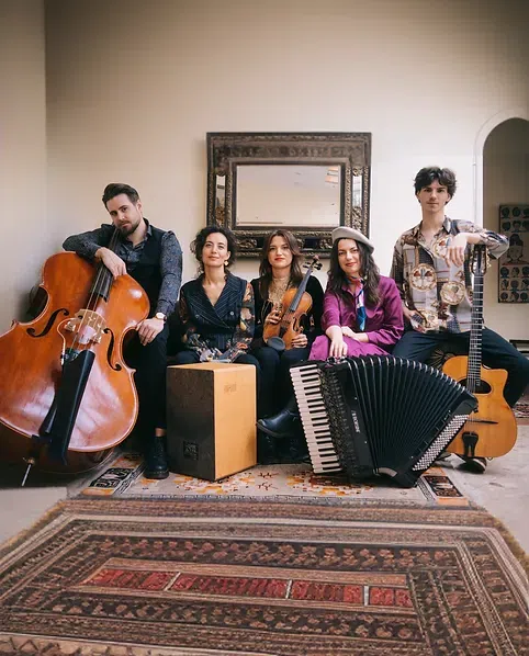 In Slavic mythology, we know Baba Yaga as a wild, unpredictable, often dangerous female figure. And that's exactly what the band Baba Yaga sounds like: spirited Balkan tunes mix with virtuoso klezmer pieces, lively gypsy jazz and sensual oriental dances. The five young musicians from Austria, Montenegro & Israel will heat you up with violin, double bass, accordion, guitar, vocals and percussion and get you dancing, celebrating and ecstatic.