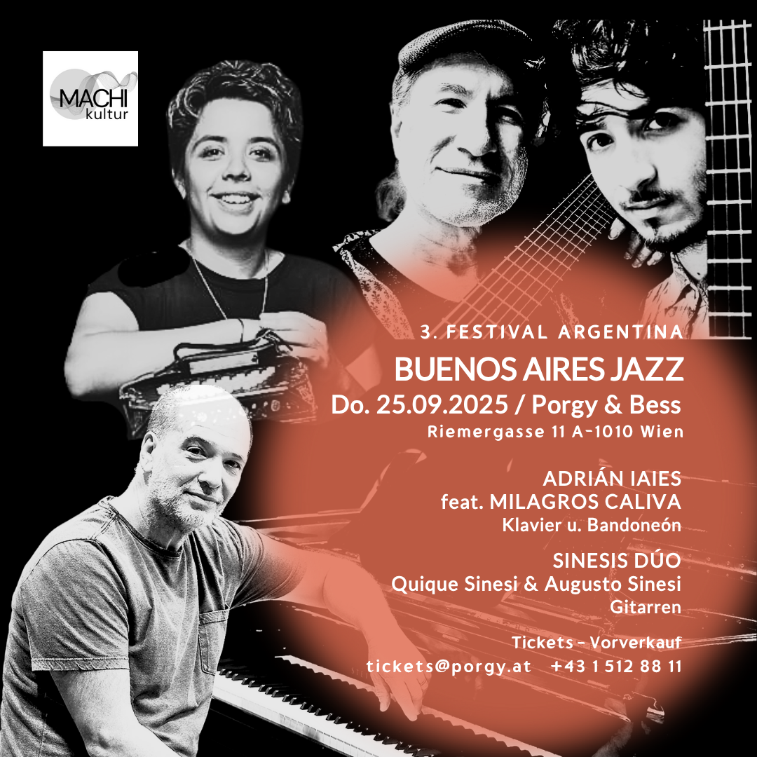 Tango & Jazz. A combination that is very popular today, but rarely interpreted with the deep understanding and excellence that these two genres require in order to do justice to their identity and captivate the audience from the very first note. Argentine pianist Adrián Iaies unfolds a colorful musicality that inevitably captures the listener's heart. To round off this musical celebration, young Argentine bandoneonist Milagros Caliva joins the intensity of this indispensable program, which marks the start of the 3rd Festival Argentina in Vienna.