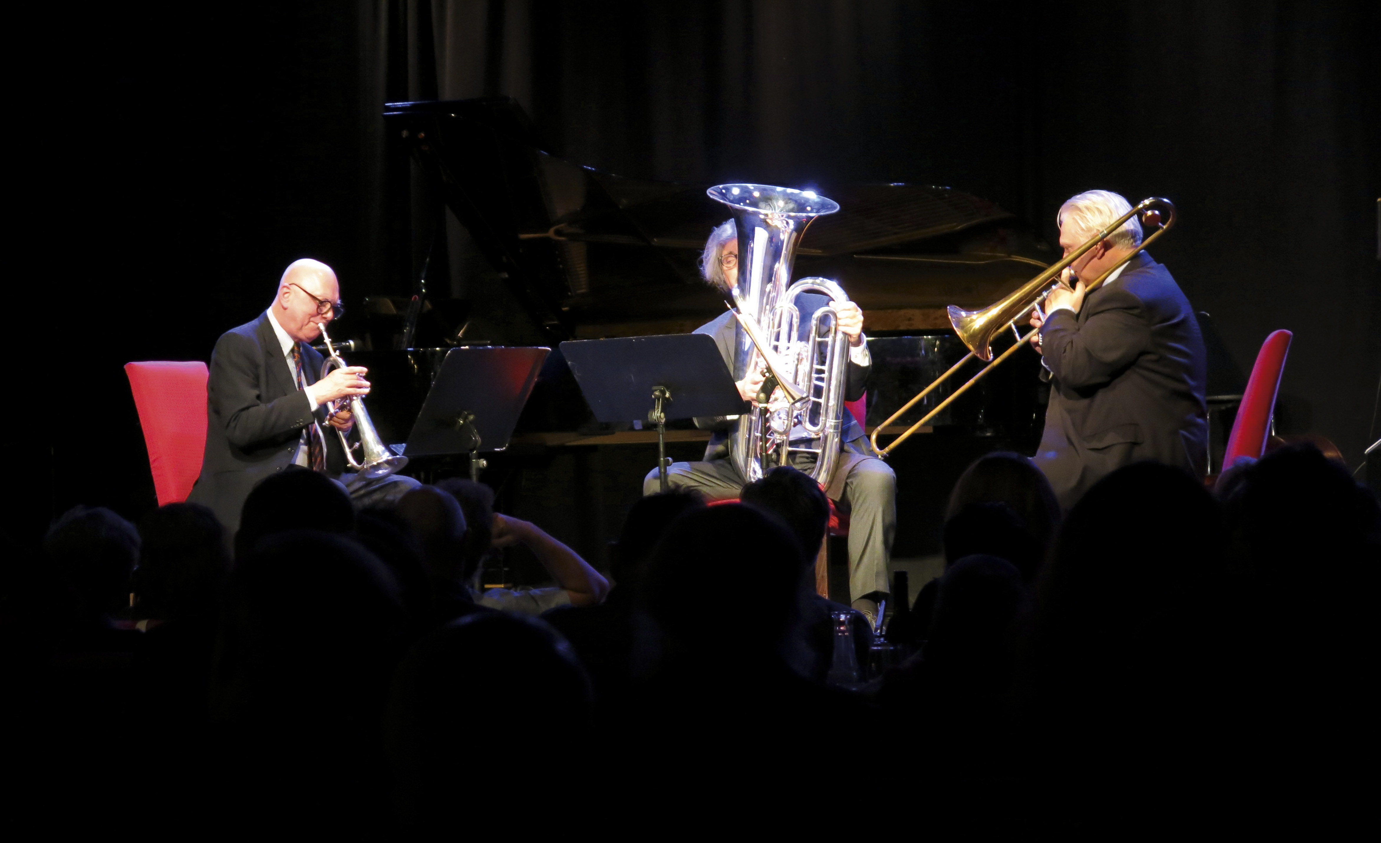 Eine würdige, markante Stimme der österreichischen Szene welche sich im Sog der Post Free Jazz-Haltung ihr Terrain eroberte, manifestiert sich in der Person des Trompeters und Flügelhornisten Franz Koglmann. Ein Musiker der einerseits mit den letzten bahnbrechenden sowie radikalen Umwälzungen im Jazz in den 1960er Jahren und mit den wegweisenden Entwicklungen der Wiener Klassik bzw. den nicht minder radikalen Ideen der Dodekaphonie der Wiener Schule sozialisiert wurde. Aus eben diesen Musikästhetiken schuf Koglmann ein zutiefst eigenständiges Klangbild, das in seinem grundsätzlichen Wesen einer europäischen Klang- und Formqualität zugeneigt ist. Aber doch auch ausreichend, wie es Koglmann lakonisch formuliert, Jazz zulässt. Letzteres betreffend, mit einem ausgeprägten Hang zum „Cool Jazz“ und dem daraus resultierenden „Third Stream“, was sich ja auch in der Zusammenarbeit mit Lee Konitz niederschlug. Koglmann bezeichnete diese Spielauffassung seinerzeit wellenschlagend als die weiße Linie im Jazz. Gemeint hatte er damit, fernab jeglichen Rassismus, einen wichtigen Beitrag zur im Wesentlichen von der schwarzen Community getragenen amerikanischen Jazzgeschichte. Jene „Third Stream“ Textur ist eine Fassette seiner Klangphilosophie, die mit der zweiten einer, abendländischen kammermusikalischen Konstruktivität, bestens kooperiert. Von weiterer Relevanz ist selbstredend der improvisatorische Aspekt, der den doch ziemlich detaliert durchdachten und ausgetüftelten Kompositionen eine fördernde Leichtigkeit, Elastizität, gediegene Aufgekratztheit und Unberechenbarkeit zubilligt. Eine repräsentative Bestandsaufnahme seines Schaffens der letzten dreißig Jahre, gleichfalls solange besteht auch Koglmanns Großformation Pipetet, bot die wohlprogrammierte Personale im Porgy & Bess. Subsumiert unter dem Titel „Third Stream & Chamber Jazz“. Tag eins bot gleich drei verschiedene Projekte von ausnehmend hohem Niveau. Die Intrada bestritt das traumwandlerisch agierende Duo KOGLMANN/ PeterHERBERT. Flügelhorn und Kontrabass in klangerlesener, sublimer Flaniererei. Mit einem hinreißenden Programm aus Koglmann Originalen und Fremdkompositionen offenbarten die beiden Musiker geniale melodische Ausdruckskunst und zusätzlich von Seiten Herberts außergewöhnliche, rhythmische Grandezza. Ausgespielt mit Eleganz und Sinnlichkeit. Aufgetrumpft hat auch in Folge das PIPE TRIO, das Koglmann mit den beiden Pipetet-Mitbegründern Rudolf Ruschel(tb) und Raoul Herget (tuba) auch bereits in den 1980er Jahren gründete. In ebenfalls konzisen Stücken eingedampfter koglmannscher lyrischer Klangessenz, gaben sich kontrapunktische Finessen in der Stimmführung und harmonische Kapriolen ein glanzvolles Stelldichein. Das Salz in der Suppe an diesem Abend war der abschließende Auftritt der aktuellen Version des PIPETETs. Teils, teils besetz mit langjährigen Weggefährten und neuen Persönlichkeiten. Letztere sind bereits bestens integrierte Kreativkräfte des Ensembles. Besonders Martin Fuss am Sopransaxophon stach mit einigen irrlichternden solistischen Beiträgen hervor. Dargeboten wurden leuchtende Abhandlungen des ersten Programmes „Schlaf Schlemmer, schlaf Magritte“, das Koglmann feindosiert mit frischem Odeur angereichert hat. Die Kompositionen, wobei die Hommage an Franz West „Tanzmusik für Paszstücke“ eine zentrale Stellung einnimmt, besitzen nach wie vor hinreichend Überzeugungskraft und strukturelle Brisanz. Die Musiker stolzierten unter dem unaufdringlichen Dirigat von Gustav Bauer, gewandt, lustvoll, hingebungsvoll durch Koglmanns Klangentwürfe. Auf jedwede Anregung reagierend und ausgestaltend. Ein großes Epos aus einem „Zwischenstromland“. Der Samstag verlief durchwachsen. Das ansonsten auch sehr homogen und spielwitzig auftretende Duo KOGLMANN/OskarAICHINGER (p), das Auszüge aus ihrer Bacharach-Reverenz zu Gehör brachte, wirkte ein wenig außer Atem, wiewohl die Qualität der Stücke und der Ausführenden unumwunden durchschimmerten. Sehr ausführlich der klassischen Formensprache zugewandt sind Koglmanns Kompositionen für das exxj… ensemble XX. jahrhundert. Er nimmt diese Formensprache aber nicht eins zu eins als Vorlage, sondern paraphrasiert, verbiegt, modifiziert sie und infiltriert sie mit Jazzparametern. Alles sehr gescheit und bewegend. Dieser Grenzgang zwischen europäischer Kunstmusik-Avantgarde und „drittstromigem Chamber Jazz“ war letztlich doch ein wenig steinig an diesem Abend. So konzentriert das exxj die klassischen Texturen umsetzte, so unausgegoren wurden die Jazzsequenzen offeriert. Den Abschlusstag eröffnete Koglmanns aktuellster „Tonkünstler-Zusammenschluss“ das Trio ALL´ ALBA, mit den beiden famosen Musikern Mario Arcari (oboe, englischhorn) bzw. Janos de Pasteur (cello). Benannt ist das Trio nach einem Stück des italienischen Jazz-Pianisten Giorgio Gaslini. Gegründet wurde es 2014 anlässlich der „Gluck Opernfestspiele“. Auch in dieser Triomusik verlautbarte Koglmann sein enormes Fingerspitzengefühl für die Synergie aus ausgeschriebenen, klassischen Ordnungsprinzipien entspringenden Sequenzen und jazzaffiner Unbestimmtheit. Wunderbare kammermusikalische Ereignishaftigkeit. Den Schlusspunkt setzte nochmals ein etwas umbesetztes PIPETET, schlagzeuglos und mit dem unvergleichlichen Grandseigneur des europäischen Jazz Tony Coe (ss, cl) als einem der Hauptsolisten. Zur Aufführung gelangten die beiden Koglmann Kompositionen „Let´s Make Love“ und „Bix Button Mix“. Zwei ausladende Werke von generell kontemplativem, sonorem Temperament, schroff in Kontrasten, angereichert mit scharfen Durchzeichnungen des musikalisch-strukturellen Geschehens, eingetaucht in herrliche dynamische und agogoische Wechselbäder und mit genügend Platz für solistische Finessen. Ein genussvoll flamboyantes Finale voll frischer Erinnerungen und novistischen Fakten.