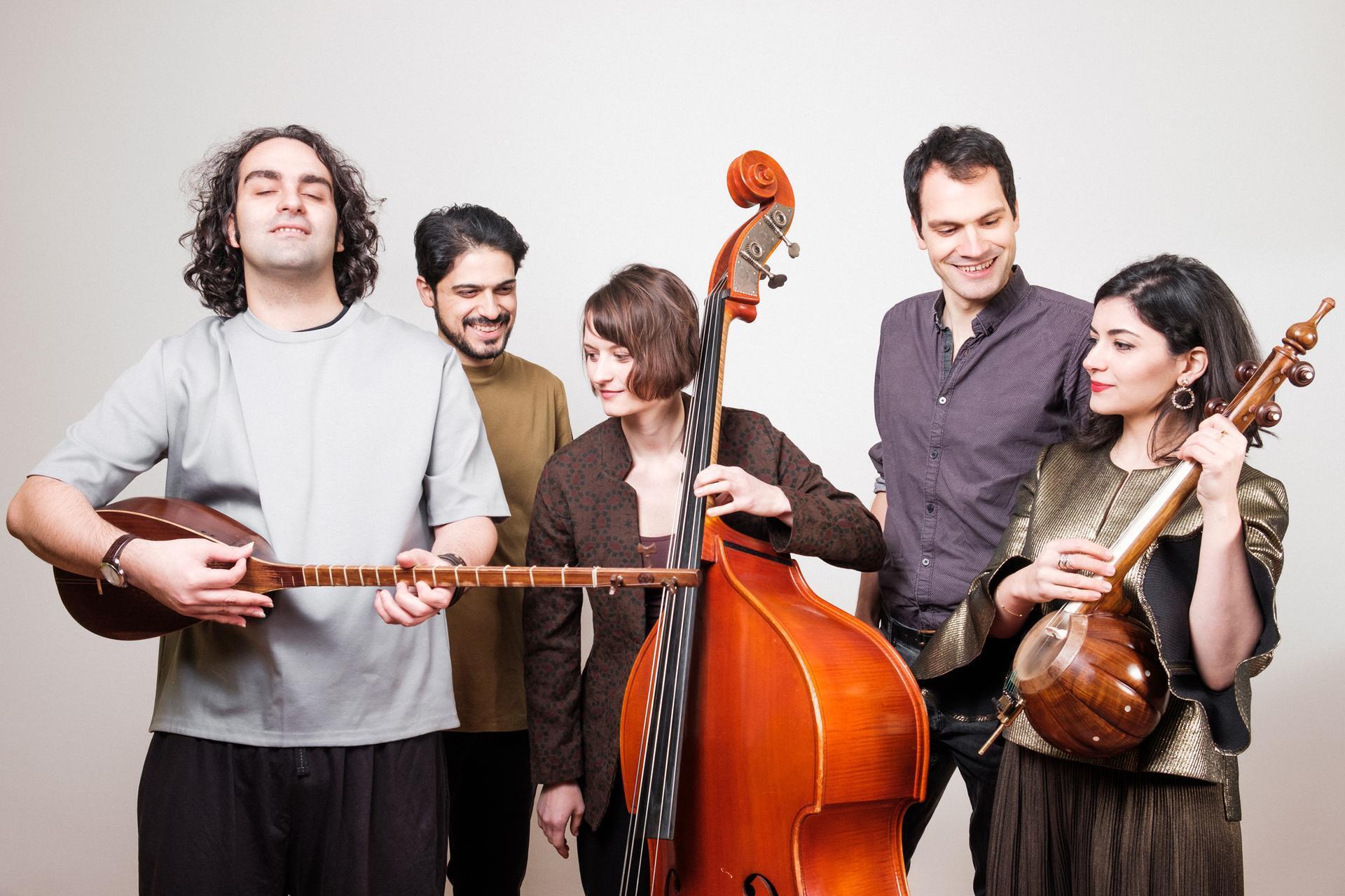Das junge Ensemble Kurdophone entstammt dem wahren kulturellen Schmelztiegel Wiens. Die fünf Musiker*innen kommen aus dem Iran und Österreich und bringen alte kurdisch-iranische Melodien und westliche Einflüsse selbstverständlich in Einklang. Ihre Ideen beziehen die Ensemblemitglieder dabei aus verschiedensten Stilrichtungen wie traditionelle kurdische Volksmusik, Klassik, Jazz bis hin zu zeitgenössischer Musik. Das 2019 bei Lotus Records veröffentlichte Debütalbum trägt den Titel Isomer – ein Begriff, der ursprünglich aus der Chemie stammt und Moleküle bezeichnet, die die gleiche Summenformel, also den gleichen Inhalt haben, aber in unterschiedlichen Formen und Strukturen auftreten. Auch Kurdophone bezieht seine Inhalte aus dem gleichen Kern, nämlich kurdische Volksmelodien aus dem Iran, und erschaffen damit die unterschiedlichsten Klanglandschaften. (Pressetext)