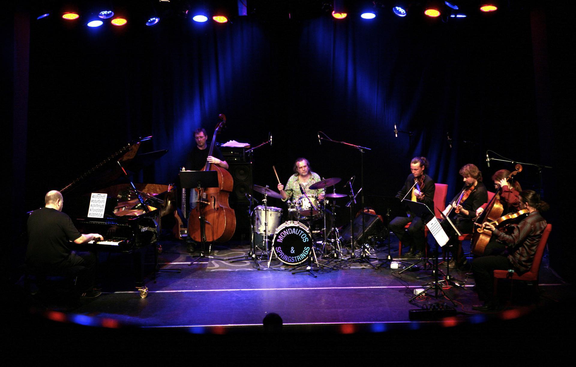 Das Mondauto Trio ist eine zum Klaviertrio zusammengedampfte Bigband. Die beiden komponierenden Gründerväter der Nouvelle Cuisine Bigband, Christoph Cech am Klavier und Christian Mühlbacher am Schlagzeug werden durch ein weiteres Urgestein, Tibor Kövesdi am Bass ergänzt. Wer bei „Gründerväter“ und „Urgestein“ an ein gemütlich dahinswingendes Jazztrio a la Longdrinkuntermalung denkt, ist auf der falschen Fährte. Quer durch die Jazzgeschichte ziehen sich hochvitale, im formgebenden Duktus eben völlig anders angelegte Aufnahmen von Kleinformationen um Bigbandleader, zitiert seien the Duke himself und Gil Evans, dessen Duoalbum Anti Heroes mit Lee Konitz Christoph Cech zu seinen wichtigsten 5 Alben zählt. So fängt das Mondauto Trio orchestrale Gedanken ein und transformiert sie zu epischen Entwicklungen, in denen Komposition und Improvisation zu einem sehr persönlichen Stil verschmelzen. Nach längerer Pause wieder aktiv und dann gleich in der legendären Vereinigung mit dem Spring String Quartet, Mondstring vom Feinsten.