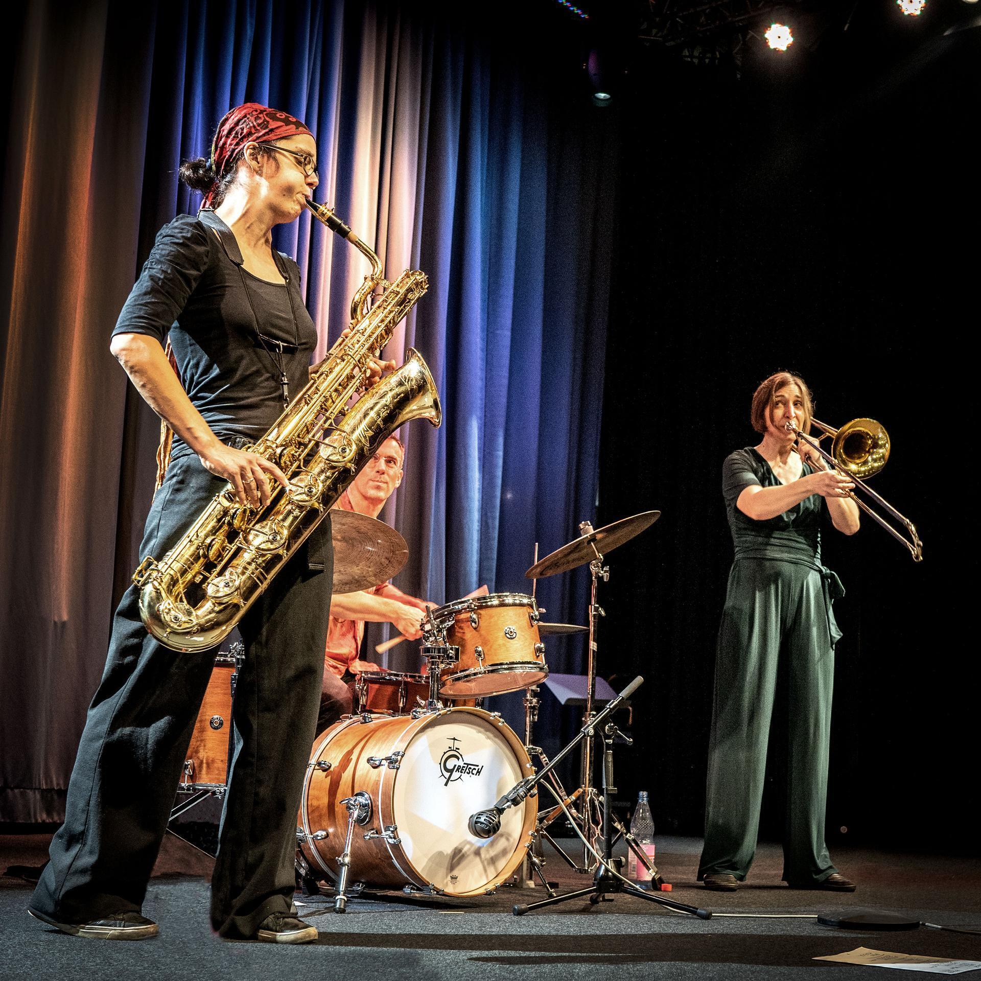 Die Posaunistin Anke Lucks, die Baritonsaxophonistin Almut Schlichting und der Schlagzeuger Christian Marien sind die Miniatur-Ausgabe einer Brass Band: Ihre kompakte Größe transzendieren sie mit einem rauen, überschäumenden Sound, den man von einem viel größeren Ensemble erwarten würde.