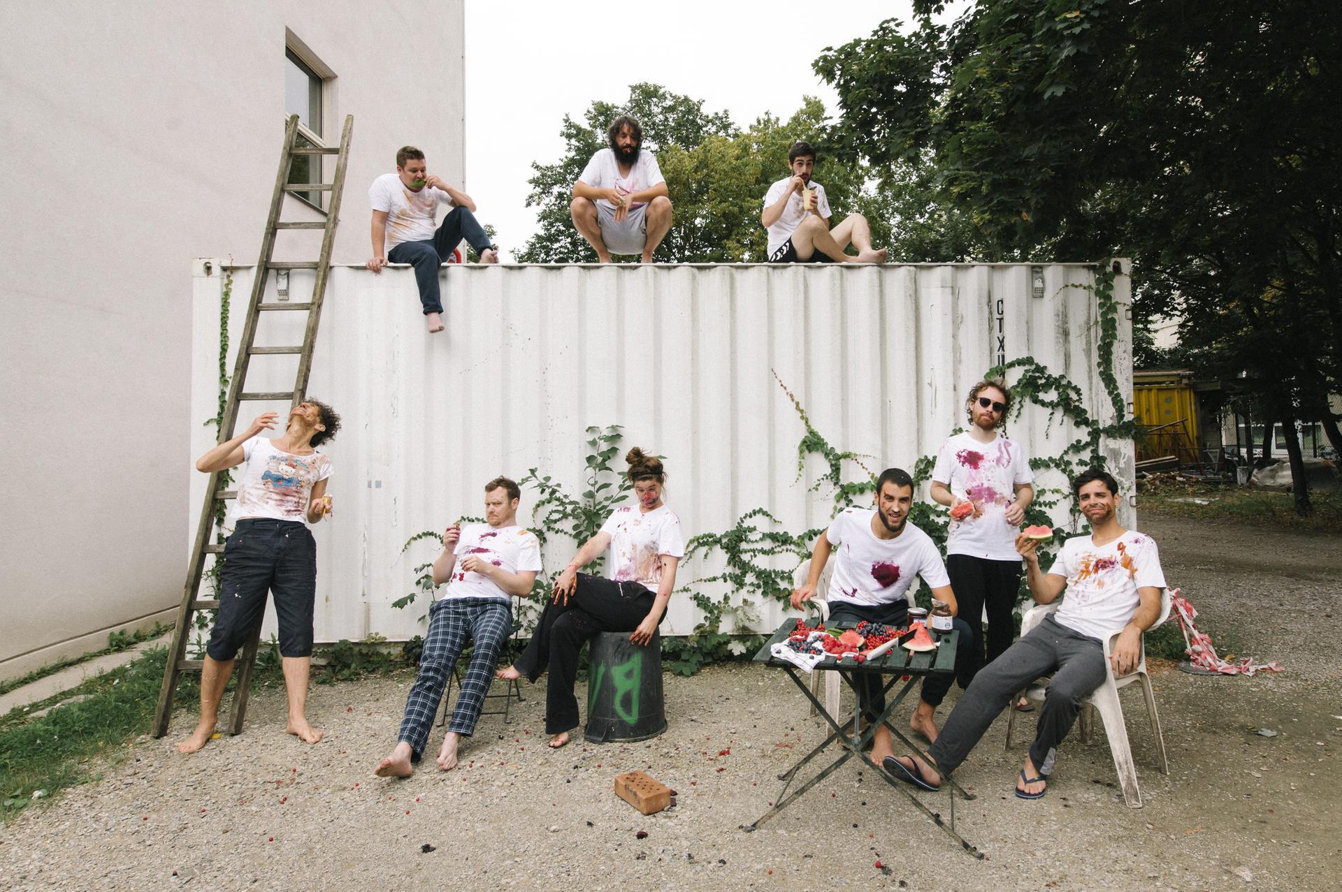Hier treffen pointierte Kommentare zum Zeitgeschehen auf üppige Bläsersätze und eine pochende Rhythmusgruppe. Tenor des Ensembles Kuhle Wampe - das sich bewusst auf den gleichnamigen kommunistischen Film “Kuhle Wampe oder: Wem gehört die Welt (1932)” mit seiner prononciert avantgardistischen Formensprache (Regie: Brecht/Dudow/Ottwalt) und grandioser kontrapunktischer Filmmusik (Eisler) bezieht - ist die künstlerische Auseinandersetzung mit Politik und Gesellschaft. Hierbei werden dezidiert politische Inhalte musikalisch in Kontext gesetzt, künstlerisch kommentiert, verarbeitet und weitergesponnen: Samples und gesprochene Texte bzw. gesprochene Versatzstücke werden mit maßgeschneiderter kompositorischer Praxis verwoben. Politisch inhaltsvolle Musik kann nicht nur ausschließlich klischeebehaftet, entweder in puristischer Reinform von ArbeiterInnenliedern oder Punk stattfinden, oder erst durch seitenlange Überinterpretationsversuche im Genre der sogenannten E-Musik vollzogen werden. Sie kann auch mittels eines differenzierten Weges — abseits von bisher Bekanntem — schlagkräftige, präzise und direkte musikalische sowie politische Aussagekraft haben. Das Ensemble hat ein Doppelalbum aufgenommen (Waschsalon Records), das es im Porgy&Bess feierlich präsentieren wird. Join the Party! (Leonhard Skorupa, Tobias Vedovelli)
