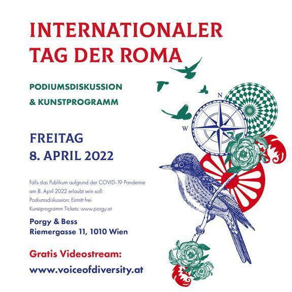 Der Internationale Tag der Roma wird jährlich am 8. April begangen – ein weltweiter Aktionstag, mit dem auf die Situation der Roma aufmerksam gemacht werden soll. Bereits zum vierten Mal organisiert der Verein Voice of Diversity eine Veranstaltung anlässlich des Internationalen Tages der Roma am 8. April. Mit einer hochkarätig besetzten Podiumsdiskussion wird die gegenwärtige Situation der Roma beleuchtet und diskutiert als auch die Roma Kultur mit einem einzigartigen Programm gefeiert.