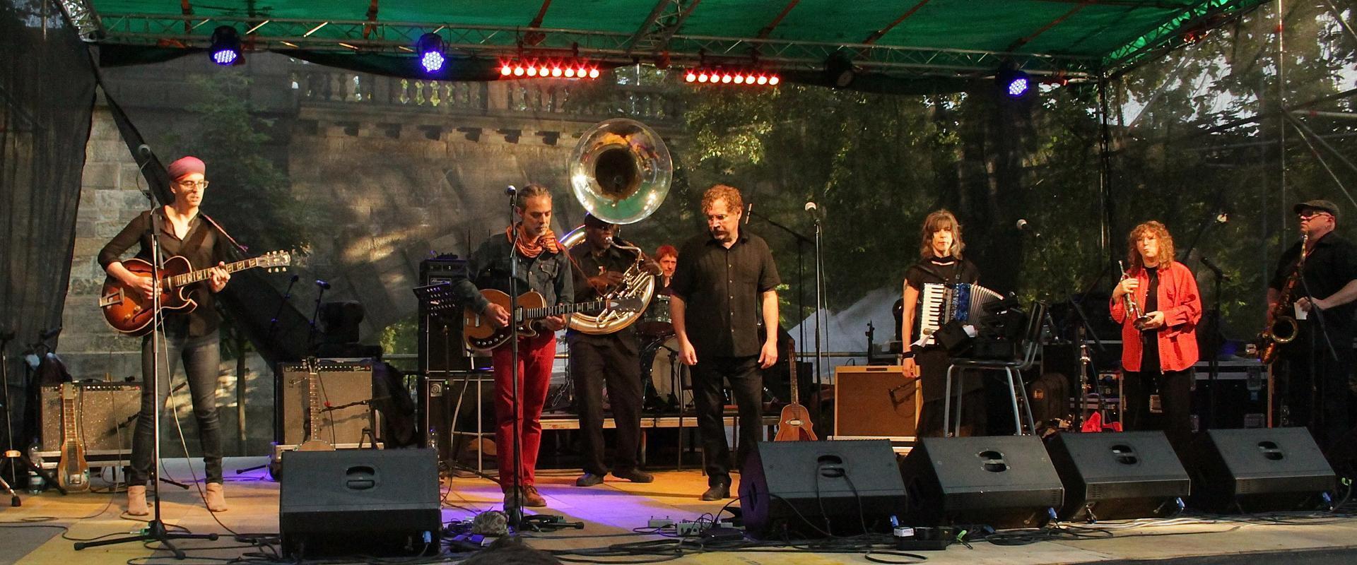 Die Kultband um Sänger, Lautengitarrist und Harmonikaspieler Wade Schuman stürmt über alle Grenzen hinaus und braut eine kochend heiße Mixtur aus Blues, Klezmer, Rocksteady, Rock'n'Roll und Balkanmelodien... Der kompakte Sound entwickelt sich aus dem lässigen Zusammenspiel von Tuba, Trompete, Saxophon, Gitarre, Mundharmonika, Cimbalom, Steel-Gitarre und Schlagzeug... Wahnsinn!