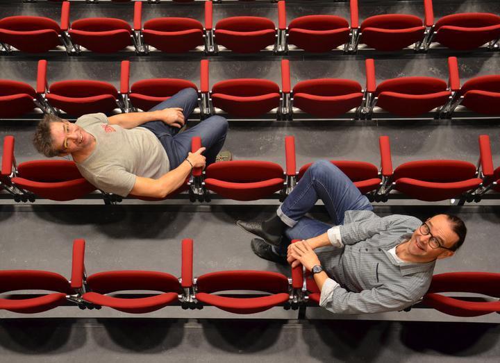 Der Komponist und Schlagzeugkünstler aus der Schweiz, Lucas Niggli, hat gemeinsam mit dem österreichischen Künstler Matthias Loibner ein Konzert am Freitagabend im Alten Schlachthof gegeben. Niggli ist dem Sigmaringer Publikum nicht unbekannt. Vor einigen Jahren trat er mit der chinesischen Künstlerin Xu Fengxia ebenfalls im Schlachthof auf. „Wir stehen dahinten und wissen nicht, ob wir anfangen sollen. Wie ist denn die Stimmung? Sonst gehen wir wieder nach hinten“, sagte Matthias Loibner noch kurz vor dem Konzert. Die Kombination Drehleier und Schlagzeug ist an sich schon ungewöhnlich, doch was die beiden Künstler daraus machten, zog das Publikum von Anfang an in seinen Bann.