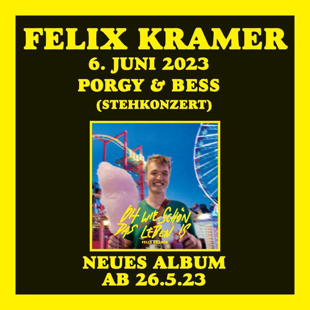 Felix Kramer hat sich mit »Oh wie schön das Leben is« freigespielt – und das hört man. Er kommt nicht mehr so stark über das lyrische Ich in seine Themen, nimmt keine Rollen ein, ist keine fiktive Figur, sondern er steht da jetzt halt mit der Zuckerwatte vorm Prater, trägt bunte Schuhe und singt über die Dinge, die ihn wirklich beschäftigen und interessieren. »Ich habe seitdem auch noch mehr Spaß mit der Musik«, sagt er.