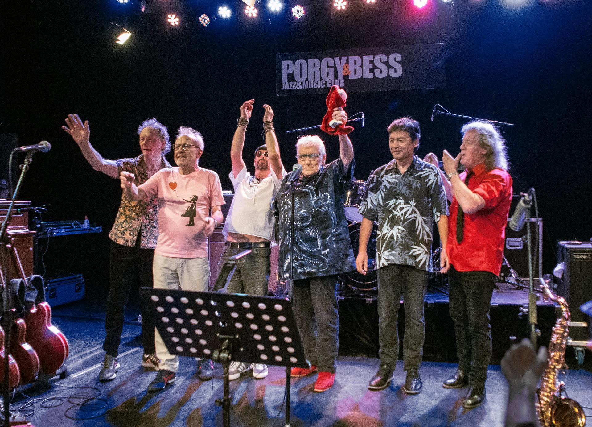 Er variierte fortwährend seine Basslinien, brachte herrliche Off-Beats bzw. kontrapunktische Sequenzen ins Spiel. Von noch mehr inhaltlicher Offenheit und emotionalem Überschwang profitierte die Musik in Colosseum-Klassikern wie u.a. „Walking In The Park“, „Valentine Suite“, „Lost Angeles“. Clempson und Nishikawara hoben mit ihren variationsreichen Improvisationen förmlich ab. Lustvoll brachen sie immer wieder die Funktionsharmonik auf, führten die Rock-Tonalität aus ihrer Enge. Lichterlohe Highlights waren Clempsons atemberaubendes Glissandi-Solo, die Sopransaxophon-Fantasie in bestechender Intonation und überaus jazzbeseeltem Melos, das Duett Farlowes, bei dem er in einer Art „Rock-Scat“ mit den Saxophonisten, diesmal am Tenor, improvisierte Melodielinien austauschte. Respektabel, welch muskulöser Stimme sich der 82-jährige Farlowe, obendrein begnadeter Entertainer, nach wie vor in Besitz wähnt. Hinzu kommt dieses eindringliche Bluesfeeling, ist seinen Kollegen gleichfalls zu bescheinigen, welches die schädeldeckenhebende Version des „Stormy Monday Blues“ durchströmte. Tribut an die schwarzen Erfinder des Blues, eines von Colosseums wichtigen Quellmaterialien. Colosseum pflegen keineswegs einen Legendenstatus. Sie revitalisieren große Werke ihres Songbooks respektive restaurieren ihre Musik für einen würdigen Platz in der Gegenwart. Unter jenem Banner von einst: Freiheit, Gleichberechtigung und künstlerische Selbstbestimmung. Vom Sturm der Entfesselung. (Hannes Schweiger, über das Konzert vom 19. September 2022)