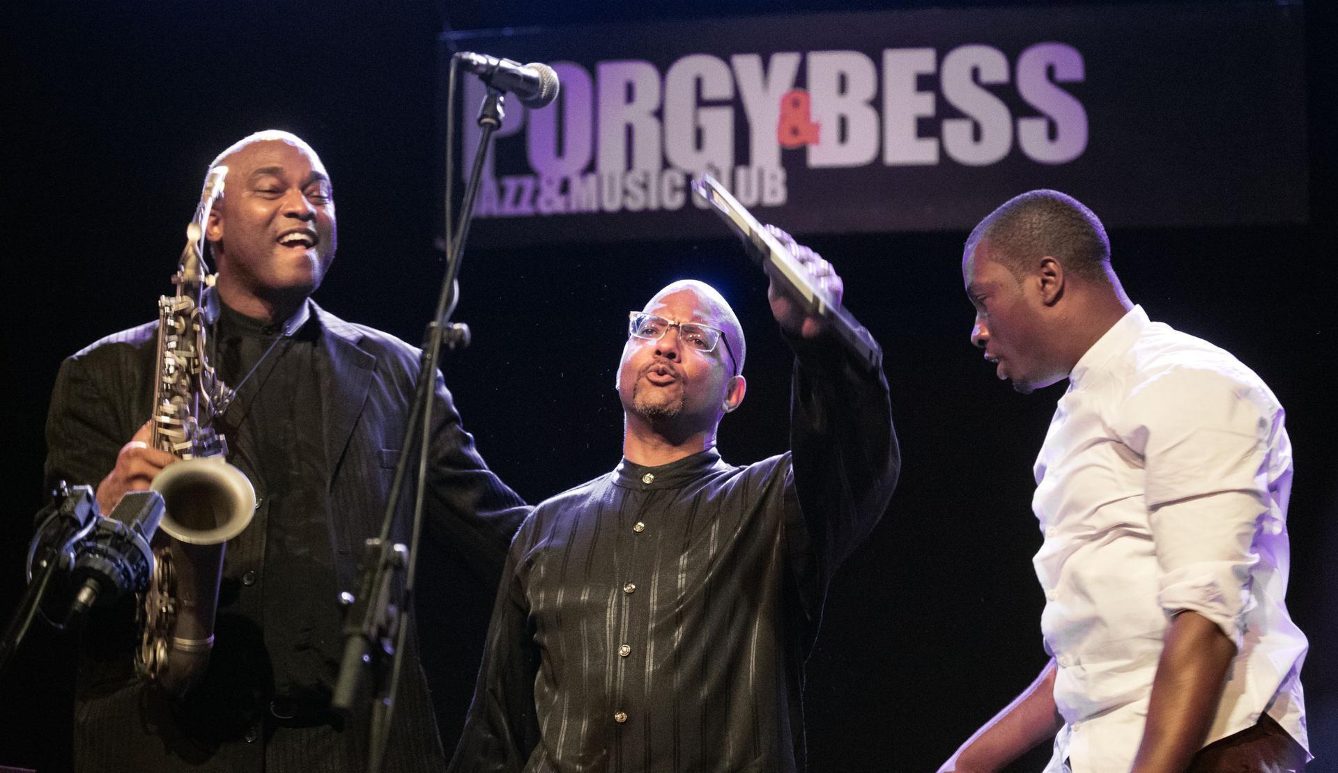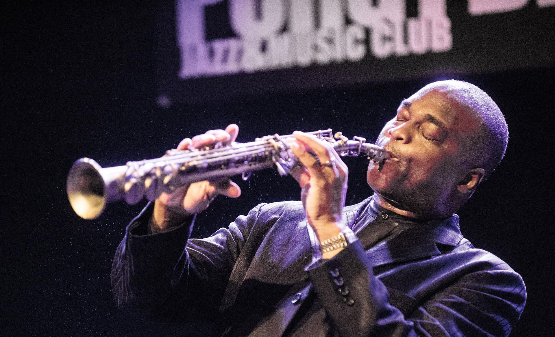 Kurz eingezählt und schon fegte das Trio im presto dahin. Im nächsten Moment war unumstritten klar, hier geht es nicht alleine um Schnelligkeit, sondern gleichsam um raffinierte melodische, harmonische Verstrickungen, gegeneinander versetzte melodierhythmische und asymmetrisch groovende Kapriolen in eben jenem Tempo. Ausgehend von Themen der europäischen Jazzikone Django Reinhardt bzw. dessen Sohn. Wiewohl man ein ausgesprochener Kenner zu sein hat, um diese herauszuhören. Überbaut von aufgebrochenen Neo-Bop Strukturen. Virtuosität an der Grenze zum Machbaren. Keine Hingabe an leere Klanghülsen oder plakative Artistik. Dieses Geschick, für Carter eine unabdingbare Grundlage, ist bis an den Rand mit Musikalität angefüllt. Unaufhörlich angefacht von glühender Begeisterung und teils dorniger Subtilität. Herausragendes Interplay als Schlüsselfunktion. Carter seinerseits bewegt sich mit seinen Fähigkeiten auf einem Ausnahmeterrain. Mit derartiger technischer Brillanz und individueller Klangsprache auf den diversen Saxophonen kann kaum noch sonst jemand aufwarten. Noch dazu besitzt bei ihm alles eine unwahrscheinliche Unangestrengtheit, Fokussiertheit. Carter hat einen Ansatz aufgegriffen und perfektioniert, den David Murray vor vier Jahrzehnten mehr oder weniger aus der Taufe hob. Die bruchlose Assemblage des reichhaltigen Traditionsfundus mit der avantgardistischen Mentalität des Jazz. Einst unzulänglich als Neo-Klassizismus abgestempelt. Carter pflegt restlose Freiheit im Umgang mit dem Materialbestand.