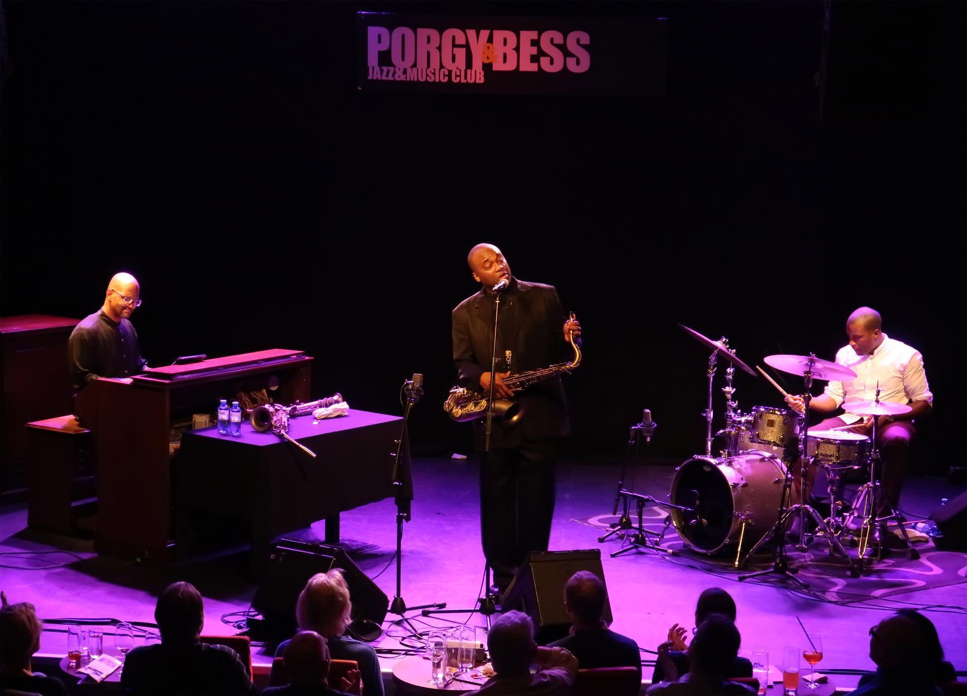 Kurzerhand geleitete dieser „Mad Boy“ des Saxophones durch die afroamerikanische Ahnengalerie, der vom Jazz verantworteten Saxophonkunst. Er schulterte Coleman Hawkins, Lester Young, Jonny Griffin, Eddie „Lockjaw“ Davis, Rollins, Coltrane, Dolphy, Ayler nach der Devise: “Das haben sie mir vermittelt, daraus formte ich meine eigene Stimme.“ Zitate aus der Jazzliteratur, ja selbst solche anderer Genres mit hohem Abnützungsgrad wie der Donauwalzer, die „Habanera Arie“ aus Carmen, „In The Mood“, erfüllen eine schlüssige Bedingtheit. Da sie inhaltlich integriert sind, nie überbeansprucht werden und gefühlt, spontan aufblitzen. Trotz aller Rastlosigkeit, festgriffiger Energie in Carters Spiel, das im Klimax seiner all inclusive-Obsessionen gipfelte, respektive des Trios im Allgemeinen, verstellte die makro- wie mikrokosmischer Klangfülle, massiger Ensemblesound bis Obertonwolken, in keiner Phase die Ausdehnung formaler Klarheit. Da fand dann schon auch die eine oder andere störrische Ballade ihren Platz. Nicht minder vital bounced Carters Partner im Entfachen der ankernden Bewegtheit. Komplex geschichtet. Verlagerungen erfolgten einmal hin zu trockener Spannung, ein andermal sprangen bedrohliche Rhythmen die ZuhörerInnen an. Ereignisse der Extraklasse deren Salz in der Suppe diese überbordende Spiellaune markierte. (Hannes Schweiger, über das Konzert im Oktober 2019)