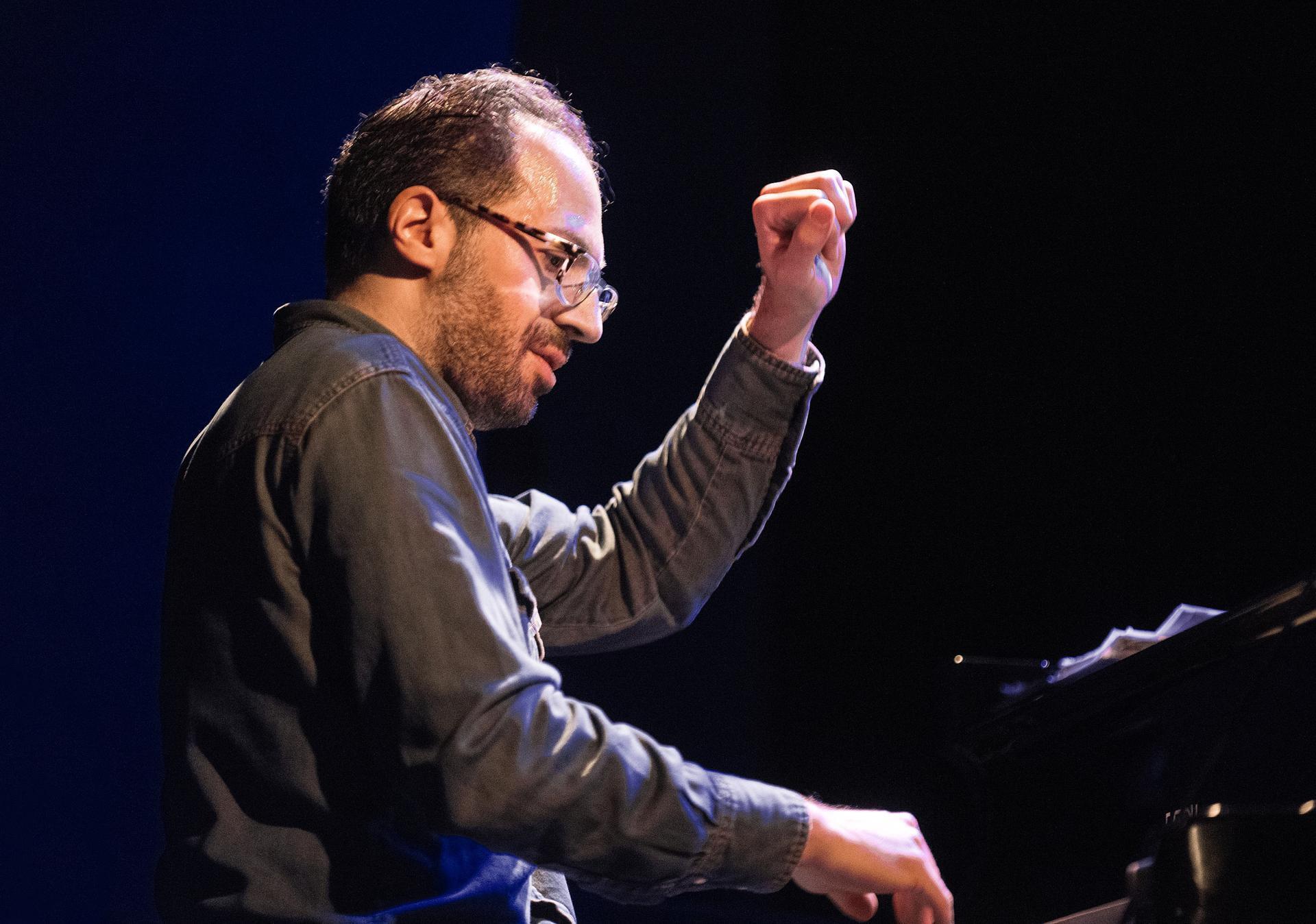 Der nächste Stone-Act (MusikerInnen aus dem Umfeld von John Zorns Klangrefugium) war heran gerollt. Gleich vorweg: jener pflanzte einen heroischen Monolithen in den Raum. Dimensioniert von einem fulminanten Trio unter der Leitung des ausnehmenden, wohl derzeit komplettesten, jazzaffinen New Yorker Tastenvirtuosen Brian Marsella. Einer der neuen im Zorn Universum. Seine ihn ständig fordernden Mitverantwortlichen sind die beiden arrivierten, rhythmischen „Hellseher“ der Down Town-Szene Dunn und Wollesen. Auslösendes Steuerungsmodul für die ätherischen Aggregatzustände sind Zorns kompositorische Entwürfe. Über zwei Dutzend zeitlich überschaubarer Stücke aus dessen „Masada Book 2-Book Of Angels“, welche jüngst gleich den Weg auf einen Tonträger gefunden haben, übersetzte das Trio zu hinreißenden Kleinoden. Wieder bewies Zorn ein goldenes Händchen in der Auswahl der Interpreten. Sind Dunn und Wollesen seit langem so etwas wie telepathische Mitstreiter des musikalischen Hyperaktivisten, so verblüffte Marsella mit der relativ kurzfristig aufgebauten Kongruenz mit Zorns musikalischer Welt. Des Pianisten instrumentaltechnische Virtuosität greift perfekt in das komplexe Kompositionsgetriebe von Zorn, der in typischer Weise eine Lesart der Nonkonformität, der sekundenschnellen Wechsel, der Versiertheit in verschiedenen musikalischen Diktionen einfordert. Das Wesen der Stücke hat er in der Sphärik des Jazz verortet, größtenteils fusioniert in einer frechen neo-bopigen/modalen Gemengelage, die in relativ konstanter Progression sich übte. Reflexionen über ikonische Stilisten des Jazzpianos, Fats Waller, Bud Powell, Bill Evans, McCoy Tyner oder Cecil Taylor seien genannt, prägten die Inhaltlichkeit. Wohlwissend ist Zorn nicht berechenbar. So prallten unterschiedliche Ästhetiken aufeinander, rieben sich, sogen sich auf oder verhallten beispielsweis in der Melodik jüdischer Musik oder auch Kürzeln klassischer Harmonien. Hierarchische Positionierungen der Instrumente sind in der Formidee soundso obsolet. Zeugnis von Zorns umfassendem, musikalischem Erkenntnisvermögen. Wie er heutige musikalische Qualität, durch den selbstverständlichen Umgang mit unterschiedlichstem Material, definiert, in einer Art „aleatorisch improvisiertem Pluralismus“, hat fast Alleinstellungsmerkmal. Kurz zurück zu den kreierenden Interpreten.