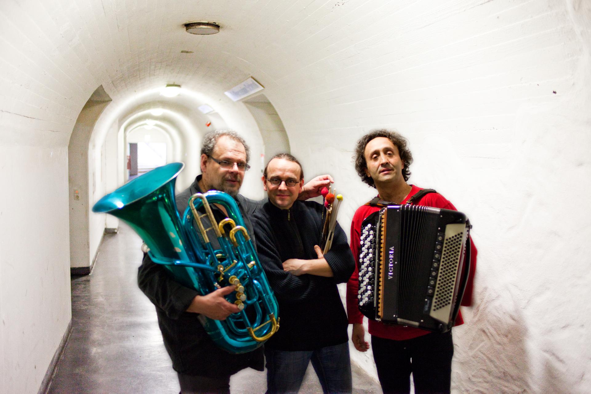 Luciano Biondini und Michel Godard trafen sich erstmals in der Band von Rabih Abou Khalil. Später folgte das Projekt TubaTuba. Schliesslich trafen sie sich erneut im Trio mit dem Cellisten Ernst Reijseger. Daraus ergibt sich ein neues Trio mit dem Schweizer Schlagzeuger Lucas Niggli.
