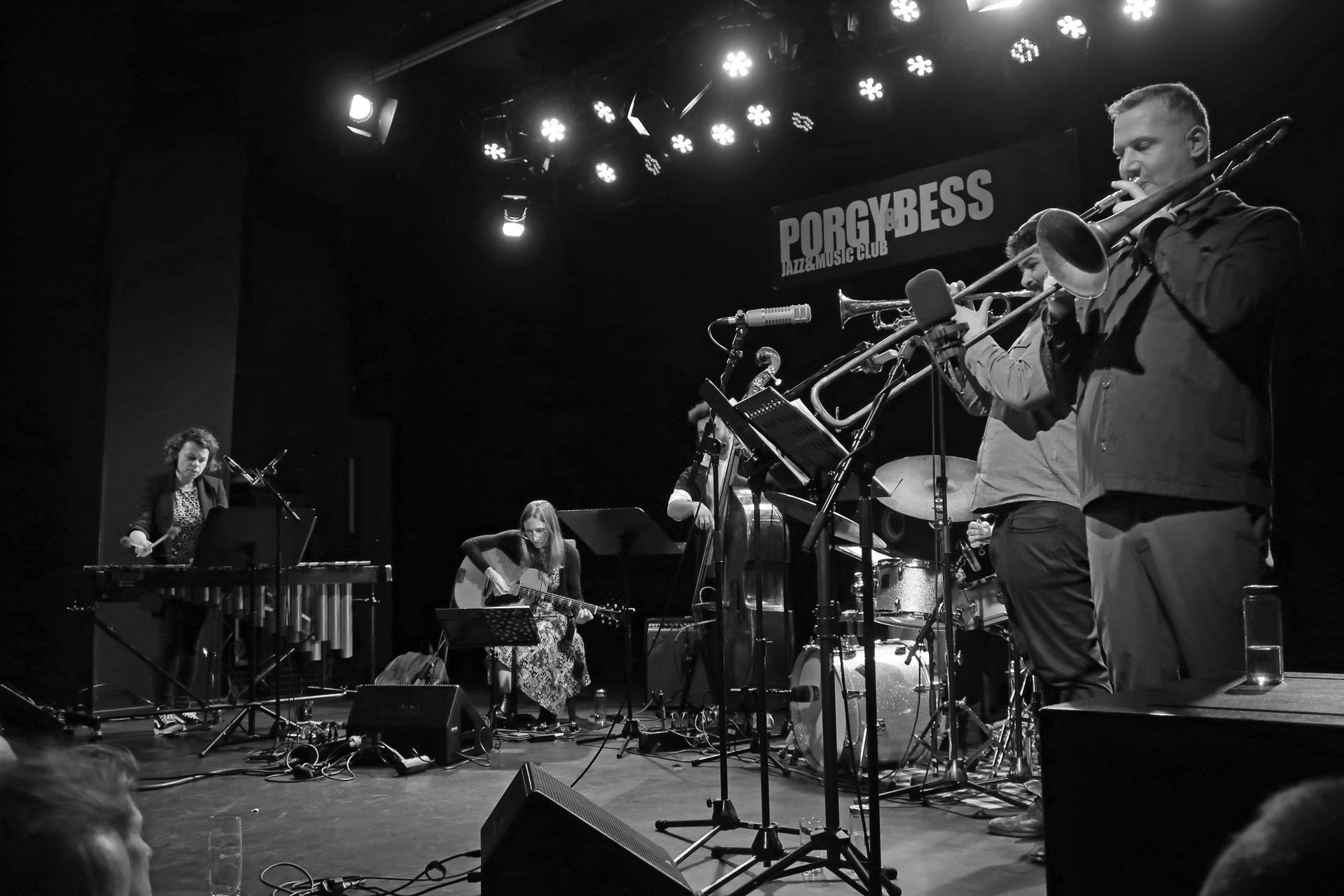 Sie ist derzeit in aller Jazzkritiker/Jazzaficionados Munde. Und ihr Tonträger-Output ist mittlerweile auch guinnessbuchverdächtig. Mary Halvorson jüngster diesbezüglicher Doppelschlag beinhaltet zum einen das „Belladonna“-Projekt, eine Kooperation der Gitarristin mit dem Mivos Streichquartett, und zum anderen das „Amaryllis“ getaufte Sextett - in ungewöhnlicher Besetzung. Mit diesem ist sie derzeit auf Tour. Inhaltlicher Ansatz Halvorsons ist hier ebenfalls das Ineinanderaufgehen von kompositorischer Bindung und extemporierter Weiterführung. Wobei die Erkundungen klangfarblicher Möglichkeiten einen wesentlichen Aspekt darstellen. Da leuchteten ihre intensiven Studien und Kooperationen mit „Universalmusiker“ Anthony Braxton durch. Jedoch sind diesmal die strukturellen Intensionen die sie dem Improvisationsvermögen ihrer PartnerInnen zur Verfügung stellt durchwachsen. Miteinbezogen hat Halverson Praktiken der Jazz Moderne, kammermusikalische Gepflogenheiten, partielle interferierende Klangexplorationen, periodische Jazzrhythmik mit rudimentärem Rock-Touch. Primär steckt jedoch ein relativ konventioneller Bauplan der Kontrapunktik, des Orgelpunktes, modaler Polyphonie und von Quintenzirkelkonstruktionen dahinter. Über weite Strecken greift Sittsamkeit Platz und ein Elegie-Modus beansprucht Dominanz. Dem auf den Fuß folgte eine gewisse Zähflüssigkeit und es fehlt den Kompositionen die strukturoppositionelle Ebene. Da lösten auch Halvorsons gelegentliche „out-tuned“ Akkorde und abstrakte Soundpixel nichts aus. Die sich zudem solistisch sehr zurück hielt. Lediglich in einer freien Duo-Sequenz mit der Vibraphonistin Patricia Brennan trat ihre Brillanz als Improvisatorin hervor. Apropos Vibraphonistin: die war schlichtweg grandios. Nicht nur, dass sie den Partituren nötige Elastizität und Dringlichkeit zuteil werden ließ, war sie auch als Solistin, unter absoluter Beherrschung des Instrumentes, ein überragender Fantasiequell. Harmonische Vernetzungen gingen in ihrem Spiel mit großer innerer Logik in einen rauschenden, melodischen Fluss über. Rhythmisch scharfkantig akzentuiert. Und in enger Verschränkung mit dem beeindruckenden Bassisten Nick Dunston, der sein wendiges, präzises Spiel auf einem muskulösen Ton gründet, verpasste Brennan der Musik rhythmische Statur von wesentlichem Gehalt. Dem Schlagzeuger fehlte es nämlich dahingehend an Initiative. Er nützte vornehmlich die Soli um seine Versiertheit überborden zu lassen. Den beiden Bläsern hörte man unumwunden ihre Fähigkeiten an, ließen diese aber nicht richtig von der Leine. Das Jazzidiom wurde von ihnen zu routiniert gepflegt. Insofern interessant weil Halvorson eine polychrome Klangdenkerin und-finderin ist. Wozu ihre Musik alle Beteiligten dahingehend anzuregen trachtet. Jedoch die Amaryllis ist längstens noch nicht am verblühen. Mary Halvorson hat genügend Humus in ihrem Köcher den sie hinkünftig noch gezielter anwenden wird. (Hannes Schweiger über das Konzert vom 23. März 2023)