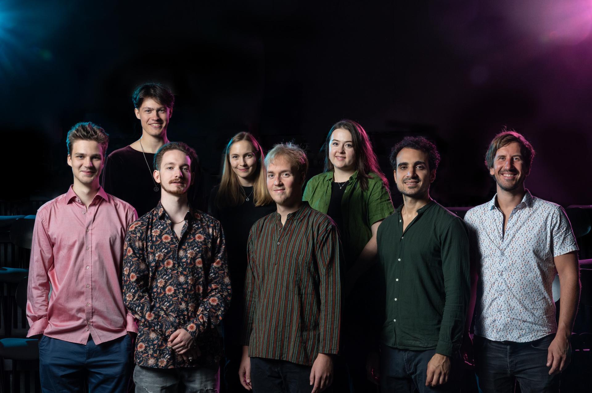 Zwei Schlagzeuger werden ihre ganz unterschiedlichen rhythmischen Welten vorstellen: Janis Jaunalksnis aus Lettland und Juan Ibarra aus Uruguay. Der slowenische Gitarrist Jure Slapar steuert sowohl eine enorme Fluidität als auch elektronische Farben bei. Am Bass prägt der aus Brasilien stammende Thiago Duarte den Herzschlag der Band mit seiner überzeugenden und eleganten Interpretation des Pulses. Der Pianist Wes Georgiev schließlich, ein Amerikaner mit bulgarischen Wurzeln, ist ein wortgewandter und ausdrucksstarker Improvisator, dessen moderne Sichtweise fest in der Tradition des Jazz verwurzelt ist.