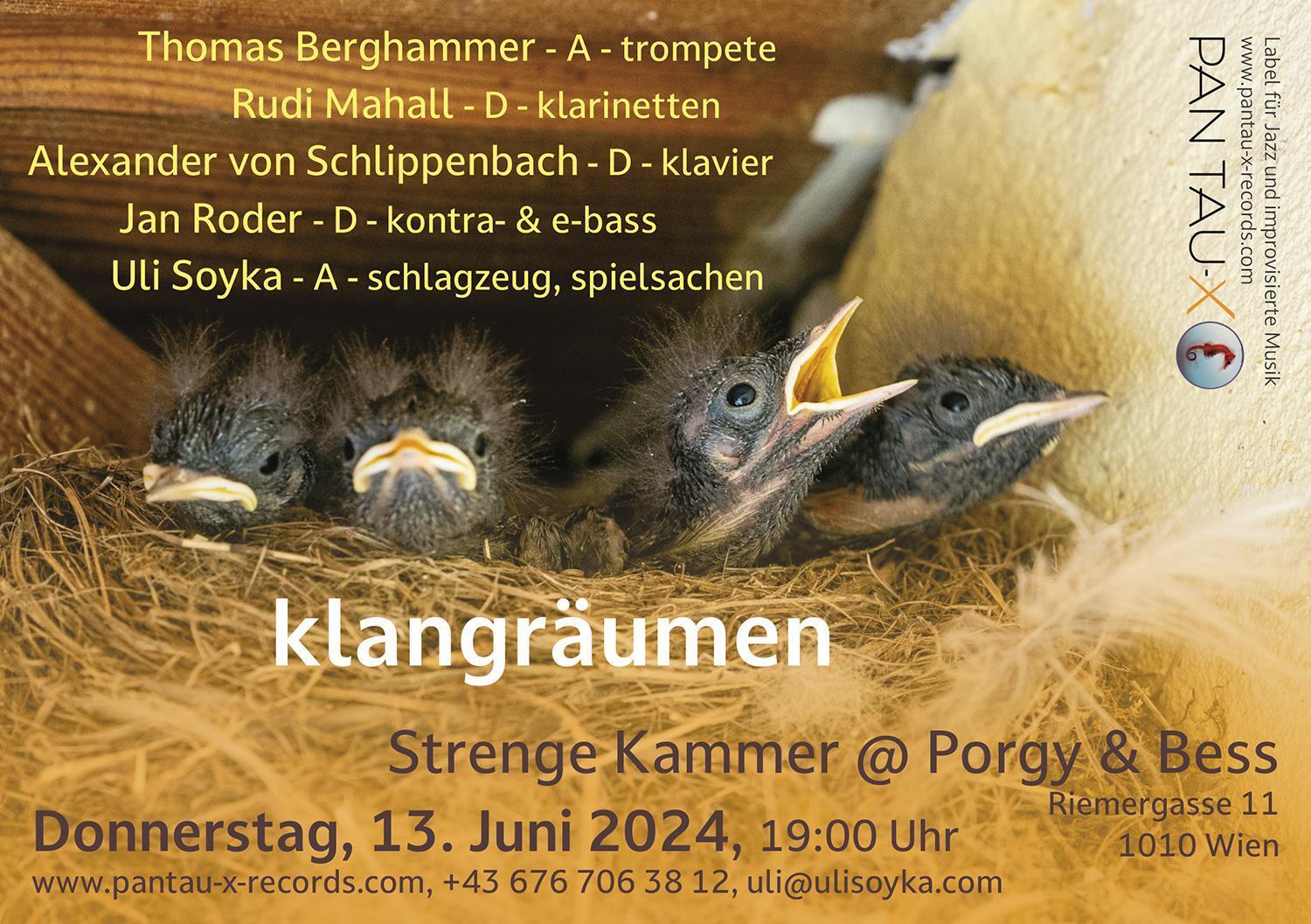 Die Musik von „klangräumen“ entsteht aus dem reichen Interaktions-Erfahrungsschatz der agierenden Musiker aus dem Bereich von frei erfundener, improvisierter Musik!
