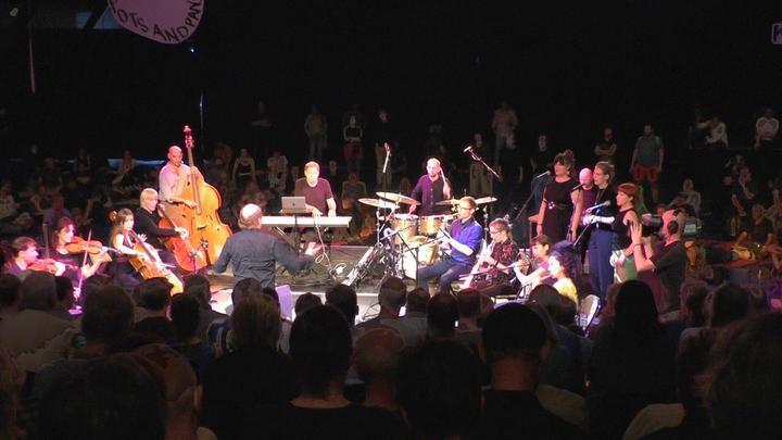 1. absolute ad hoc Kreation vonseiten des Ensembles und des Conductors, keine vorbereiteten oder vereinbarten Parts oder Designs; keine Proben, nur ein kurzes Try-out der Handzeichen vor dem Konzert,