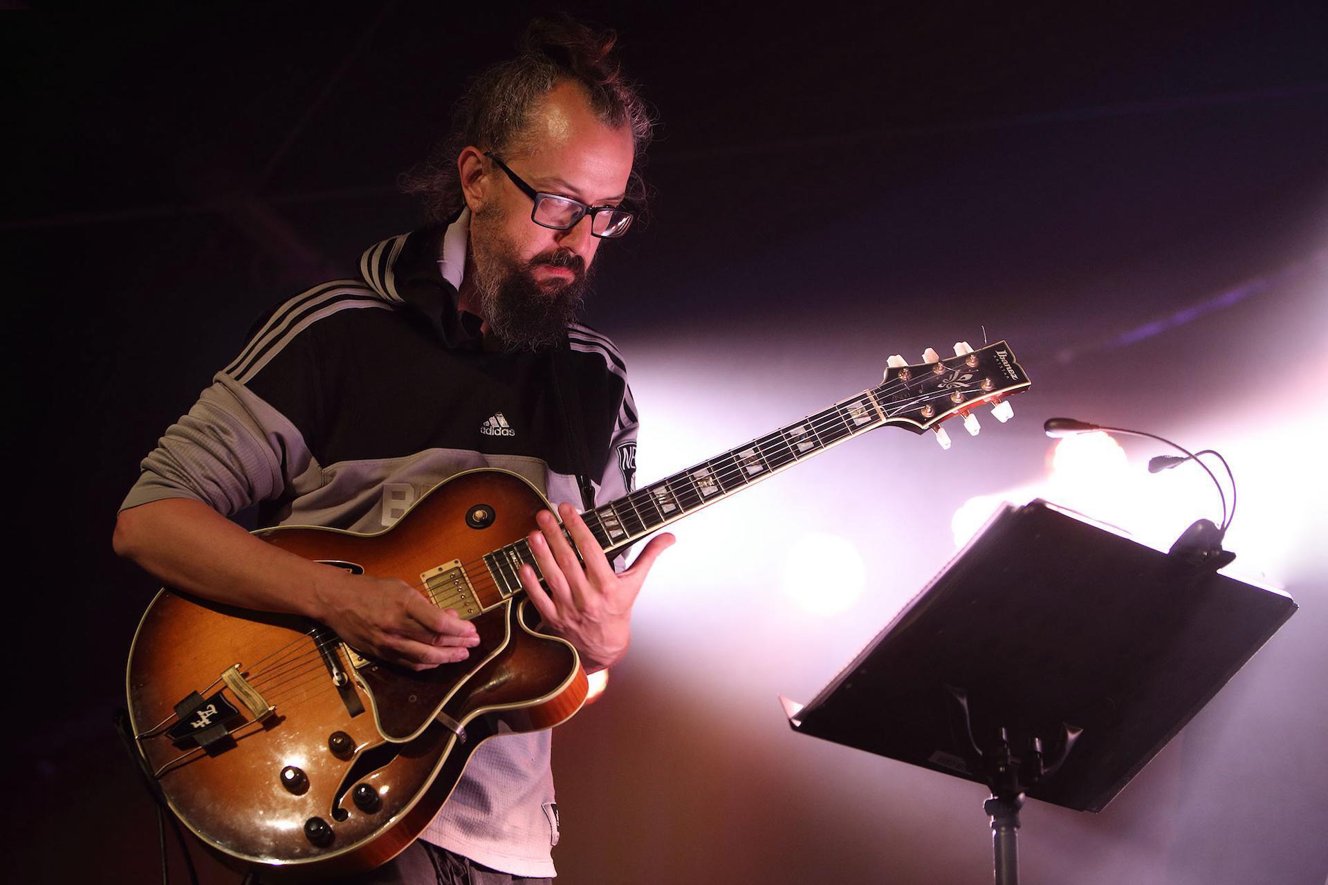 Der umtriebige Gitarrist Samo Salamon ist regelmäßigen Club-Besucher:innen kein Unbekannter, spielte er doch im Laufe der Zeit mit so unterschiedlichen Musikern wie Tim Berne, Tom Rainey, Paul McCandless und zuletzt mit Arild Anderson und Bob Moses.