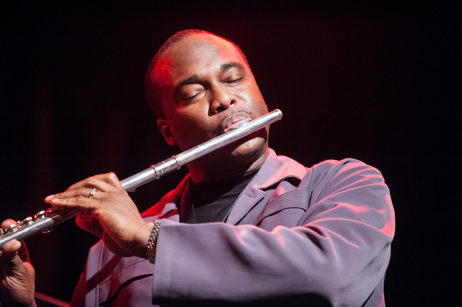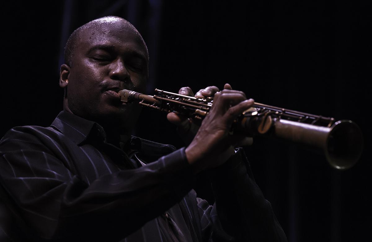 Kurz eingezählt und schon fegte das Trio im presto dahin. Im nächsten Moment war unumstritten klar, hier geht es nicht alleine um Schnelligkeit, sondern gleichsam um raffinierte melodische, harmonische Verstrickungen, gegeneinander versetzte melodierhythmische und asymmetrisch groovende Kapriolen in eben jenem Tempo. Ausgehend von Themen der europäischen Jazzikone Django Reinhardt bzw. dessen Sohn. Wiewohl man ein ausgesprochener Kenner zu sein hat, um diese herauszuhören. Überbaut von aufgebrochenen Neo-Bop Strukturen. Virtuosität an der Grenze zum Machbaren. Keine Hingabe an leere Klanghülsen oder plakative Artistik. Dieses Geschick, für Carter eine unabdingbare Grundlage, ist bis an den Rand mit Musikalität angefüllt. Unaufhörlich angefacht von glühender Begeisterung und teils dorniger Subtilität. Herausragendes Interplay als Schlüsselfunktion. Carter seinerseits bewegt sich mit seinen Fähigkeiten auf einem Ausnahmeterrain. Mit derartiger technischer Brillanz und individueller Klangsprache auf den diversen Saxophonen kann kaum noch sonst jemand aufwarten. Noch dazu besitzt bei ihm alles eine unwahrscheinliche Unangestrengtheit, Fokussiertheit. Carter hat einen Ansatz aufgegriffen und perfektioniert, den David Murray vor vier Jahrzehnten mehr oder weniger aus der Taufe hob. Die bruchlose Assemblage des reichhaltigen Traditionsfundus mit der avantgardistischen Mentalität des Jazz. Einst unzulänglich als Neo-Klassizismus abgestempelt. Carter pflegt restlose Freiheit im Umgang mit dem Materialbestand.