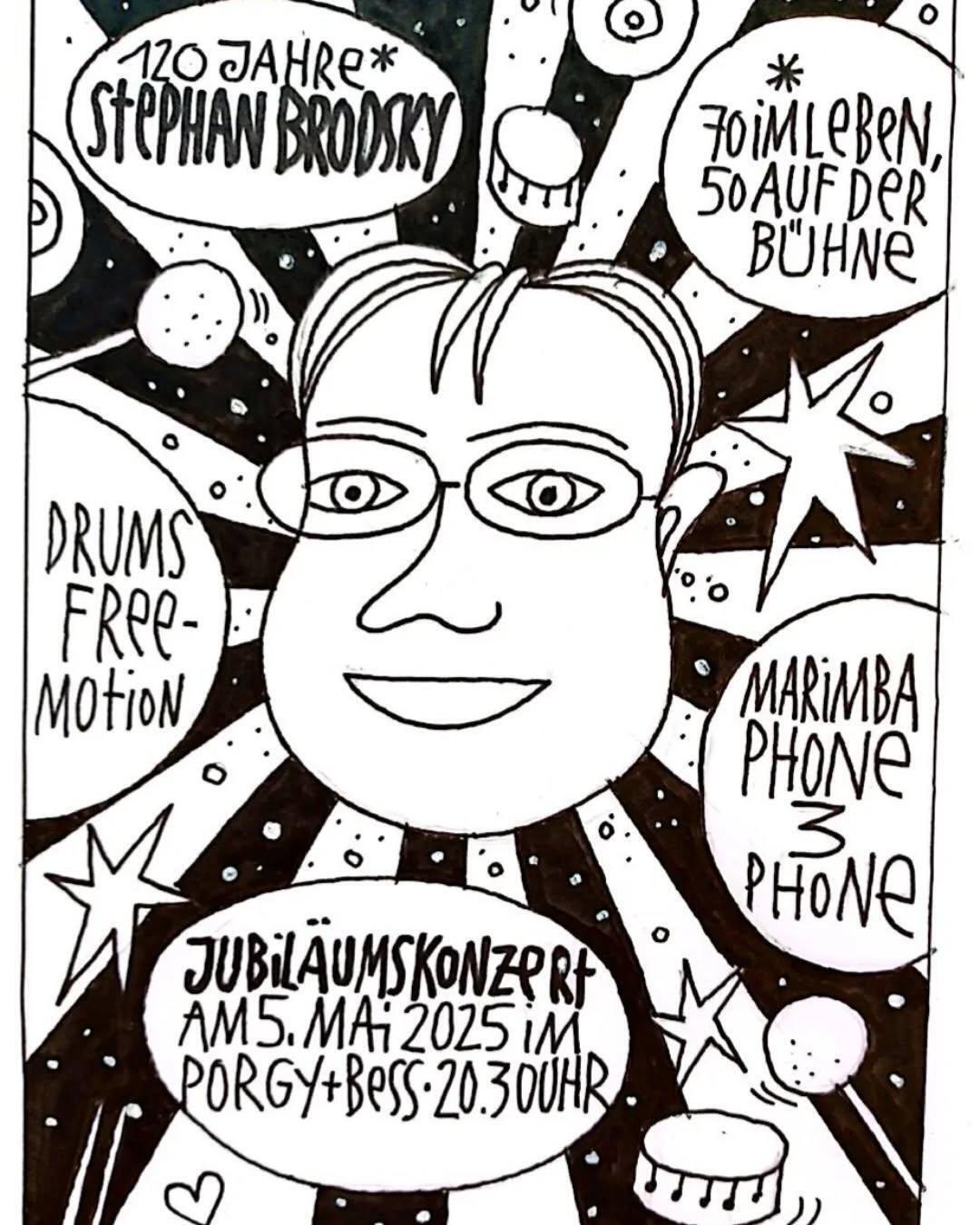 Stephan Brodsky feiert seinen 70. Geburtstag und sein 50- jähriges Bühnenjubiläum – standesgemäß im Jazz & Musicclub und mit zwei Fromationen, die die austriakische Jazz & Worldmusik-Szene seit Jahrzehnten nachhaltig bereichern. Bei "Phone 3 Phone" bedient er die Marimba, bei "Freemotion" agiert er als Schlagzeuger. Herzlichen Grückwunsch! CH