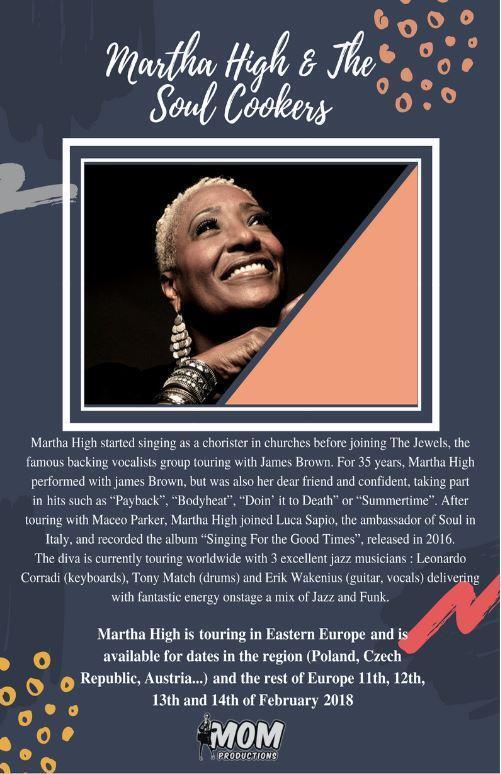 Es werden viele Geschichten über James Brown erzählt. Die, dass er ein umgänglicher Bandleader war, gehört sicher nicht dazu. Da ist es eine wahre Leistung, mehr als dreißig Jahre mit dem Soul Brother No. 1 zusammen zu arbeiten. Martha High, geboren als Martha Harvin in Washington D.C., hat dieses Kunststück als seine Backgroundsängerin vollbracht. Ihre Stimme ist auf den Meisterwerken "The Payback", "Hell", "Bodyheat" und vielen anderen zu hören. Zudem singt sie mit ihm das unvergessliche Duett "Summertime".
