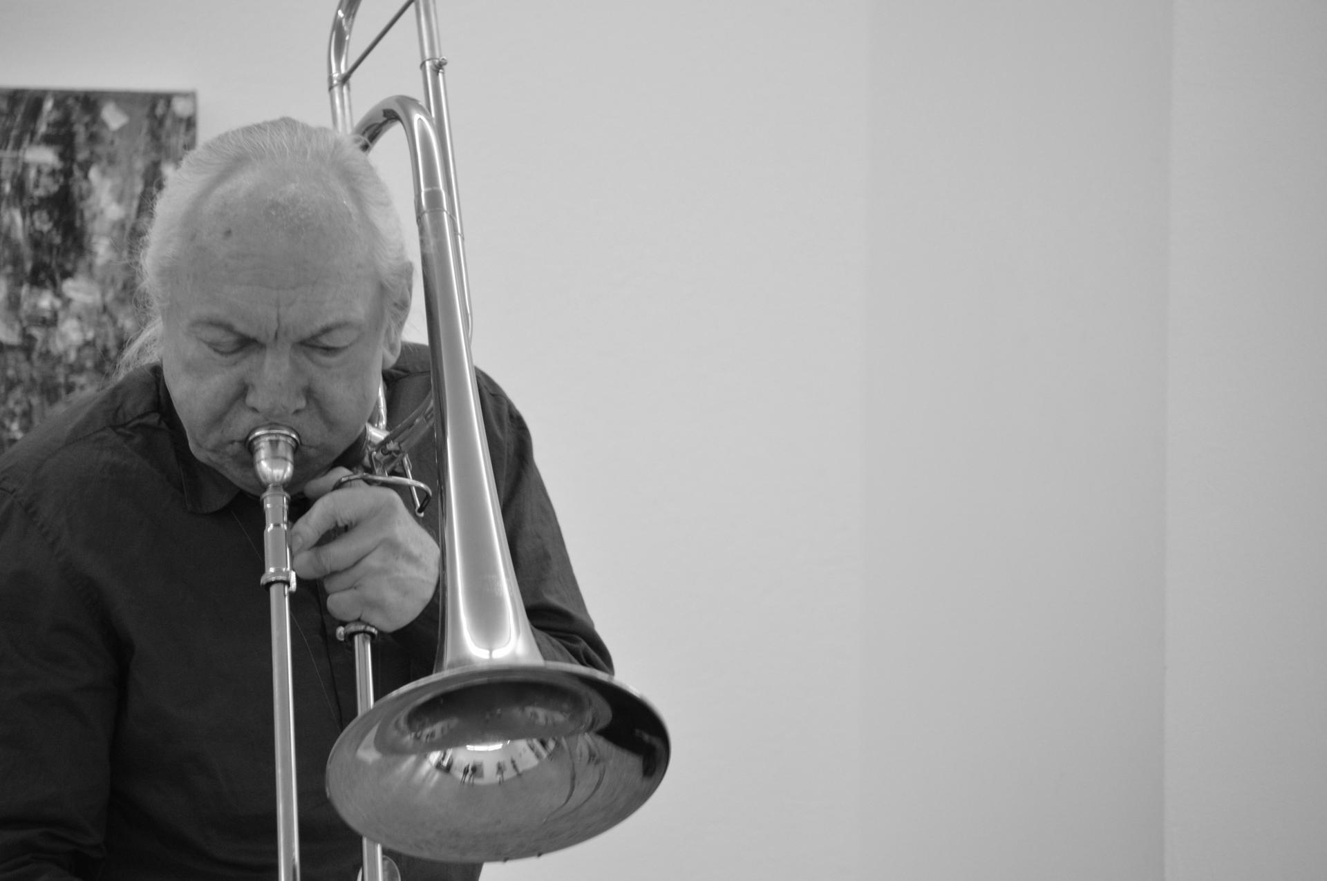 Es muss in den frühen 1980er Jahren gewesen sein, als ich Konrad Bauers erste Soloplatte in die Hände bekam, erschienen auf dem Label Amiga, das dem Ministerium für Kultur der DDR unterstand und einst von Ernst Busch gegründet worden war. Zwar hatte ich den Posaunisten schon zuvor gehört im Umkreis der – gänzlich staatsfernen – Free Music Production in West-Berlin, aber die ungeheure, durchaus musikalische Virtuosität gerade dieser Einspielung hat mich dermassen umgehauen, dass sie mir mehrere Jahre hindurch als Leitstern – ähnlich Anthony Braxtons "For Alto" – meiner Arbeit am Instrument dienen sollte. Ich erinnere mich an die auf der Rückseite des Covers abgedruckte Sentenz Bauers: " Wenn man lange genug übt, dann macht man sowas aus dem Handgelenk", die in ihrer lapidaren Autorität mir noch heute im Nacken sitzt.