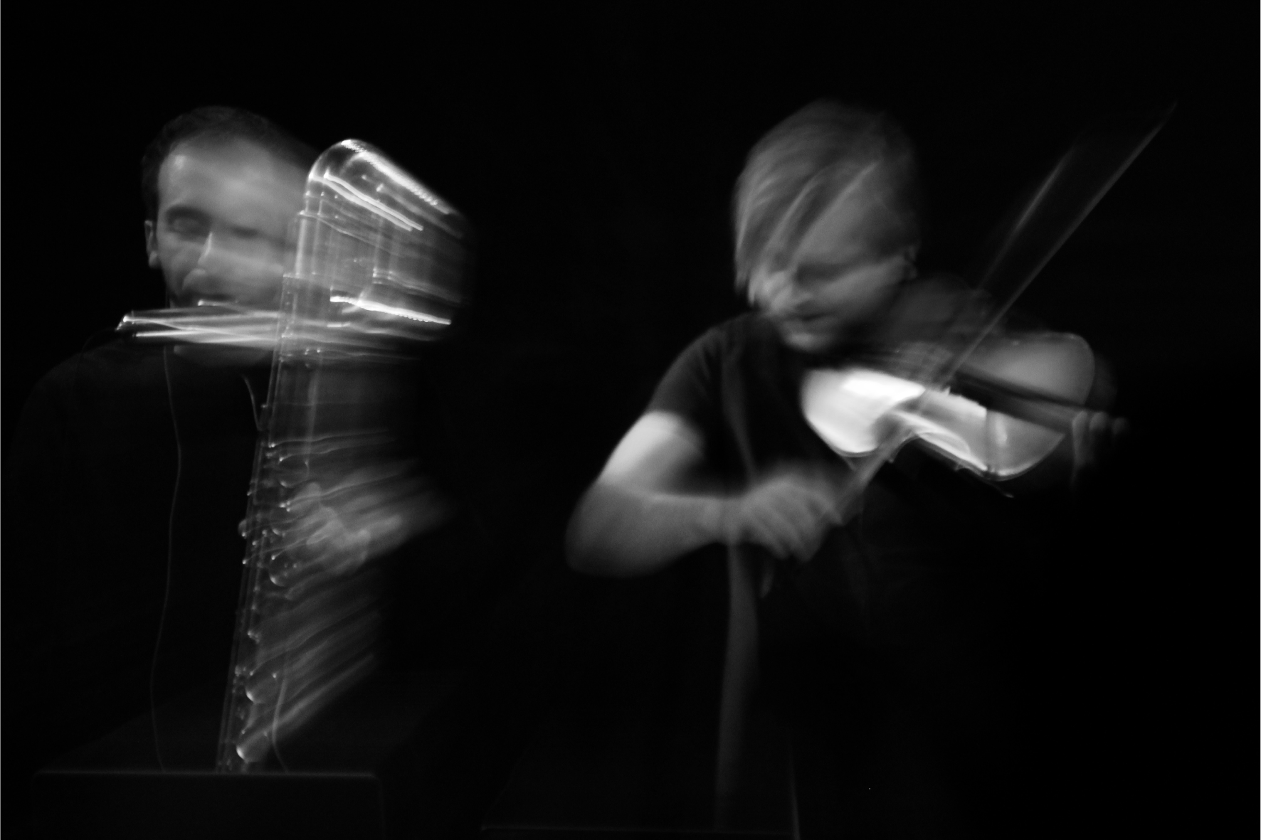 Der polnische Bratschist und Komponist Rafał Dominik Zalech, 1988 in Breslau geboren, studierte an der Musikuniversität Wien Viola bei Wolfgang Klos und Komposition bei Karlheinz Essl, sowie an der Yale University und in Breslau. Als Solist und Kammermusiker ist er vor allem in der Szene der Neuen Musik aktiv und auch immer wieder mit dem Klangforum Wien zu hören. Alessandro Baticci wiederum ist Mitglied und Mitbegründer des Black Page Orchestra, ein Wiener Kollektiv für radikalie kompromisslose Musik unserer Zeit, und bewegt sich als freischaffender Flötist, Komponist und Performer im Bereich der zeitgenössischen und experimentellen Musik sowie der Sound Art. Für seine Kompositionen erhielt er u.a. einen Preis beim Ernst Krenek Wettbewerb.