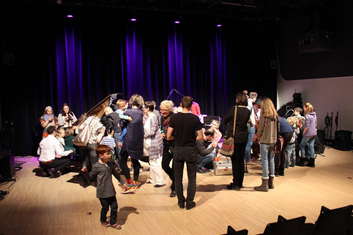 Ein Highlight des Programmes ist ein Tanz für die Kinder gemeinsam mit den Musikern zu tollen Sounds und mit witziger Choreografie von Vilkka, Martin und Gerd. Beim letzten Song lädt der Schlagzeuger Erwin mit seinem Solo noch einmal alle zum Mitklatschen ein.