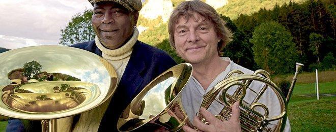 Arkady Shilkloper & Jon Sass: der russische Star-Hornist und der amerikanische Weltklasse-Tubist. Zwei zweifelsfrei mit reichlich Raffinesse ihre Künste bravourös beherrschende Blechbläser im kunstbeflissenen Miteinander einer Micro-Brass-Band, ohnegleichen zwischen Ural und Rocky Mountains. Arkady Shilkloper aus Moskau kam vom Orchester des Bolschoi-Theaters zum Pianisten Misha Alperin und in der Folge zum Moscow Art Trio, das einst auch in Linz mehrmals zu Gast war. Und Jon Sass aus New York arbeitete mit der Jazz-Elite von Ray Anderson bis David Murray, bevor er nach Wien übersiedelte. Dort lernten sich Shilkloper und Sass als Mitglieder des Vienna Art Orchestra kennen. Gemeinsam gestalten sie seit damals blaskräftigst ihre Duo-Spiele. Und längst gelten beide nicht mehr als Außenseiter auf dem Parkett des Jazz, sondern als Tonangebende der Blechbläserei. Waldhorn und Tuba sind allerdings im Jazz noch immer eher Eckensteher. Ihre Einzigartigkeiten als klangbildende Faktoren wurden erst 1948 in der Miles Davis Capitol Band so richtig ins Spiel gebracht. Heute wiederum setzen Arkady Shilkloper und Jon Sass in aufgeklärter Partnerschaft vorbildlich improvisationskundig neue Maßstäbe für Waldhorn und Tuba. (Pressetext)