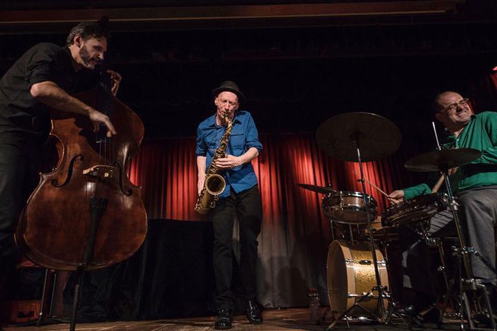 Mit dem New Yorker Saxophonisten Ellery Eskelin, der sich durch sein direktes, expressives Spiel einen hervorragenden Ruf erworben hat, treffen sie auf einen der interessantesten Exponenten der aktuellen Jazzszene. Der immer ganz akustisch gehaltene und orchestrale Sound des seit 2011 bestehenden Trios ist stark an die Ästhetik des frühen Jazz der 20er und 30er Jahre angelehnt. So ist auch die Idee entstanden, den eigenen Stücken Kompositionen von Jelly Roll Morton und Bennie Moten gegenüberzustellen. „Wir vertieften uns in unsere Improvisationen und gingen auf unsere gemeinsame Affinität für den frühen Jazz ein“, schreibt Ellery Eskelin in den Liner Notes zu der vielbepriesenen Einspielung„Sensation of Tones“ (Intakt CD 276, 2017) – natürlich und ganz besonders aber auch live eine wunderbare Musik, die sich jeder Kategorie entzieht. (Ute Pinter)