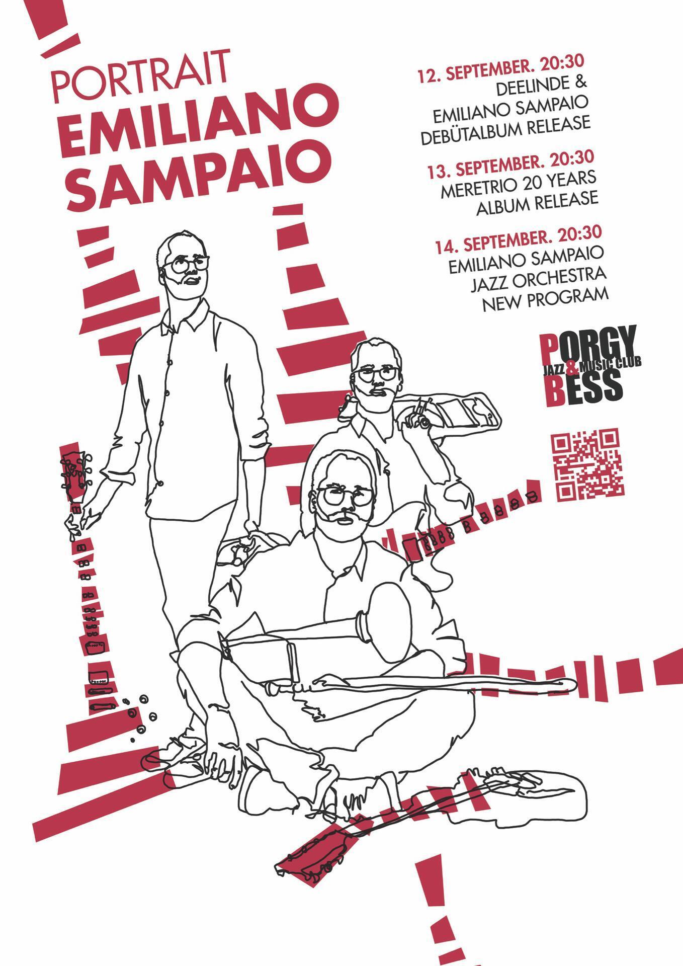 In Österreich hat Emiliano als Bandleader bereits zwölf Alben veröffentlicht, und im Jahr 2024 wird er eine Auswahl davon im Porgy & Bess präsentieren. Gemeinsam mit der fantastischen Cellistin und Sängerin deeLinde veröffentlichte er das Debütalbum ihres Duos. Am nächsten Tag tritt das Meretrio auf und veröffentlicht ihr neues Album "20 Years", um ihr Jubiläum zu feiern. Am letzten Tag tritt das Emiliano Sampaio Jazz Orchestra mit einigen der besten Musikerinnen und Musiker Österreichs auf und spielt ein Konzert ausschließlich mit Uraufführungen, die im August dieses Jahres aufgenommen wurden und 2025 als Platte veröffentlicht werden.