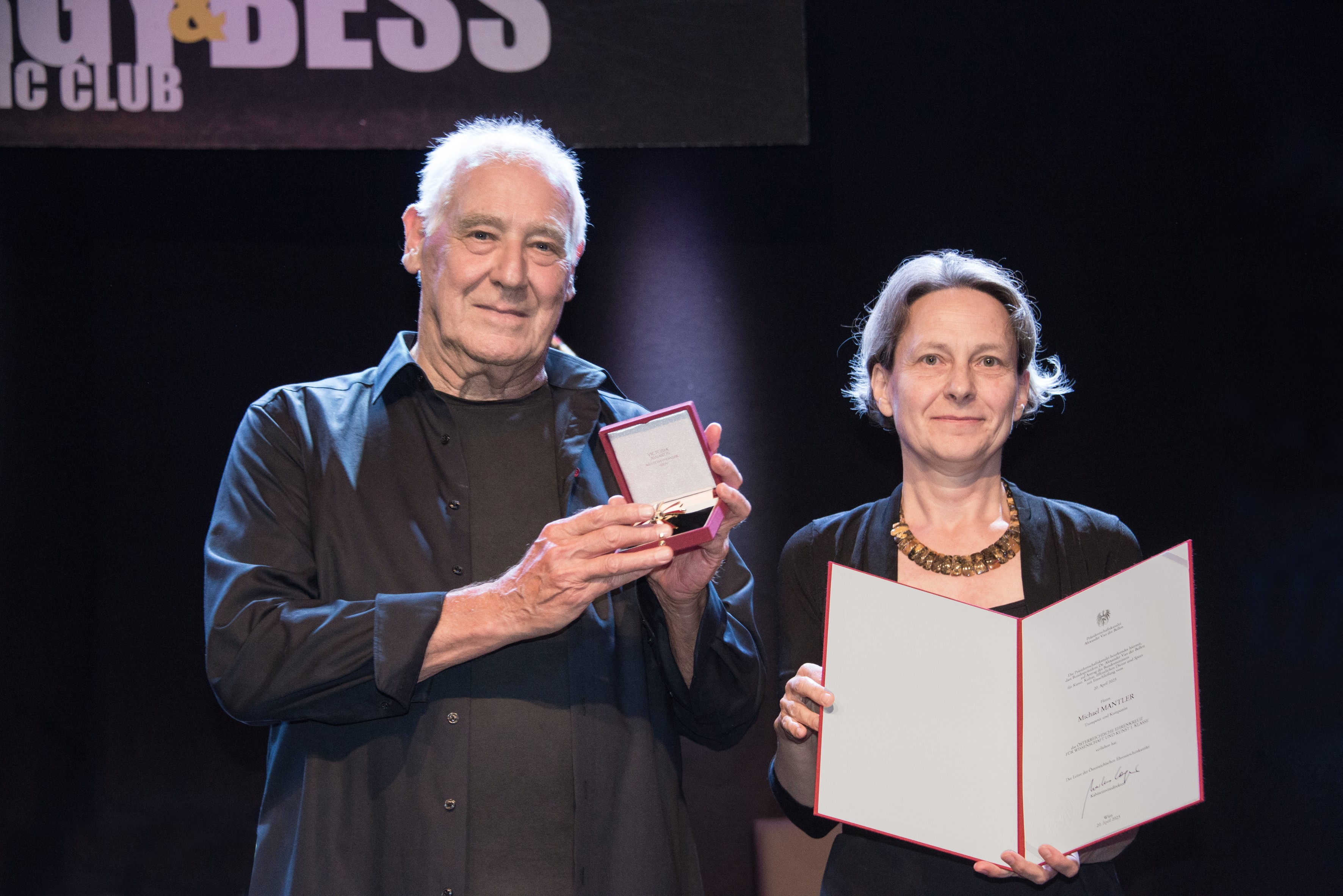 Frau Professorin Ingrid Karl machte mich darauf aufmerksam, dass diese Behauptung nicht ganz stimme, weil sie mit der Wiener Musikgalerie einen Workshop mit Mantler in den späten 1970er Jahren organisierte und es da ein Abschlusskonzert unter seinem Dirigat gab, das möchte ich der Vollständigkeit halber zumindest erwähnt haben, aber sonst gab es außer der Porgy & Bess-Auftritte kein angemessenes Engagement. Und das obwohl Herr Mantler Jazzgeschichte geschrieben hat und zwar zB 1968 mit der phantastischen Einspielung „The Jazz Composers Orchestra“, eine großorchestrale kompositorische Pionierarbeit mit so illustren Solisten wie Cecil Taylor, Don Cherry, Gato Barbieri, Pharoah Sanders, Larry Coryell und ein paar Jahre später als Produzent einer weiteren richtungsweisenden Aufnahme seiner damaligen Frau Carla Bley, nämlich dem epochalen „Escalator over the Hill“, was gemeinhin als Opus Magnum der wunderbaren Pianistin und Komponistin bezeichnet wird. Beide haben sich übrigens 2004 hier im Club getroffen; Carla präsentierte ihr Programm „The Lost Chords“, Michael bekam den von der Republik Österreich gestiftete Staatspreis für improvisierte Musik.