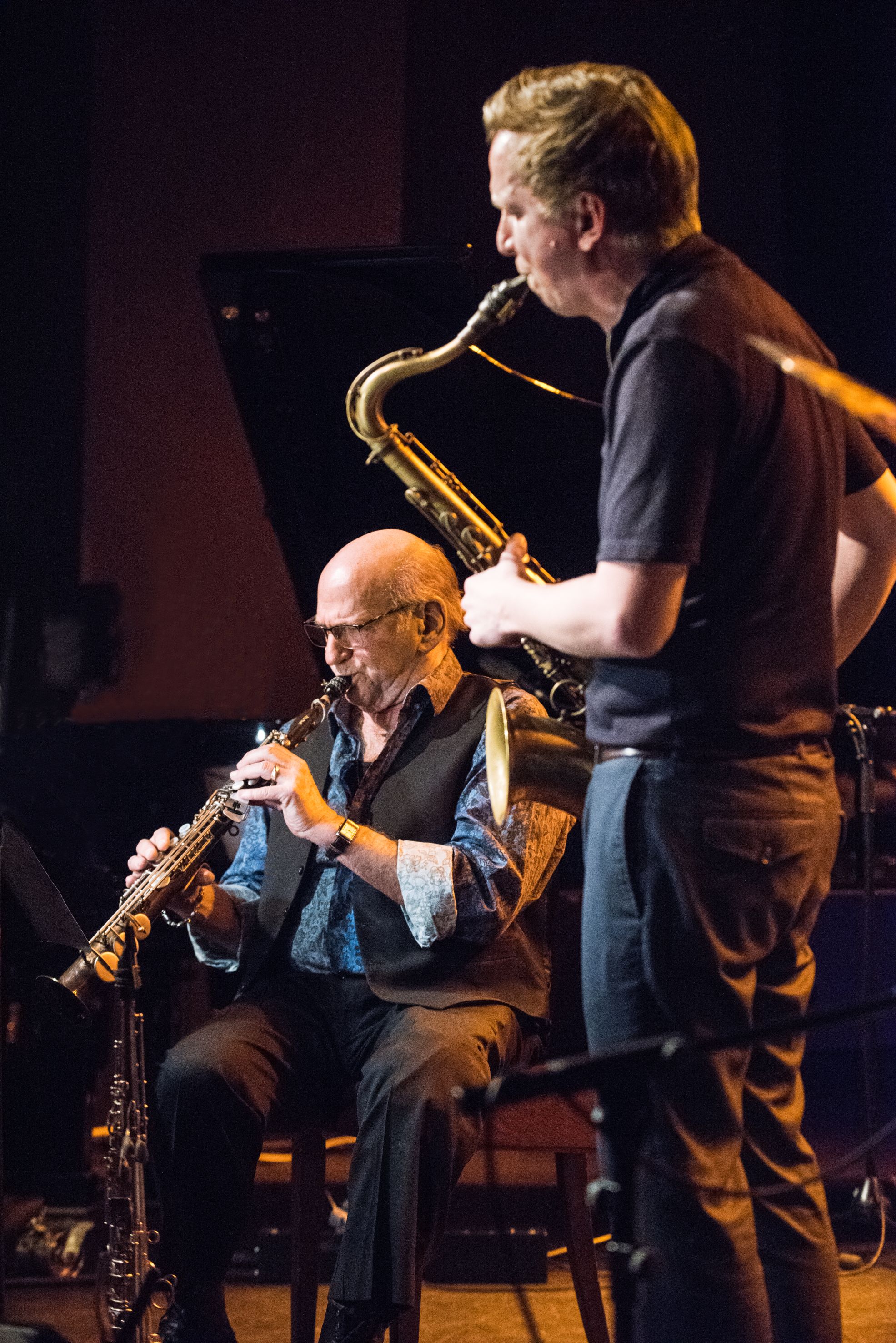 Hier die Abgeklärtheit, die Souveränität des Lebensherbstes, dort das Draufgängertum, die Hitzigkeit des Jugendlichen. Im musikalischen Sinne entlud sich eine besondere Fertilität in dem neuen von Saxophonlegende Dave Liebman und dem jungen deutschen Schlagzeuger Nathan Ott betriebenen Geviert. Beider Zusammenarbeit entwickelte sich im Rahmen einiger von Liebman geleiteter Workshops. Zwischenzeitlich hatte Ott mit seinen beiden Landsfreunden Gille und Landfermann ein interaktionsstarkes, klangspezifisches Trio gebildet, welches Großmeister Liebman, einer der handvoll relevanten Post-Coltrane Saxophonisten (neben Wayne Shorter und Evan Parker der Sopransaxophon-Stilist) und profundesten Jazz-Pädagogen, grund des originären Jazzvokabulars des Trios, als erfrischende Herausforderung sah. Somit, so klang es, er für eine Tour und Tonträgerproduktion sofort Feuer und Flamme war. Als Blaupause, erläuterte Ott, für die Besetzung und die grundlegende Ästhetik des Quartetts steht das Projekt des Schlagzeuggiganten Elvin Jones, das dieser Anfang der 1970er Jahre leitete und dem Liebman angehörte. Ein doch sehr „freilaufendes“ modales Konzept also. Von den Sturm und Drang Gepflogenheiten der Jones Gruppe wurde einiges an Stärkegraden herausgenommen und mit einem Mehr an struktureller und klanglicher Diversität sowie poetischer Narrativität aufgewogen. Thematisches Material, vornehmlich von Liebman und Ott aus der Taufe gehoben, folgte einerseits auf fokussierte, unbegleitete Stehgreiftaten, anderseits schälten sie sich aus luftig gebauten, irrlichternden Kollektivimprovisationen heraus. Schlugen die Motive teils abrupte Haken, beeindruckten vor allem die von jeglicher Überreiztheit befreiten polyphonen Verstrickungen der beiden Saxophonisten. Liebman ließ ob seiner außerordentlichen Fähigkeiten, was melodische Findigkeit und eingebrachte Melismen angeht, erneut das Staunen aufkommen. Ebenso erfand er häufig auf dem Sopran mit seinem scharfkonturierten Ton melodisch/harmonische Kürzel, die dem Youngster Gille emotional heftig aus sich herausgehen ließen. Im Geleit einer sehr eigenwilligen Legatospielweise kontrastierte er mit weiten Intervallsprüngen, zart als auch rotzig intoniert, zündenden Glissandi oder substantiellen Sheets. Ein famosen Improvisator zweifelsohne. Nicht wegzudenken ist hinsichtlich solcher Aufbruchsstimmung die rhythmische Spannkraft. Dahingehend stimmt die Chemie zwischen Landfermann und Ott perfekt. In schon fast sensorischem Einverständnis vollzogen beide Schichtungen verschiedener Metren, Komprimierungen reiner Klangfarben, die Korrelation zwischen „in and out of time“-Spiel. Landfermann, mit mächtigem Ton, demonstrierte wendige Melodierhythmik, während sich in Otts Agieren auffallend melodische Sensibilität niederschlug. Zusammengewachsen in einem Kollektiv respektvollstem demokratischen, humanistischen Verständnisses.
