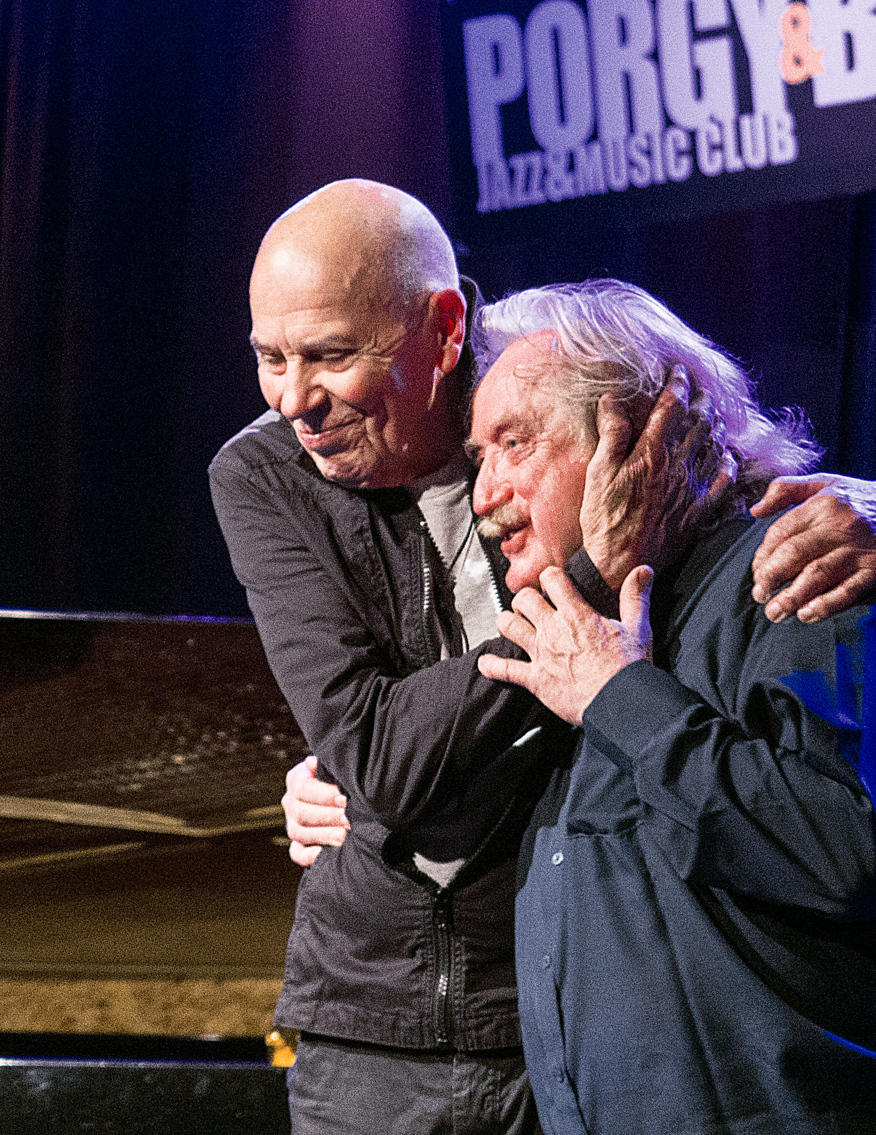 Zwiegespräche mit Saxophonisten sind eine von Jasper van´t Hof im Laufe seines Schaffensweges gerne gesuchte Klangfindungssituation. Charlie Mariano, Bob Malach und legendär, Archie Shepp waren da seine Gegenüber. Aber auch Heinz Sauer frönt gerne dem Dialog mit Pianisten. Der Amerikaner Bob Degen war dahingehend lange Zeit einer seiner engsten Partner. In nahegelegener Vergangenheit war dies beispielsweise der hervorragende „Nachkomme“ Michael Wollny. Nun bündelten die beiden charismatischen, maßgeblich an einem europäischen Jazzhabitat mitgestaltenden „Tonkünstler“ all ihre Erfahrungswerte, musikalischen Errungenschaften und emotionalen Supplements zu einer irisierenden Wechselrede. Gestützt auf wahrhaftiger Abgeklärtheit und einem wesenskernbezogenen Materialumgang. Ungezwungen, beweisstellungsbefreit, die Töne an der richtigen Stelle platzierend, entzündeten sie ihr großes Palaver. Heinz Sauer, vital, völlig bei sich, hochkonzentriert und musikinvolviert wirkend, mit seinen unglaublichen 85 Jahren, stellt unverzüglich scharfe Tonbrocken in den Raum. Die lockten van´t Hof an den Flügel, ein bewegendes Motiv anregend. Im Nu entfaltete sich eine Klangrede angesichts derer sich die Musiker melodisch/harmonisch mit Bezug auf die Ausgangsfunktionalismen aber auch mit davon abkehrender Ausdehnung umgarnten. Da gab es Reibungen, Gleichklang, Verdichtungen, Aussparungen, dynamische Wechselwirkungen – einer nie verssiegenden, verblüffend deckungsgleichen Kohärenz folgend. Tempomäßig wählten die Musiker einen Moderato-Modus, der zudem häufig ergreifend schöne Balladenstimmungen hinterließ. Jeder Anregung folgte eine Entsprechung. Mit überlegener ökonomischer Effizienz stellte Sauer seine, in einer vollkommen eigenständigen Klangsprache und Tonbildung formulierte, bravourös austarierte Schnittmenge aus Coleman Hawkins, Ben Webster, Rollins, Coltrane, Shepp zur Diskussion. Phrasierung und Artikulation ließ er zwischen geschmeidig breitbandigen Legatomeandern und robuster, kerniger Kontur, durchsetzt mit energetischen Entladungen, alternieren. Sein Kräftereservoire umsichtigst nützend. So ließ Sauer dem um einiges jüngeren van´t Hof entsprechend mehr Raum zum austoben, ehe er wieder mit dem Gewicht des Notwendigen hinzutrat. Bis dahin war der Tastenvirtuose, der sich vornehmlich dem Flügel widmete, mit eloquenter Grazie einerseits und einer sehr feingliedrigen, gleichwohl von Blockakkorden wie quecksilbrigen Einzeltonketten angespornten Melodierhythmik zugange. Hierbei loderte Jaspers Spielwitz, der in unerwarteten Wendungen, azyklischen Akzentuierungen und exaltierten Chorussen Ausdruck fand. In einer Weise stand diese Ereignishaftigkeit und der emotionale Tiefgang der magischen Korrespondenz van´t Hofs mit Archie Shepp sehr nahe. Doch das essentielle Grundprinzip des Jazzidioms, die Improvisation als Formbildung, versah die Musik des Duos Sauer/van´t Hof, die beide sowas von zeitgenössische Zeitgenossen sind, ebenso mit einem selbstbestimmten Eigengehalt. Die Koda vertonte noch eine weltsichtliche Bedarfsanzeige. Es erklang Horace Silvers „Peace“. Nachwirkende Erkenntnis: die Bedeutung, dass derart altvordere, kreativbeseelte Persönlichkeiten, so sie noch einen Unruhezustand einnehmen, weiterhin das Jazzfeuer beschicken.