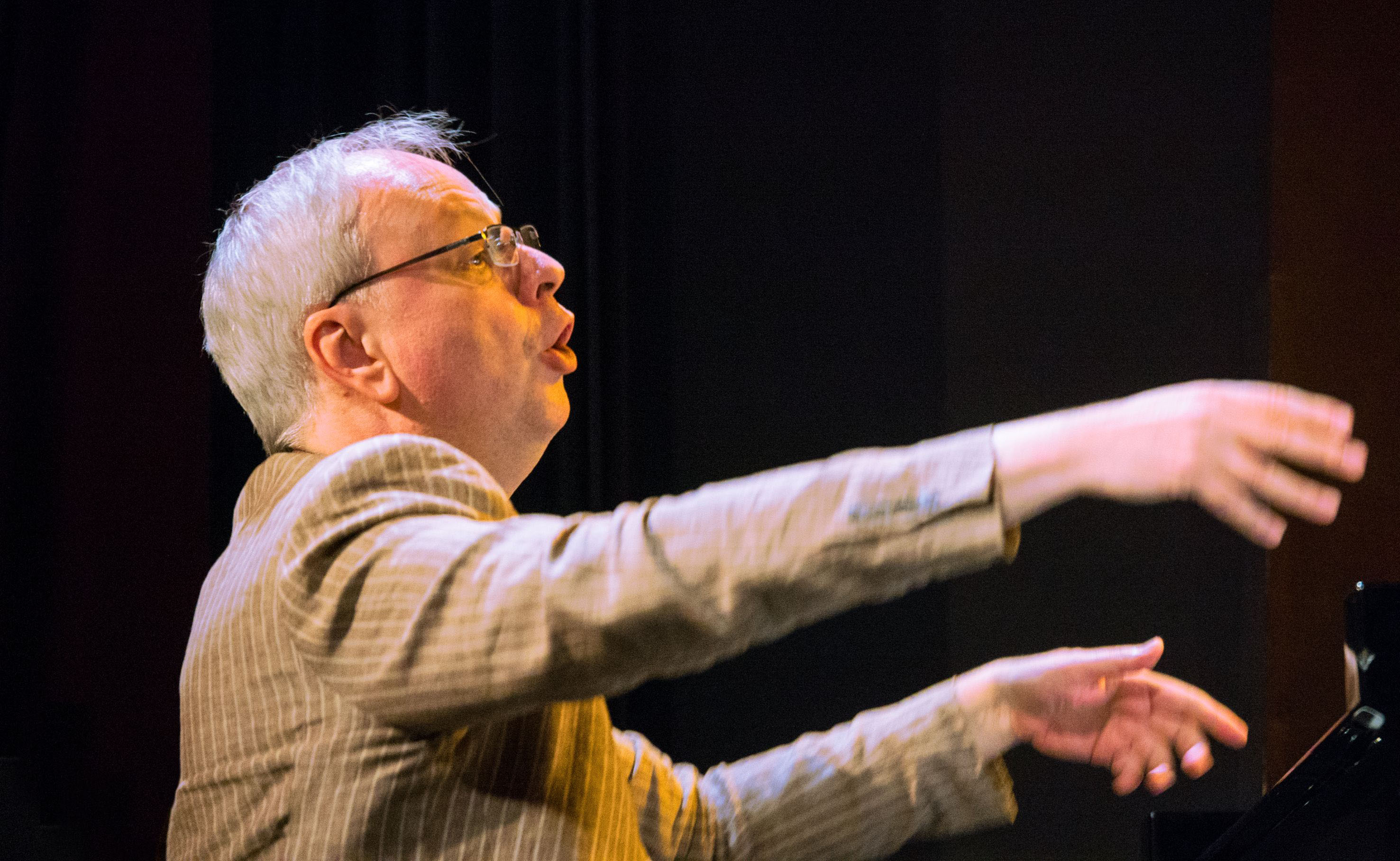 Zum Auftakt seiner musikalischen Lecture, die er in der neuen Saison im Rahmen des mehrteiligen „Stage Band – Versuchslabors“ konkretisieren und ausdifferenzieren wird, pflückte Georg Graewe eine unbegleitete Klavierimprovisation von seinem opulenten musikalischen Lebensbaum. Kristallklarem Wasser gleich, ergossen sich die Tongirlanden in einem umfassenden diatonisch/chromatischen Ausmaß in nach außen verschobener Konzentration von Dissonanz und Konsonanz, in den Raum. In dieser Geste war schon eingeschrieben wie die Raumschaffung in seiner „Komprovisation“, so könnte man die Konzeption auf einen Nenner bringen, angelegt ist. In einem dynamisch divergierenden Prozess formten sich binnen kürzester Zeit Aggregatzustände von fast greifbarer Plastizität und eigengesetzlicher ästhetischer Gültigkeit. Graewe hat dem Anlass gemäß ein großformatigeres Ensemble mit einer sehr spezifischen Klangcharakteristik, durch Verwendung von Instrumenten mit unterschiedlicher Kulturgeschichte, zusammengestellt. Wie bereits angedeutet standen präzis determinierte Strukturabläufe in ausgewogenem Verhältnis zu den freigelassenen, durchs freitonale Kontinuum flanierenden Improvisationen. Hinsichtlich der ersteren schloss Graewe fintenreich Grundüberzeugungen der seriellen Musik und aleatorische Verfahren kurz. Als Bezeichnung läge einem fast die neue Begrifflichkeit „Seriatorik“ auf der Zunge. Die daraus resultierenden Klangeindrücke ließ der Pianist/Komponist jedoch nie die Oberhand gewinnen. Denn die wohlkanalisierte, zwanglos kontrollierte, jazzidiomatische Bewegungsenergie vertrat im selben Maße ihre Wertigkeit. Bravourös verantwortet vom Gespann Peter Herbert und Wolfgang Reisinger. Sie formulierten nicht in Takteinheiten sondern in rhythmischen Bögen. Mit metrischer Ungebundenheit und freilaufenden Akzentuierungen vor allem Seiten des Schlagzeugers. Ausgetragen auf dem Spielfeld eines, so gewann man den Eindruck, mehrteiligen Werkes. Mit ausgesprochener Sensorik für das Ineinandergreifen von horizontalen und vertikalen Entwicklungsabläufen schuf Graewe eine weitere Spannungsqualität, wie ebenso mit der luftdurchfluteten Konsistenz der Strukturen. Feingliedrigkeit, partiell Feinteiligkeit hoben gleichfalls den kammermusikalischen Duktus hervor. Doch diese nuanciert vielgestaltige Klangerzählung war auch kraftkämmerisch. Wenn sich z.B. harmonische Expansionen in scharfkantigen Tutti entluden, aber vor allem bei diversen solistischen Freigaben. Dabei zeigten sich alle von Graewes Erfindungsreichtum in den Bann gezogen.