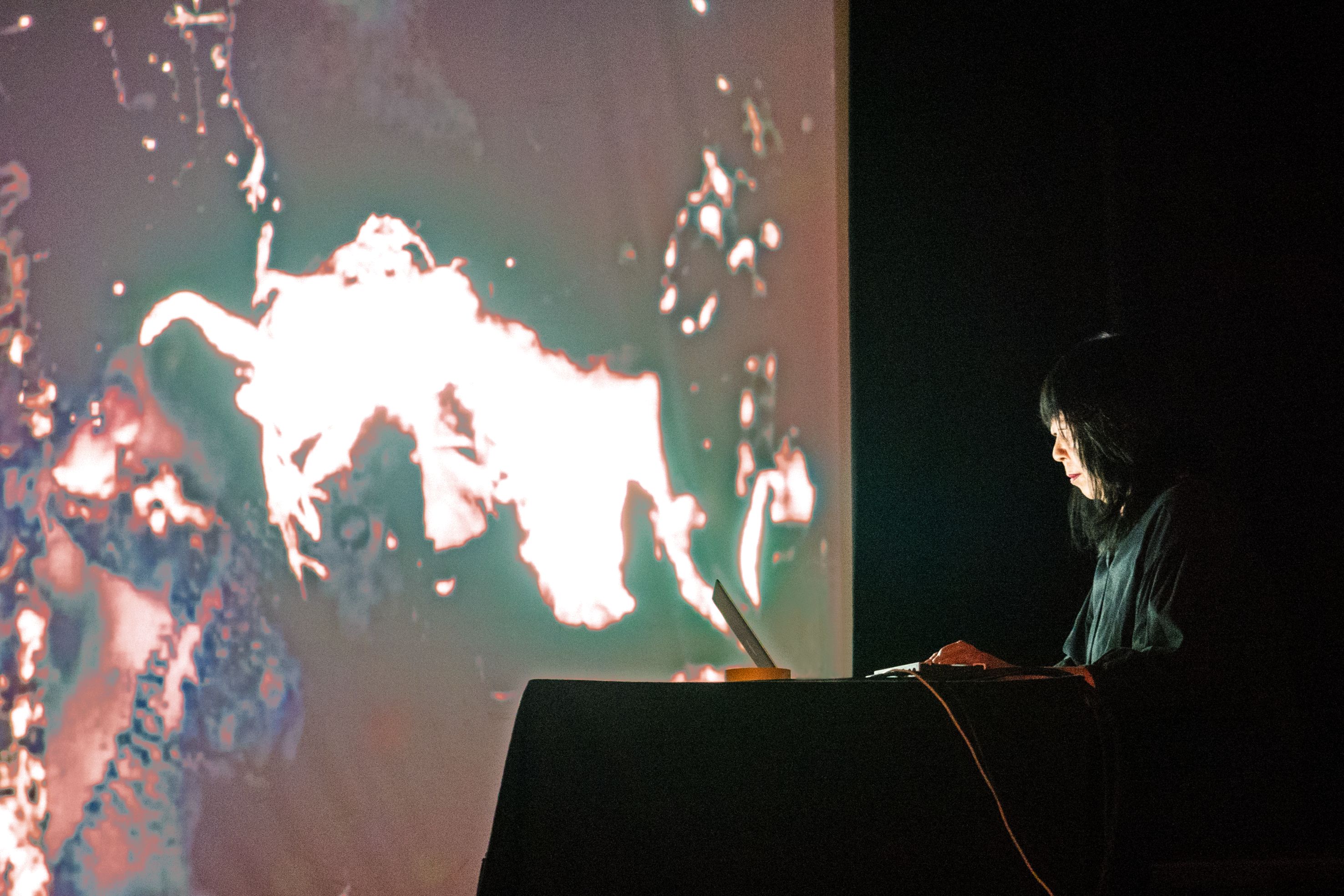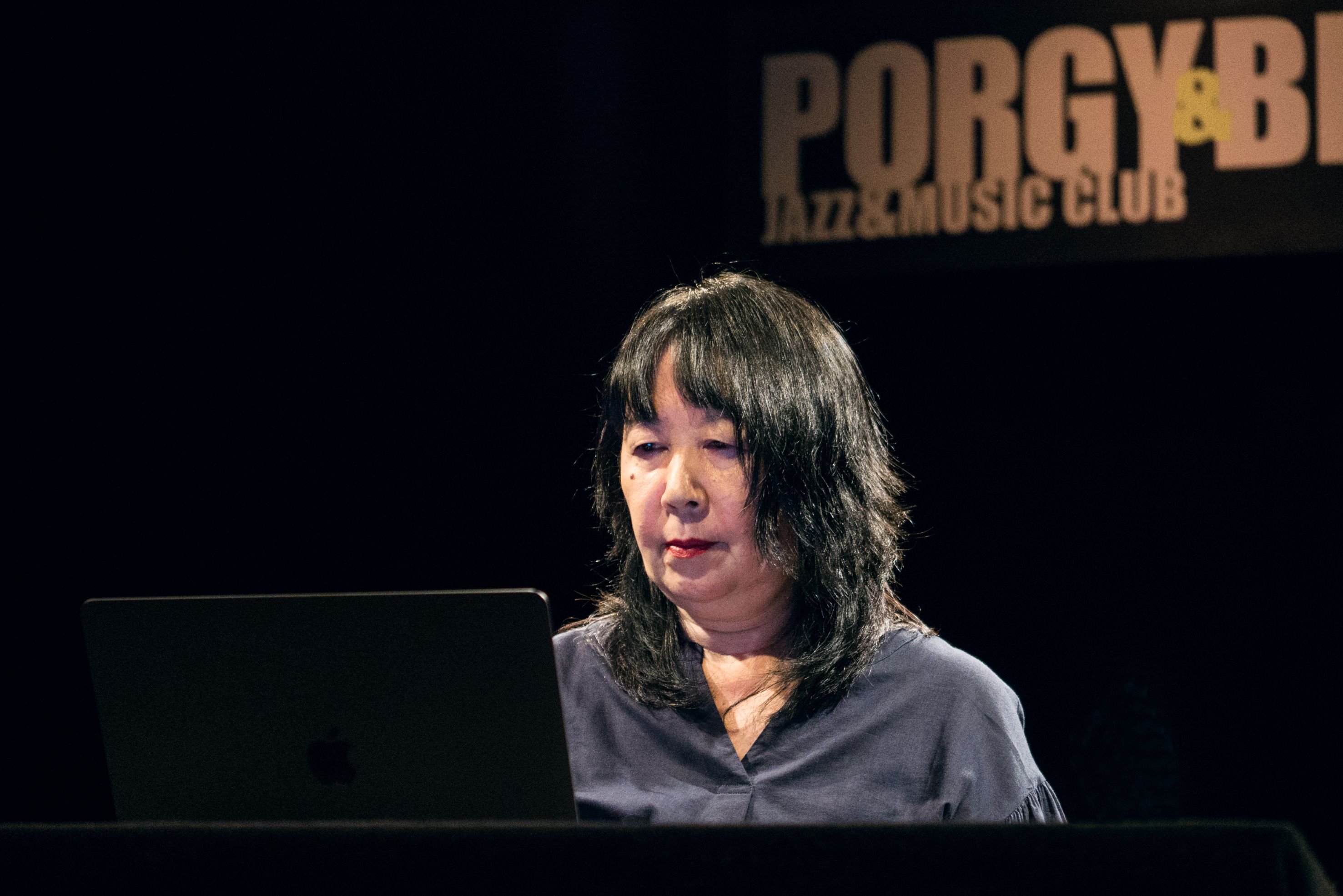 Den nächsten Programmpunkt des „The Stone In Europe“-Projektes gestaltete diesmal die Pionierin in Sachen Drum Machine in der freien radikalen Noise Music der 1980er Jahre, Ikue Mori. Gestandene Schlagzeugerin, die im Umfeld der damaligen NYer Down Town- Szene einen eigenwillig verqueren Drumstil entwickelte, mit dem sie richtungsweisende Schritte in Bands wie DNA, im Trio mit John Zorn und Wayne Horvitz oder der Frauenband Sunset Chorus setzte, gilt sie heute als einflussreiche Musikerin mit multimedialem Aktionsradius im Umgang mit dem Laptop. Mit strikter Konsequenz und Stringenz hat Mori anhand dieser Gerätschaft ihr emanzipiertes Drum Machine Vokabular um Soundwelten, in denen sie sowohl auf Errungenschaften von Vorreitern der elektronischen Musik wie den Komponisten Stockhausen und Eimert, den Minimalisten La Monte Young oder Terry Riley aber auch der Frühzeit des Krautrock, verbunden mit Namen wie Tangerine Dream oder Kraftwerk, Bezug nimmt, umfassend harmoni- und melodisiert. In einem Schichtverfahren baut sie konzise Klangmotive, periodische Rhythmussequenzen und Geräuschbündel, von einer transparenten Binnenstruktur ausgehend, zusammen. Mori betreibt allerdings kein simples Montageverfahren, sie entwickelt einen organischen, durchlässigen Verlaufsstrang. Der betört mit überraschenden Auswüchsen, abstrusen Windungen, prononcierter Distanz zu Zeitordnung und texturellen Konventionen aber auch melodischer Narrativität; permanent bewegt durch Echtzeitmanipulationen. Im zweiten Teil des Abends kreierte Mori einen Schrägriss von bisweilen bizarren Klangvignetten mit jenen Eigenheiten. Auf Basis von Samples und synthetischen Soundkreationen. Eingeleitet mit einem „Glockenspiel“ von überlagerten Terz- und Quintabständen, durchzogen mit groovenden Hooklines, polyrhythmischer Ekstase eines afrikanischen Balafon-Ensembles, brutzelnden, knisternden, durcheinanderwirbelnden Tontrauben, die ebenso einer rhythmischen Periodizität folgen. Die Verflüssigung in einen rhythmischen Zustand bleibt für Ikue Mori zentraler Aspekt. Ihr zudem emotionaler improvisatorischer Umgang mit den vorfabrizierten Klanginseln verströmt Unmittelbarkeit und berückende Wärme. Das ließ sich im ersten Konzertteil nicht so leicht aufspüren. Im Mittelpunkt stand hier ein Video, das sich inhaltlich um Mythologie und Sagengestalten drehte, inklusive der von Mori gespielten und gestalteten Puppen, und auf Mehrebenenweise ablief. Die damit kommunizierende Klangcollage, die eine gewisse Brüchigkeit aufwies, konnte nicht zu Gänze die gewohnte Versatilität herstellen. Doch Visuals und Musik ist ein ganz spezielles Thema. Vor allem wenn die Musik, wie im Falle Moris, von vorn herein schon unzählige Bilder im Kopf entstehen lässt. Seeds and Deeds – electrifying.