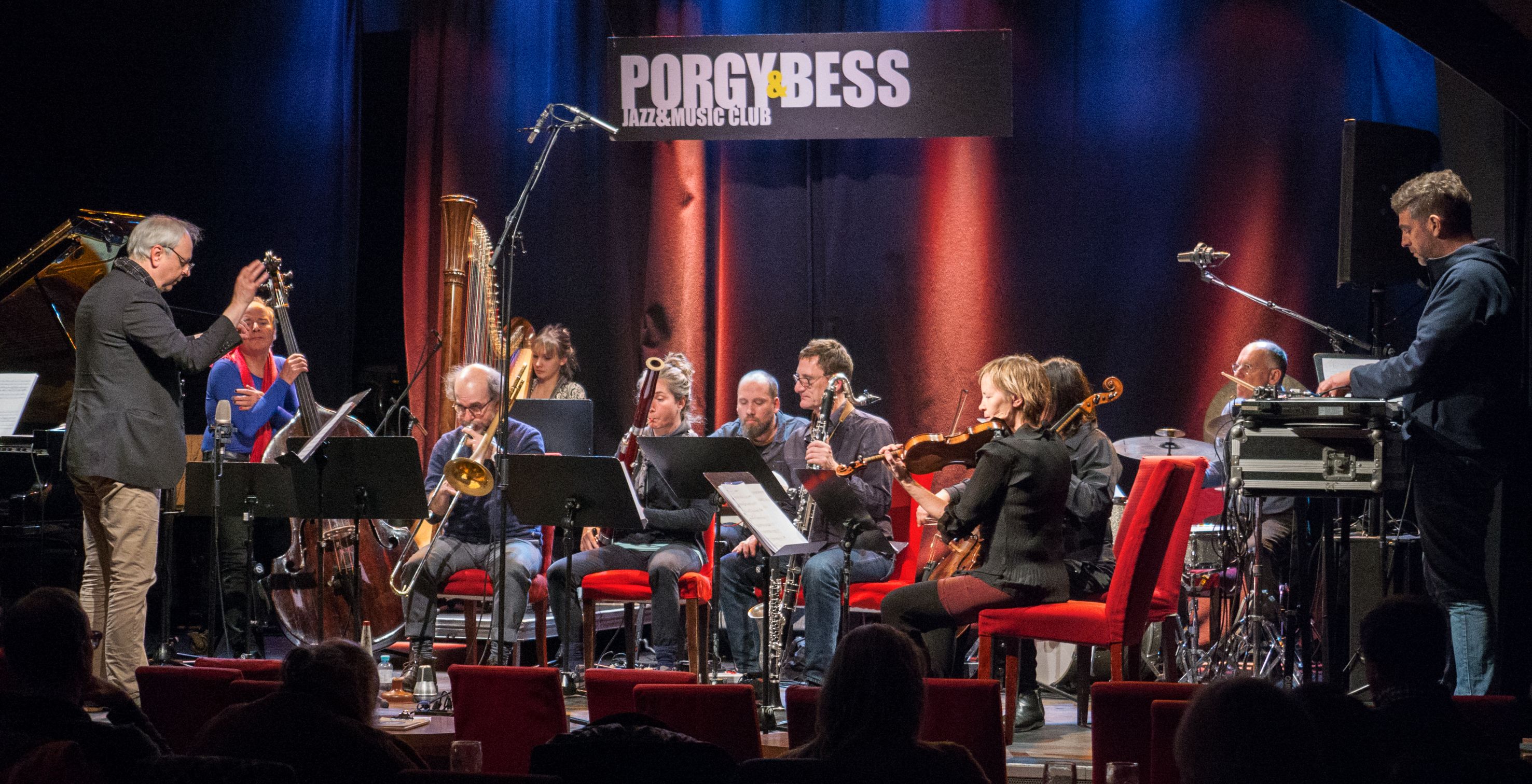 In seine „New Stream“-Fiktion (Versuch der Umschreibung jener höchst persönlichen Kopplung struktureller und klanglicher Eigenschaften aus progressiven musikalischen Organisationsprinzipien der Bereiche Jazz, Klassik und Rock) integrierte Mastermind Georg Graewe im Rahmen der sechsten Stageband-Präsentation eine fast unerwartete ästhetische Ausdrucksform. Jene des fraktalen, klangradikalen Turntableism. Der populärmusikalischen DJ-Kultur entwachsen, errang dieses „Soundfishing“ in den 1990er Jahren in der frei improvisierten Musik einen Aufschwung, ehe die Digitalisierung vehement Platz griff. Zudem trennte sich betreffend des Bedienungspersonals im Verlauf die Spreu vom Weizen. Übrig blieben die ernsthaften Musiker. Der, der als feinsinniger, musikalischer „Platten-Spieler“ zählt, der das Equipment zudem als eigenständiges Instrument definiert, ist der Wiener Dieter Kovacic bna Dieb 13. Graewes Architektur behandelt eine aus sich heraus mutierende Vielschichtigkeit, deren Grundsatz der Sensibilität im Aufbau, mit der Sensibilität im Klang- und Interaktionsverständnis von Dieb 13 übereinstimmend korrespondiert. Gleichwohl in der definierten Vorgabe, als auch im freien Vermessen der Ereignishaftigkeit. Erneut kam Graewes außergewöhnliche Fähigkeit, Potential und Individualität von MusikerInnen ergiebig kollektiv bündeln und Anregungen für deren Spontankreativität verteilen zu können, zum Tragen. Wieder war man verblüfft ob der ständig wachsenden Integralitätssubstanz des Ensembles. Kennzeichnend für die diesmalige „komprovisierte“ Schallstudie waren die personellen Kleineinheiten, zumeist in der Dimensionierung Solo bis Trio, die der Stehgreifschöpfung im Wort standen. Mit Phantasie hielt Graewe bei der Zusammenstellung der Gruppierungen nicht hinter den Berg. Wie spannend gerieten die bizarr verflochtenen Dialoge zwischen Harfe und Turntables, Posaune bzw. Piano und eben diesen, oder Geige und Cello. Detto die schon als Fixpunkte geltenden Ereignisse: das differenziert schäumende Piano-Solo, die frei-kontrapunktisch sprühende Fagott/Bassklarinette Konversation mit Turntables, Bass und Schlagzeug im Rücken und alle Register ziehend, der bis dato energetischste, unmittelbarste Trioausbruch von Gitarre, Bass und Schlagzeug in simultanem Avant-Rock/-Jazz Atem. Verbindend, als eine Art zündender Intermezzi, waren knifflige polyphone Orchester-Tutti installiert, die im ritardando-Modus ausströmten. Inhaltlich spielte der Pianist dabei u.a. mit dem bisher eindeutigsten tradierten Jazzbezug, in unsentimental schöner, harmonischer Auslegung, mehrheitlich jedoch, agogisch jonglierend, mit komprimierten, kammermusikalischen Abstraktionen. Musikalischer Pluralismus mündet bei Georg Graewe nie in Selbstzweck. Integration von kompositorischer Methodik und improvisatorischer Praxis, sowie die Aktivierung des Zusammenwirkens diverser Idiome entwickelte er anhand seiner Tranformationsvorstellungen zu einem definitiven Personalstil.
