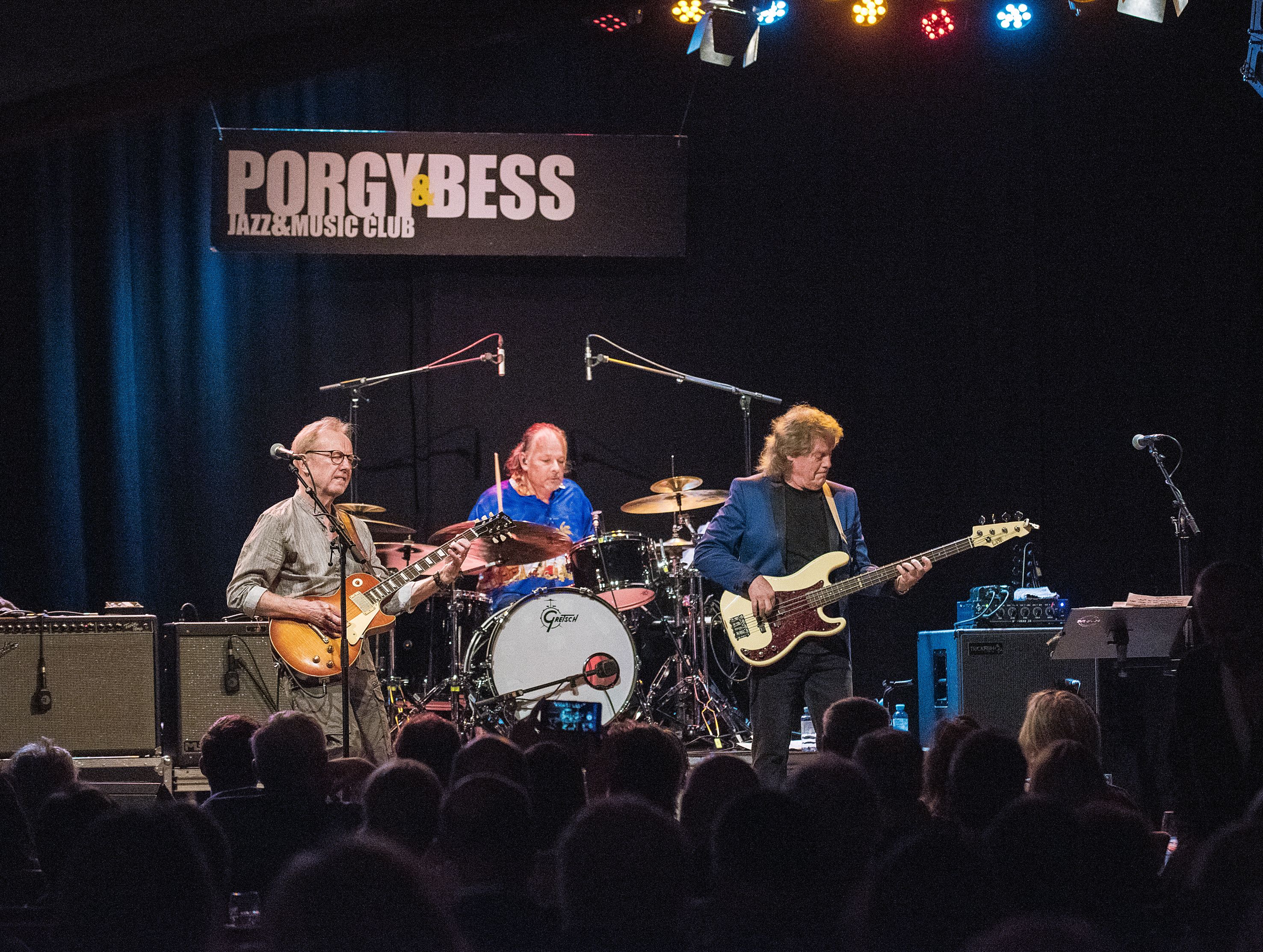 Es blieb sein letztes Bandprojekt mit welchem er den engsten seiner verstorbenen Mitstreiter aufrichtigst Tribut zollen wollte. Gegen Ende der letztjährigen Tour schied auch er einigermaßen unerwartet aus dem Leben – Rockschlagzeug-Ikone Jon Hiseman. Auf die purste Form einer Rockbesetzung heruntergebrochen war die Band ausgelegt. Das erlaubte, die Essenz der ausgewählten Songs herauszuarbeiten. Hiseman und seine einstigen Colosseum Partner erwiesen sich darin als wahre Meister. Erfreulich, dass nun Clempson und Clarke diese Idee weiter reifen lassen. Als Nachfolger und „Schlagader“ holten die beiden den profilierten Studiodrummer Ralph Salmins hinzu. Vom Fleck weg lief die Rockmaschine auf Hochtouren.  Zum einen ganz Profis zum anderen mit enormer Spiellaune machten sie das ihre aus den Songs. Unpeinlich und unsentimental, die kreativste Phase des Rock immer in Hörweite, erfrischend revitalisiert. Die Songauswahl blieb unverändert. Genüsslich spielte sich das Trio durch „Liederliches“ von Graham Bond, Dick Heckstal-Smith. Steve Marriot, Gary Moore, Graham Bond und mit besonderer Hingabe interpretierten sie Songperlen von Jack Bruce. Das war vor allem Mark Clarkes Sache - einer der herausragendsten und kreativsten Rockbassisten. Verblüffend nahe, jedoch keineswegs epigonal, war er gleichwohl Bruce´ eigenwilliger Gesangsphrasierung wie dessen die Funktionsharmonik ausdehnendem Bassspiel. Mit zeitweise völlig autonomen Linien, als brillanter kontrapunktischer Gegenpart zur Basismelodik, flüssig von Clempson ausgelegt, bzw. festgelegten Melodierhythmik. Die markanten Hooklines saßen dennoch am richtigen Fleck und verabreichten dem Groove das nötige Fett. Der Gitarrist frönte zwar nicht solcher Waghalsigkeit machte dies aber mit Leidenschaft mit der er die Riffs hinaus schmetterte wett. Gleiches galt für seine im vorgegebenen Rockduktus verwurzelten jedoch innerhalb dessen mitreißenden, inspirierten Soli. Blusig, Folkrockig, Hardrockig, manchmal auch ein wenig abgedreht. Clarke und Clempson besorgten die substantielle Formgebung der Songs und hielten auch die rhythmische Elastizität in Händen. Schlagzeuger Salmins, ein solider Timekeeper mit eingeübten Breaks und Fills, spielte präzise und mit dem nötigen Punch, konnte aber keine zusätzlichen rhythmischen Feinheiten einbringen. Beim obligaten Drum-Solo stieß er dann unweigerlich an seine kreativen Grenzen. Fairer Weise muss man jedoch festhalten, in die Fußstapfen eines Jon Hiseman zu treten ist eine ziemliche Bürde. Die absolute Großtat des Abends war  dann die erhabene Version von Bruce´ „Theme For An Imaginary Western“.