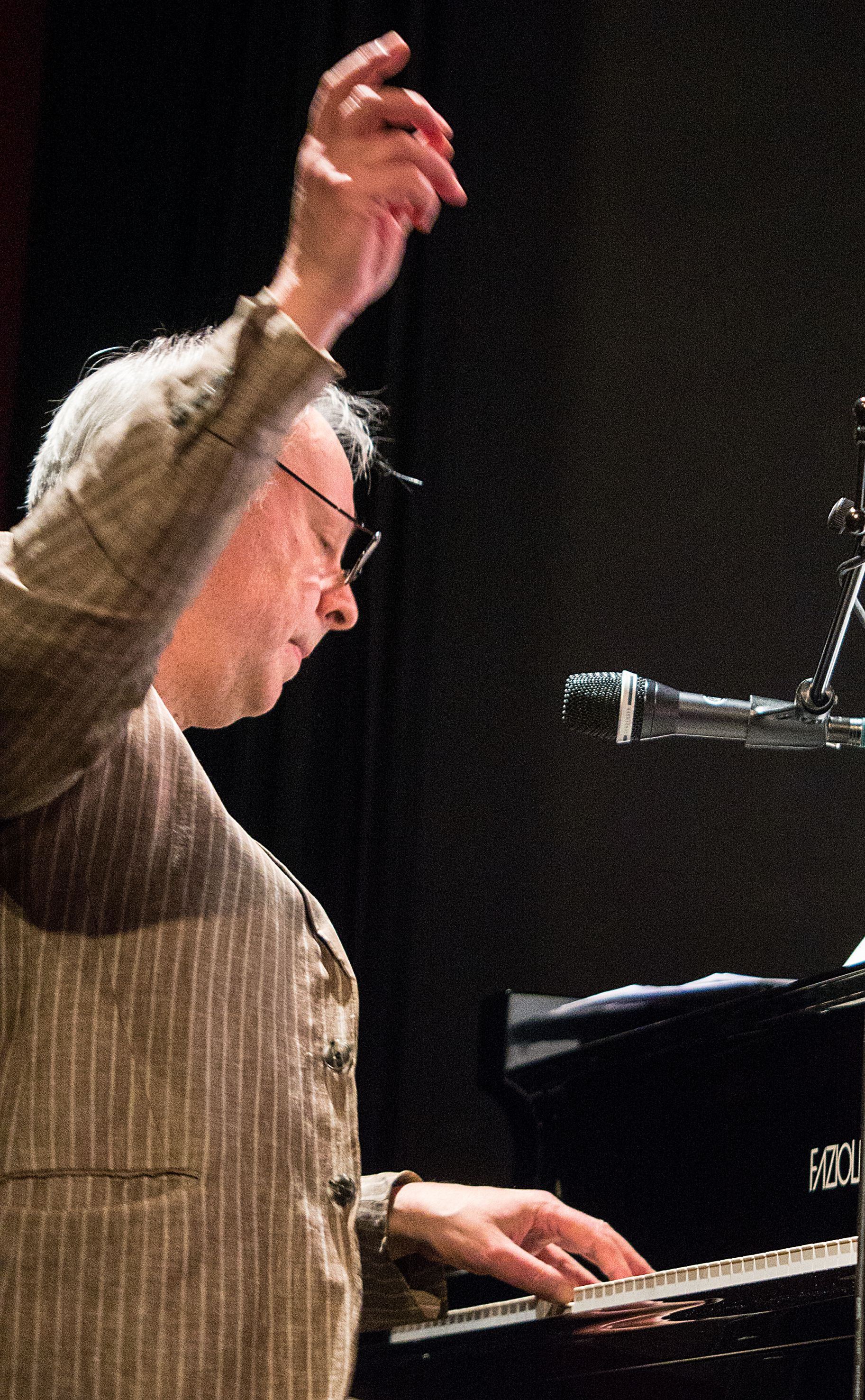 Ein Stageband-Marathon fand seinen Abschluss. An gebührenden musikalischen Überraschungen, daraus folgernd auch ad personam, ließ es Georg Graewe in dem für diesen Abend konzipierten Programm nicht mangeln. Gleich von Beginn an. Einem kurzen Piano-Intro, seiner fliegenden Intuitionssynapsik zuzuschreiben – einer Leichtigkeit tiefempfundener musikalischer Wesenheit zugewandt – folgten einige Lieder aus Graewes dahingehender, inzwischen schon umfangreichen Sammlung. Seine Auswahl betraf beispielsweise Kompositionen der Zyklen „zugriffe“ bzw. „Industrial Folk Songs“. Der Pianist strukturierte die Werke in der Diktion des klassischen Kunstliedes. Hinsichtlich der Eindrücklichkeit standen die Lieder im Geiste dodekaphonischer Klangorganisation. So streng diese in ihren Rahmenbedingungen wirkten, durch Graewes jazzverbundener Phrasierung und Artikulation, umgab die Lieder etwas Liquides. Angesichts des durchdringenden empathischen Brückenschlages und technischer Untadeligkeit fanden die Lieder dank der wunderbaren Sopranistin Almut Kühne eine nahezu kongeniale Erweckung. Nicht minder ihr glasklarer, stringenter Ton.