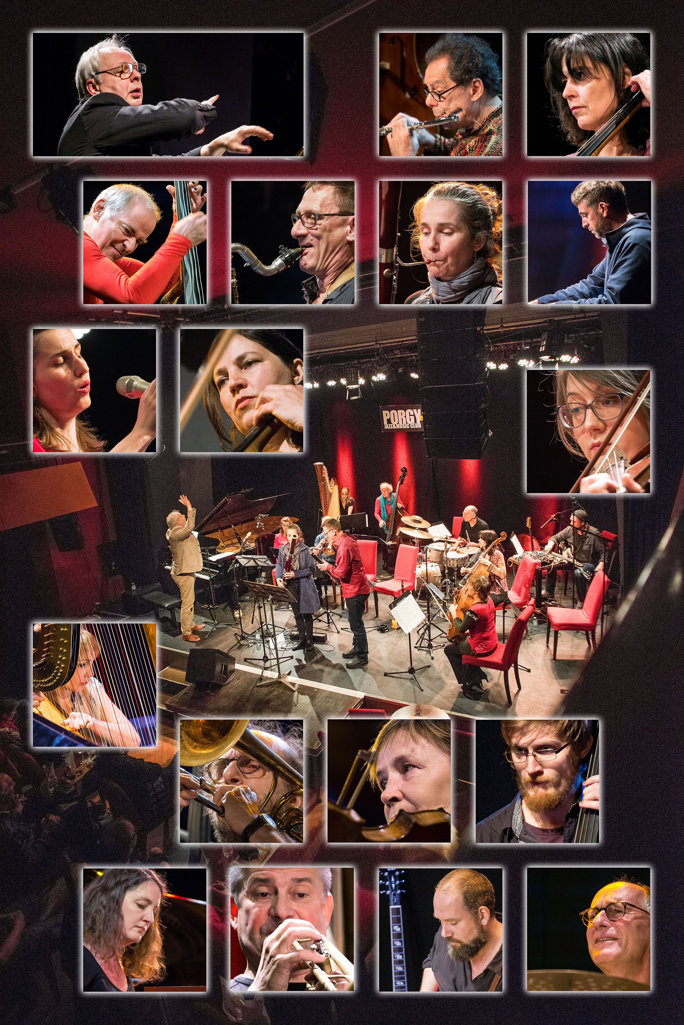 Georg Graewe (p, cond), Frank Gratkowski (cl, bcl), Maria Gstättner (basson), Sebi Tramontana (tb), Sara Kowal (harp), Martin Siewert (e-g, devices), Joanna Lewis (v), Margarete Herbert (cello), Peter Herbert (b), Wolfgang Reisinger (dr) + Gäste: Almut Kühne (sopran), Laura Strobl (viola), Thomas Berghammer (tp)