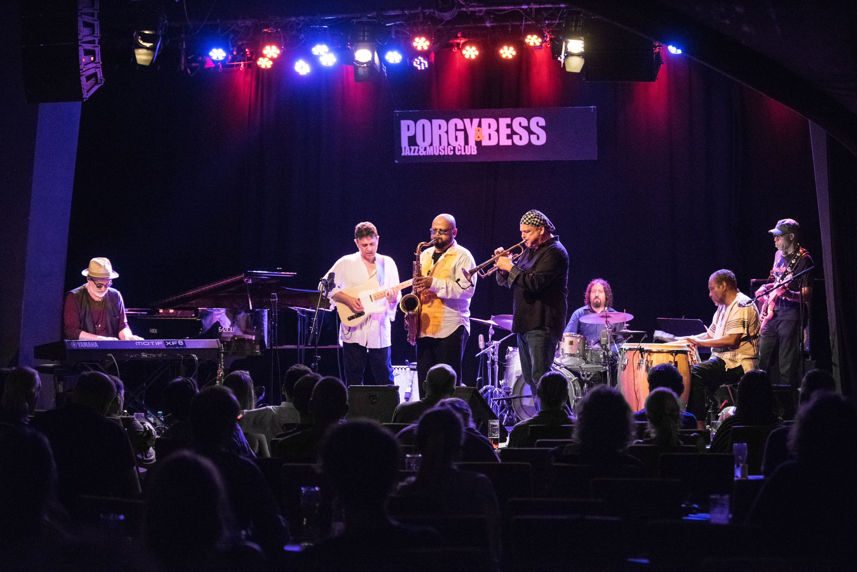Brodelnde, polyrhythmische Klangmassen, von der Afro-Latin Tradition gespeist, raffiniert den Beat umspielend, als auch ungerade Taktarten forcierend, erhitzten die Luft. Der Rest der Textur: harmonisch schnörkellos modal, geradlinig melodisch – partizipativ mit Gospel- und Soulassoziationen hantierend. Ohne Umschweife breitete sich darüber ein außerordentlich beherzt und vital aufspielender Azar Lawrence aus. Zumeist aus unisono mit dem Trompeter ausgeführten, eingängigen Themen, in bester Hard Bop-Manier, entwickelte der Saxophonist ausladende Improvisationen. Im Ton mächtig und gehaltvoll, wendig durch die Skalen gleitend, dabei das tonale System weitestgehend auslotend, verlagert auf lineare Gestaltungsprinzipien. Mit überlegtem Einsatz von Multiphonics und Überblaseffekten schliff Lawrence überraschende Kanten zu, die die Spannung entsprechend aufluden. Ideen gingen ihm nicht aus. Ebenso wenig dem sehr guten Blechbläser, der inspiriertest, vornämlich auf dem Flügelhorn solierte. Die restliche Band, sozusagen die Rhythmusabteilung, ließ in ihrem Drive keine Sekunde nach. Vielmehr agierte sie geschickt mit klanglichen Nuancierungen, Tempo- und Dynamikverlagerungen. Gerade die Achse Drums, E-Bass, Percussion brillierte mit mehrschichtiger Bewegungsenergie. Bassist Gerald Brown war der ausgewiesene Groovemaster. Er packte zudem die lange nicht gehörte Slaptechnik aus. Das erhöhte dann schon explizit den Druck. Vom unbändigen Sog profitierten auch der Pianist und der Gitarrist in mitreißenden Monologen, die gelegentlich mit Rockekstase flirteten. Homogenität in jeder Fortschreitungsphase zeichnet diese erstklassige Band aus. Zentraler Akteur blieb der Leader, der nach der Hälfte an Impulsivität zulegte, was eindringlich auf seine Partner rückwirkte. Sprudelnde, chromatische Klangkaskaden, die er durchdacht mit Kurzmotiven gliederte, folgten eine auf die andere. Die hymnische Inbrunst ging jetzt richtig auf, tauchte in hypnotische Repetitionen ein, feierte aber auch die schwebende Qualität meditativer Momente. Denen folgte umgehend abermals die differenziert strukturierte, rhythmische Kollektivwucht in afrikanisch-südamerikanischer Färbung. Bezugspunkte bleiben für Azar Lawrence die modalen Jazzerrungenschaften John Coltranes voll des meditativen Tiefgangs, metaphysischer Konzepte und der Spiritualität. Dieses Vermächtnis pflegt er mit Wahrhaftigkeit und in tradierter Diktion. Hat aber seine eigene Wegbarkeit gefunden, die er konsequent lebt. Durch die Improvisation, die Jetzt-Befindlichkeit, besitzt die Musik zudem unzweifelhafte Relevanz, die, bezogen auf diese jazzspezifische Art der Klanglichkeit und  Formplanung, jene „jazzrettende“ (was immer das heißen mag) aktuell gehypete  Relevanz eines Kamasi Washington bei weitem überflügelt.