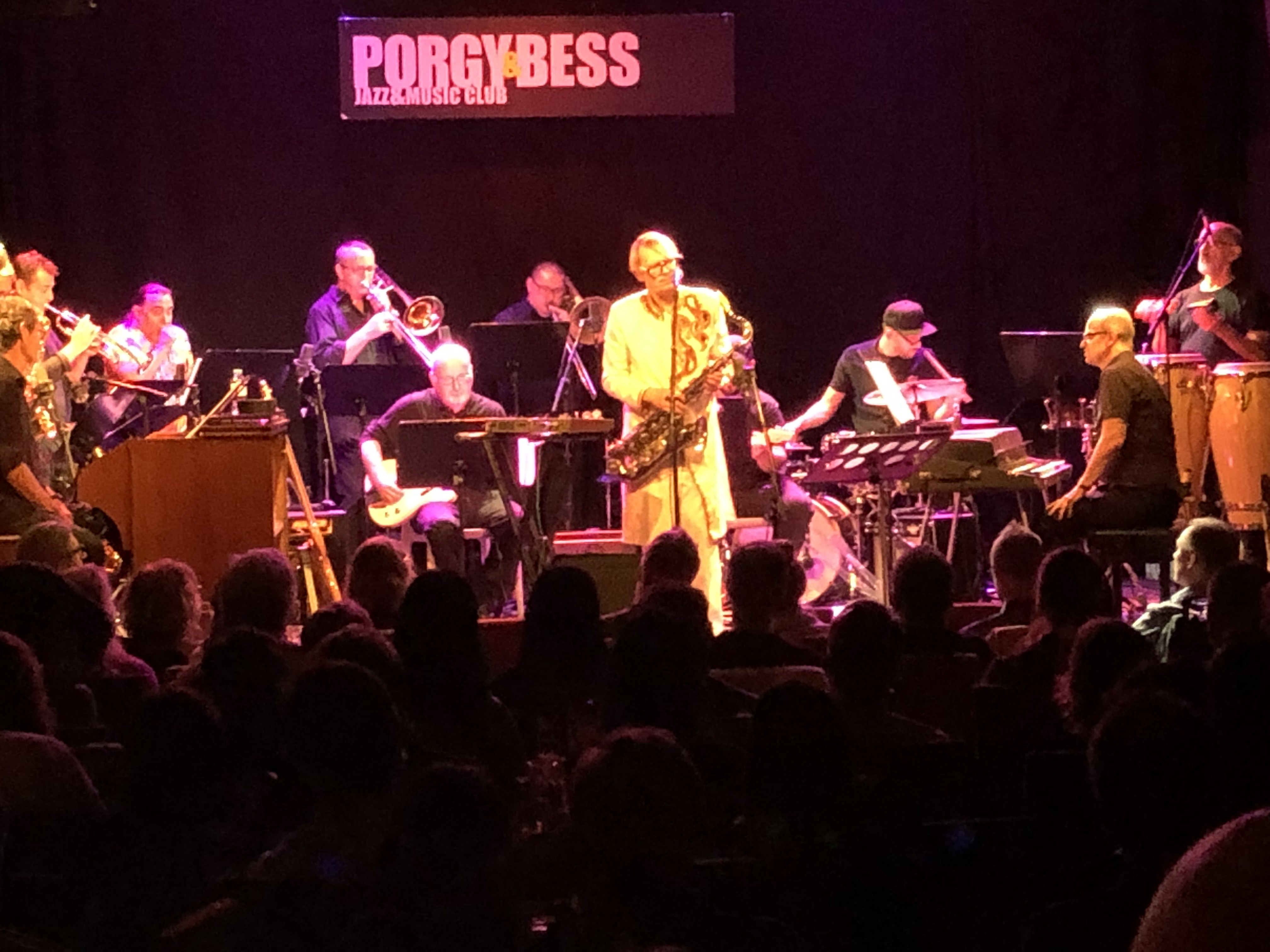 Er liebt den fliegenden Wechsel, den er bravourös beherrscht. Zwischen Teilbereichen der Musik des 20. Jahrhunderts – Art Rock, Afro-Beat, Jazz Moderne, Psychedelic Sounds, Electronica, Avant-Pop, Industrial. Tenor macht es sich dabei aber nicht einfach. Geschick beweisend, filtert er die Potentiale der einzelnen Ästhetiken heraus und lässt sie zu der seinen, bizarr verwunschen bis kraftstrotzend exaltiert, werden. Der wesentliche Botenstoff: ein massiver, vertrackt sich austobender Groove, der zudem überfallsartig Tempowechsel vollzieht und mitreißend mit rhythmischen Extravaganzen um sich wirft. Ein Fakt der in Tenors Arrangements für Jazz-Orchester (in diesem Fall eine abgespeckte Big Band- Besetzung) noch deutlicher in den Vordergrund trat. Die Songs wuchsen zu Kleinoden an. Einfachheit bestimmt die thematische Grundstruktur. Doch wie er darum hochdramatische, komplex verschachtelte, ständigen Wandlungen unterliegende Arrangements baut, bravo! Flexibilität ist auch so ein Fokus bei diesem Konzept. Aber eben auch wie überzeugend Tenor mit dieser hantiert. Die Stücke sind kurzgefasst, effizient eingeschmolzen. Ihre Funk-Mentalität erinnert an die kreativen Frühzeiten von Funkadelic oder Tower Of Power, die Art Rock-Schnipsel haben King Crimson/Gentle Giant Qualität, in den spacig psychedelischen Momenten entschweben sie in Sun Ra-Sphären und Jimi schmetterte entrückt Nonsenstexte über die Reise zu den Sternen und weiter. Das hypnotisch Rhythmische kommt fast so frenetisch wie einst bei Fela Kuti. Doch was den satten, differenzierten Sound angeht, hat er ganz genau bei orchestrierenden Jazz-Kalibern wie Gil Evans, George Russell, Don Ellis hingehört. Wohlgemerkt stehen ihm noch dazu kompetenteste Kooperationspartner zur Seite. Ein Kollektiv wie aus einem Guß. Beeindruckende Allround-Könner. Sie wissen genau wie man einen Bandsound formt ihn am kochen hält. Sind doch zudem die Vorlagen des sympathischen, durchgeknallten Finnen von expliziter Qualität. Mit dem harmonischen Wagemut, den polyphonen Abenteuerlichkeiten und charakteristischen Voicings. Demnach schien es auch, dass ein nicht unwesentlicher Einfluss betreffend deren Endfassungen von Ensembleleiter Herbert Pichler vorliegt. Unter Verwendung weniger Gesten lenkte dieser gleichwohl die leichtfüßige Präzision der Klangwerdung. Eingebundene, gewählt gesetzte Räume für individuelle Improvisationen bescherten zusätzlich ausweitende Spannung. Mittels liedhafter Linien auf der Flöte und rhythmisch gegliederten Tonfolgen am Tenor versprühte Lassi Lehto (Tenor als solcher geboren) seine schalkige Spiellaune. Er ist jetzt nicht der ausgewiesene Improvisator, aber mit seinen immer nur wenige Takte währenden Kundtaten, schuf er anregende Ideenfetzten oder skizzierte das Wesen der Songs. Ausführlicher konnten einige ausgesuchte Musiker des Orchesters des Spontanen walten. Abermals bemerkenswert das Niveau in jeder Hinsicht. Der Schlagzeuger, der Gitarrist und ausnehmend der Trompeter Aneel Soomary – Relevanz und Tiefgang. Jimi Tenor – lustvoller Querdenker, humoriger Freigeist, Deep-Groover. Vergnüglich bist, Tenorist.