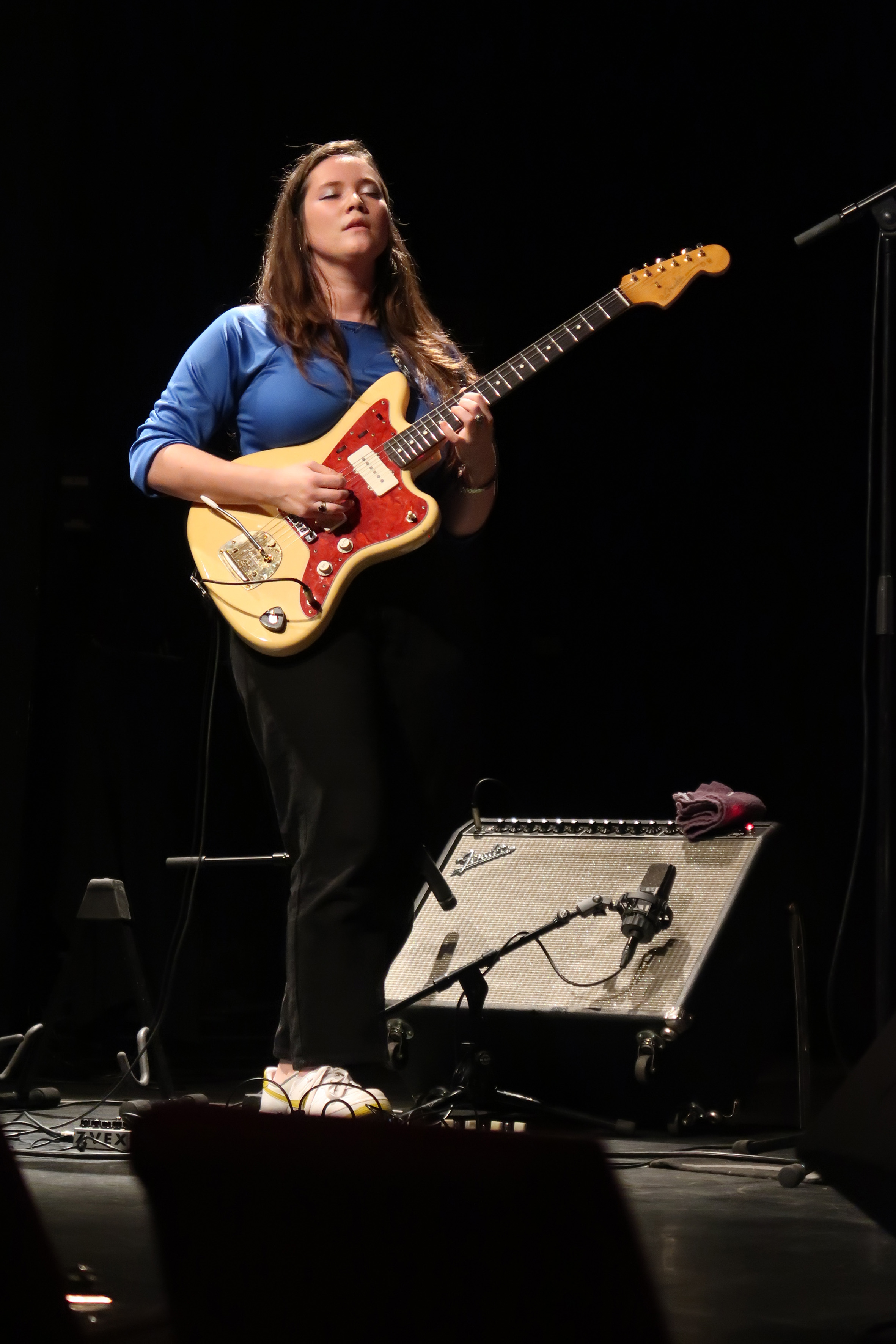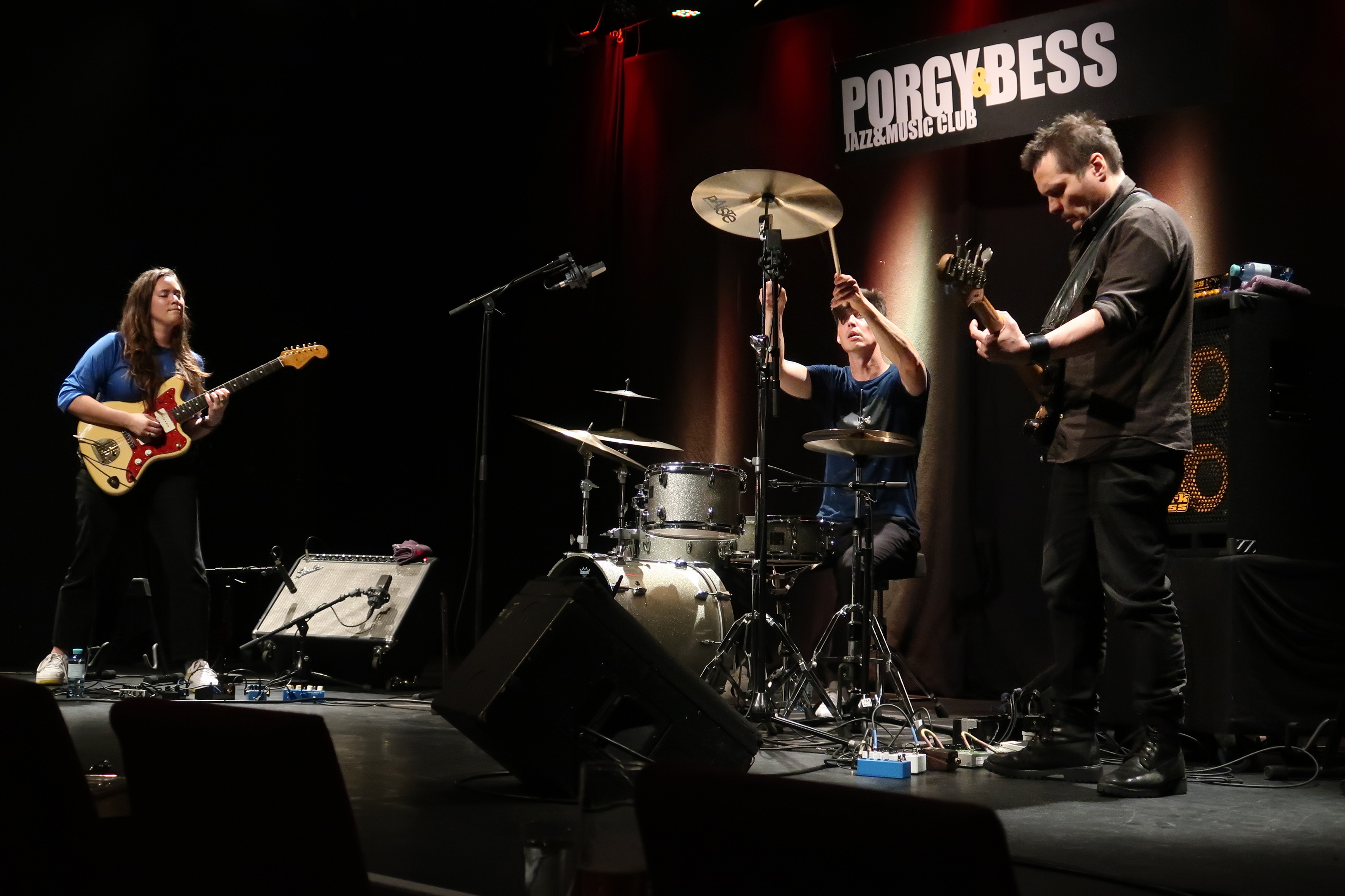 Ihr curriculum vitae weist zwei doch recht unterschiedliche musikalische Neigungen auf. Nachdem was darüber berichtet wurde, gelingt Wendy Eisenberg ein konvergierender Brückenschlag zwischen jenen beiden Verwirklichungsweisen. Bestimmend dafür ihr äußerst unkonventioneller, geräuschimmanenter Gitarrenstil. Auf der einen Seite stürzt sie sich mit ihrer Musik in einen vorgabenfreien Kontext, auf der anderen tüftelt sie Songs zwischen Neo-Punk, Noise und Metal aus. Stupende Gitarrentechnik macht vieles möglich, ist aber nie vordergründig dominant. Mit ihrem Trio, das die beiden umtriebigen, etablierten Musiker Trevor Dunn und Ches Smith vervollständigen, pflegt die junge, in Europa weitestgehend unbekannte Gitarristin Kommunikation mittels freier Improvisation. Maximal rudimentäre Head-Arrangements, die sich wenn überhaupt rein auf Stimmungen und Dynamiknuancen beziehen, könnten im Spiel sein. Klangfarbenspiel, die ganzen regulären und erweiterten Möglichkeiten der Instrumente umfassend, ad hoc entworfene Gruppendynamik/Form im Verbund spontanen Interplays ist der bedingungslose Ansatz. Spalt und Splitterklänge, trockene atonale Mäander, harmonische Alterationen, Geräuschbrüche prägten den Beginn der ersten, einen Set füllenden Improvisation seitens Eisenbergs. Smith warf krachende Einzelschläge ein und vom Bass war anfänglich nur niederfrequentes vibrieren zu vernehmen. Nachfolgend breitete der Schlagzeuger jenen wohlbekannten, metrisch entkoppelten rhythmischen Flow aus. Pulsationen auf dem Ride-Becken, aperiodische Fills, Rhythmusbögen. Der Bassist hantierte sodann auffällig häufig an seinem Effectboard herum, dennoch trat nicht viel mehr als ein indifferentes Wummern zu Tage. Es baute sich kein Bandsound auf. Nicht zuletzt deswegen, weil die MusikerInnen zu separiert agierten. Aufgegriffene Kommunikationsstränge fransten immer wieder aufs Neue aus. Der Ereignisprozess kam nicht in Gang. Eisenberg wirkte nicht wirklich gelöst. Zu oft griff sie etüdenhaft wirkende Arpeggien auf oder repetierte die immer gleichen Akkordbrechungen. Selbst wenn sie dann verschachtelte Tonfolgen auslegte, der Energielevel stieg, die Dichte zunahm, mündete das Geschehen primär in einen stereotypen Free Jazz-Mainstream. Klangqualitäten, Klanggesten waren nur allzu bekannt. Im zweiten Set ereignete sich ebenso wenig eine grundlegende Umorientierung. Ein Versuch der Zurücknahme verlor seinen Spannungsgehalt in einem statischen Pianissimo. Das Trio schalltete danach wieder in den Up Tempo-Gang. Fand aber wiederum nicht des Pudels Kern. Drei technisch beschlagene Musiker, keine Frage, aber in dieser Konstellation bräuchten sie ein ihnen auf den Leib geschriebenes Konzept. Oder eben doch noch einiges an Zeit um die Steine rollen lassen zu können. „Stone Free“ sozusagen.