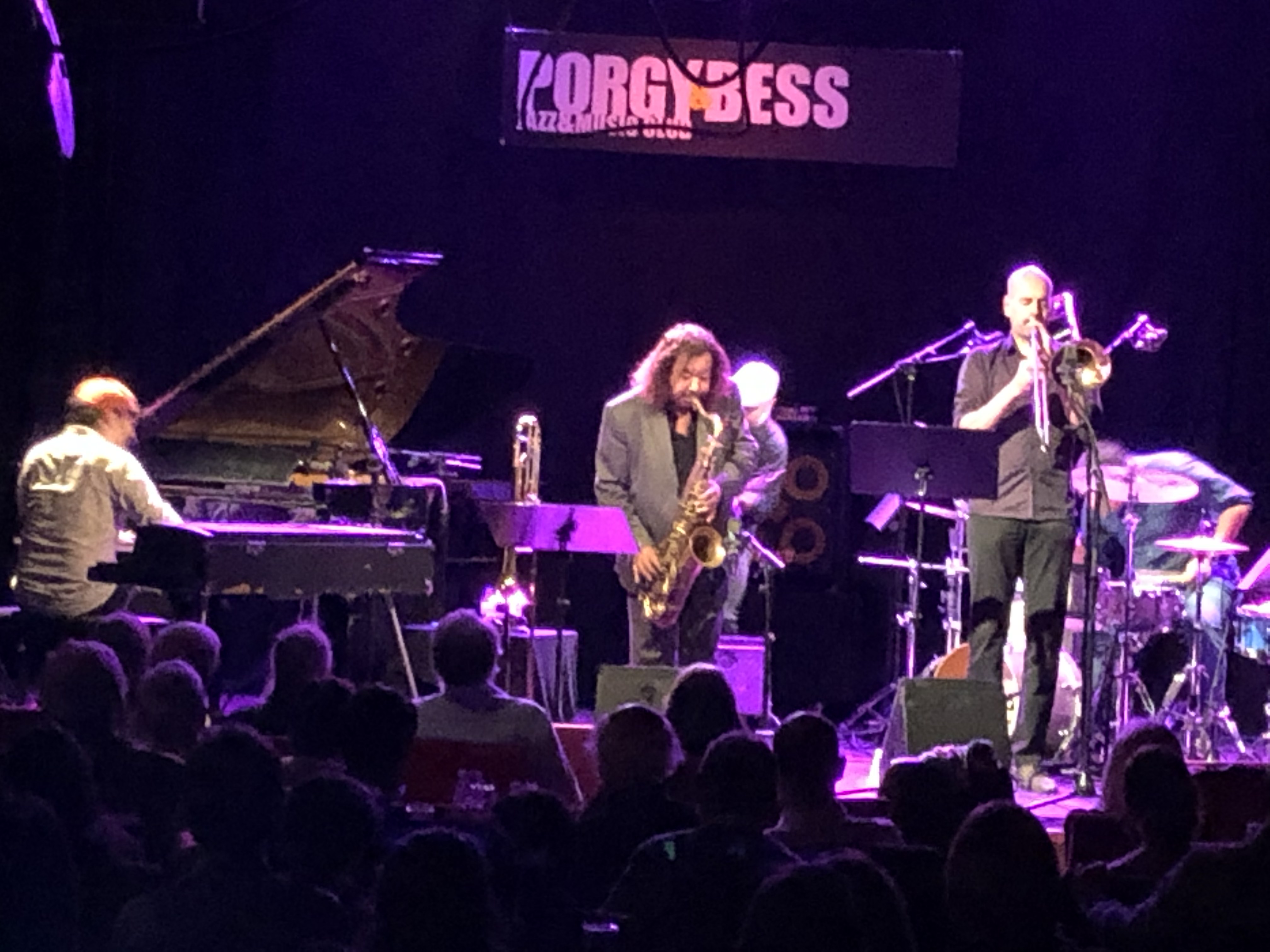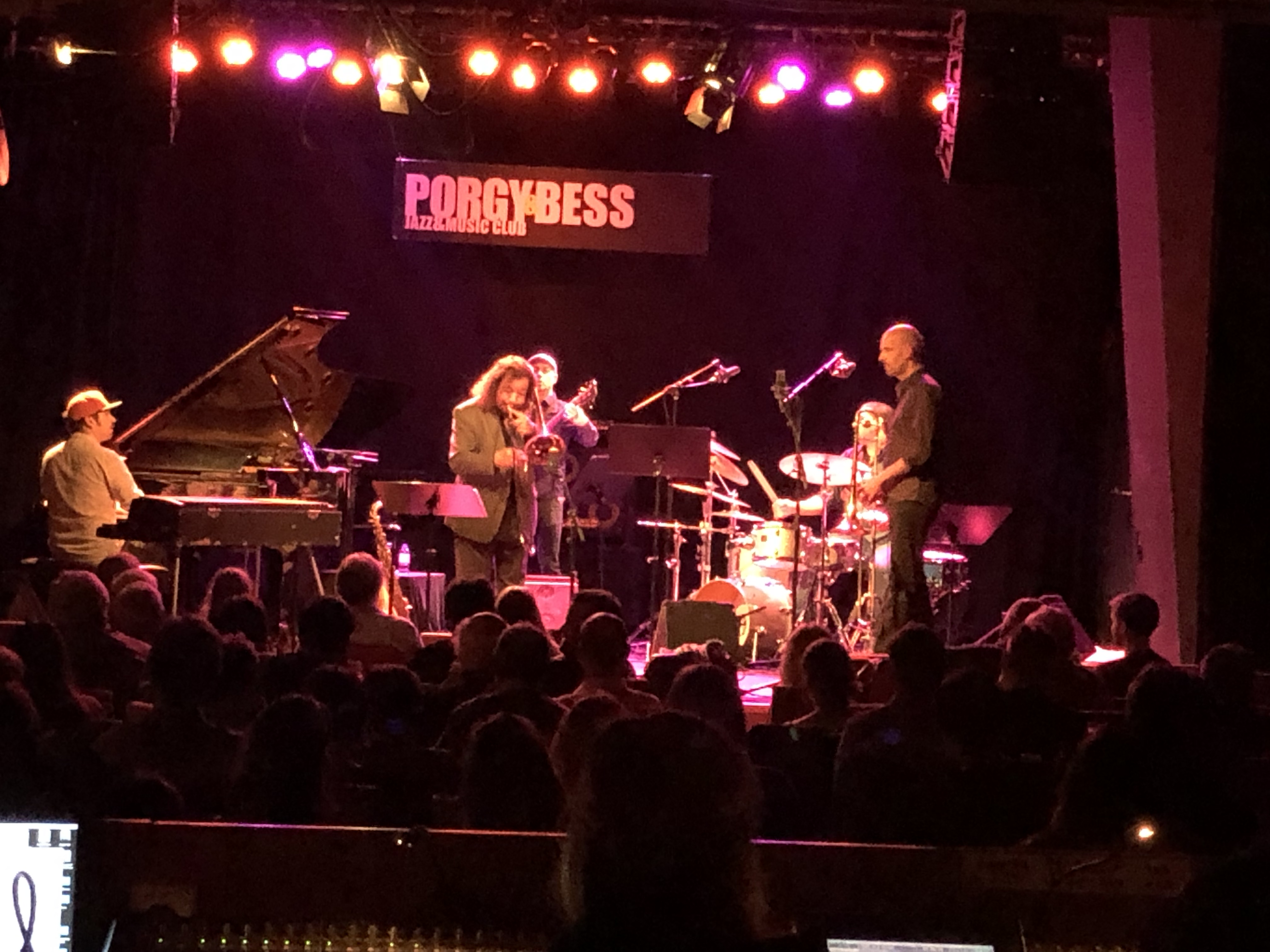 Wiewohl er ausgeprägte multiinstrumentale Fähigkeiten bzw. Neigungen besitzt, in der Zugabe eindrucksvoll demonstriert, gilt seine Liebe der Posaune. Auf dieser zählt Raul De Souza zu der Autorität der Jazzzunft Brasiliens. Er hat sogar eine spezielle vierventilige Posaune, die er „Souzabone“ taufte, entwickelt. Begonnen hat seine Karriere bei Sergio Mendes in den 1960er Jahren. In den Folgejahrzehnten spielte er mit dem Who is Who des Neo-Hard Bop, Latin-Funk Jazz Amerikas. Es gab dazwischen immer wieder Zeiten in denen sich De Souza zurückzog, doch seit einigen Jahren kooperiert der Blechbläser vor allem mit Musikern der nächsten und übernächsten Generation. Das impliziert, dass man mit einem Alter ziemlicher Reife bedacht sein muss. Stolze fünfundachtzig Jahre hat De Souza anzubieten. Hört und sieht man ihn, möchte man dieser Tatsache keinen Glauben schenken. Jedenfalls hat er sich mit der Band rund um den Posaunisten Christoph Schweizer (auch dieser Nationalität zugehörig) einen motivierenden, musikalischen Jungbrunnen geschaffen. Konzeptionell bewegte sich die Musik in der tradierten Form Thema-Solo-Thema, erhielt allerdings durch die ungeheuer spritzige, elansprühende Veräußerung ein außerordentliches Lebensfeuer. Hard Bop-Ideale wurden sehr kreativ weitergeführt, die Improvisationen der Musiker bewiesen eigenmächtigen Umgang mit den Changes, und in gemäßigtem Ansatz mit modalen funktionsharmonischen Erweiterungen zu Stimmigkeit geführt. Ermöglicht durch nahtloses Gruppengefüge bzw. bündiger Kommunikationsdichte. Angetrieben von einem druckvollen Groove – vermengt aus Latin- und Funkrhythmen. Der Schlagzeuger, ein Brasilianer in Wien, glänzte dabei auffallendst. Jedoch auch Pianist und Bassist nahmen diesen Schub euphorisch für sich mit. Ein Tragwerk, welches den beiden Bläsern, rahmenbedingt, ausreichend Bewegungsfreiheit bescherte. De Souza ist improvisatorisch kein Phrasendrescher, kein Tönesprudler.