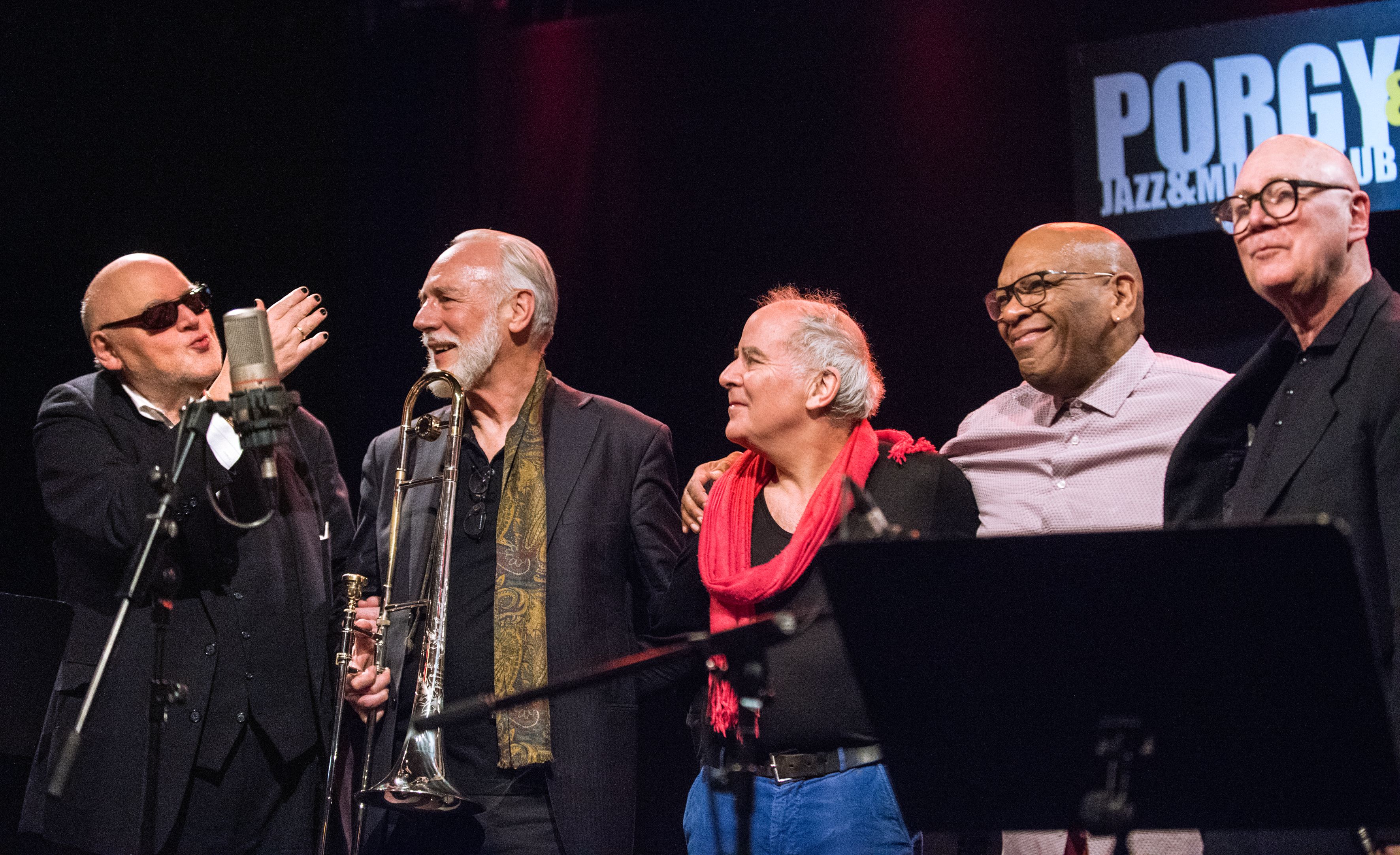 Dorthin entführt vom vielleicht besten Gespann in jener Umgebung: Herbert & Curtis. Ratzer begann eine Serie von Soli, im vielgerühmten Eigensinn, in denen er die harmonische Außenhaut überlieferter Standards sowie die seiner, in der Gemengelage Jazz/Blues/Soul brodelnden Erfindungen neu aufzieht. Und fallweise wie bei „Sweet Lorraine“ oder seiner Hymne „My Time“ mit seinem „Kauderwelsch-Croonen“ das Geschehen zusätzlich emotionalisiert. Wahrhaftigkeit des Soulman. Gleichsam legte der umwerfende Könner Ed Neumeister ein entsprechendes Quantum Gefühl offen. Kundgetan in kreativlastigen Phrasen und Figuren - teils skalenkonform, teils skalenentfernt -, individuell im Tonvorrat bis hin zum Geräusch und Multiphonics. Der mit der Posaune spricht. Beider wandelbare improvisatorische Fantasie, blieb jedoch stets in der Infrastruktur der Musik eingebettet. Verblüffend, in noch ausgeweiteterem Maße, die nun erreichte Leichtigkeit dieser Mischung aus notatorischer Festlegung und spontanen Inventionen. Koglmann hingegen ging die Modern Jazz-Diktion diesmal nicht unter die Nase, das jazzgekleidete Bluesen wollte sich seiner Gefühlswelt so gar nicht erschließen. Wodurch seine konterkarierenden, kontrapunktischen Melodie-/Harmonieeinfassungen nicht zu letztjährig aufflammender, aufladender Bissigkeit fanden. Was ihn öfters sich von der Bühne zurückziehen ließ. Obschon Ratzer ihn auch durch wertschätzende Worte aus seinem Kokon zu locken versuchte. In seiner ausschließlichen Solistenrolle konnte allerdings Koglmanns versierte Sophistication herausgehört werden. Der daraus resultierende Reibungszustand, ließe sich mit dem diskontinuierlichen, non-linearen Trompetenspiel Ornette Colemans zusammenbringen. Einige Funken zündeten. Die anderen vier wussten das in fantastischer Geschlossenheit zu verwerten. Im gewählten Kontinuum mit größtmöglicher Freiheit. Schwebend, swingend, singend. Abschließend kehrte Ratzer in einer Solo-Version von Hoagy Carmichaels „Stardust“ nochmals sein Innerstes nach außen und versprühte Sternenstaub. Jetzt las man in letzter Zeit gehäuft über den Einfluss künstlicher Intelligenz im Musikschaffen. Angesichts der an diesem Abend von Ratzer & Co demonstrierten menschlichen musikalischen Intelligenz, Gefühlsmacht, dem narrativen Vermögen, aus begnadeten Händen, wird die KI mit ihrer algorithmischen Starre eine musikgeschichtliche Fußnote bleiben.