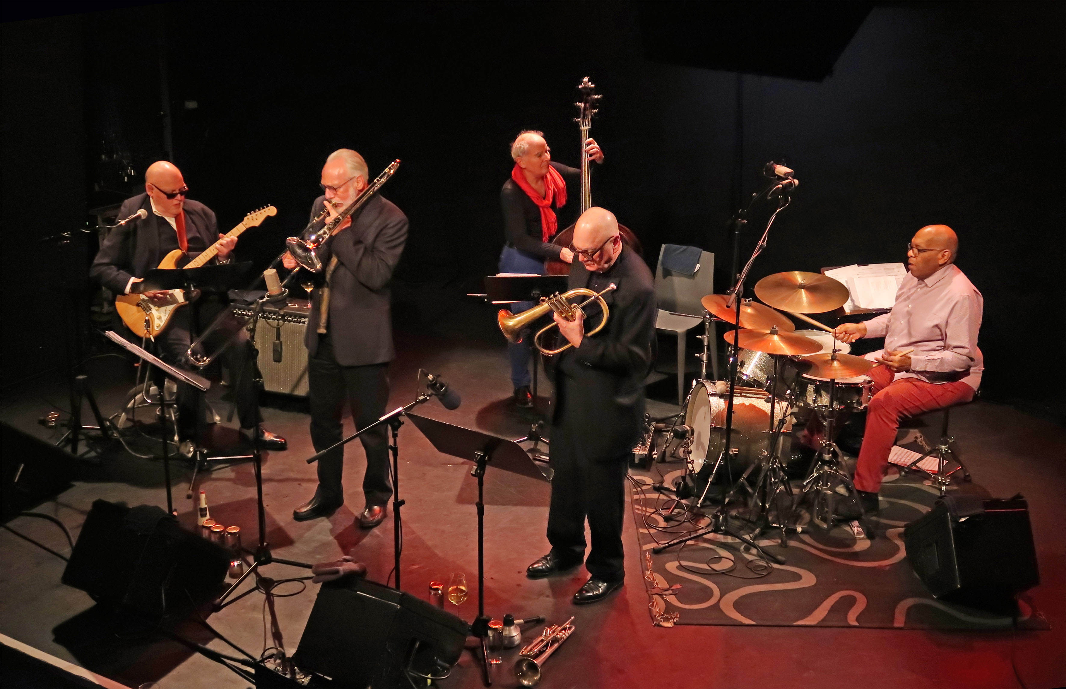 Dorthin entführt vom vielleicht besten Gespann in jener Umgebung: Herbert & Curtis. Ratzer begann eine Serie von Soli, im vielgerühmten Eigensinn, in denen er die harmonische Außenhaut überlieferter Standards sowie die seiner, in der Gemengelage Jazz/Blues/Soul brodelnden Erfindungen neu aufzieht. Und fallweise wie bei „Sweet Lorraine“ oder seiner Hymne „My Time“ mit seinem „Kauderwelsch-Croonen“ das Geschehen zusätzlich emotionalisiert. Wahrhaftigkeit des Soulman. Gleichsam legte der umwerfende Könner Ed Neumeister ein entsprechendes Quantum Gefühl offen. Kundgetan in kreativlastigen Phrasen und Figuren - teils skalenkonform, teils skalenentfernt -, individuell im Tonvorrat bis hin zum Geräusch und Multiphonics. Der mit der Posaune spricht. Beider wandelbare improvisatorische Fantasie, blieb jedoch stets in der Infrastruktur der Musik eingebettet. Verblüffend, in noch ausgeweiteterem Maße, die nun erreichte Leichtigkeit dieser Mischung aus notatorischer Festlegung und spontanen Inventionen. Koglmann hingegen ging die Modern Jazz-Diktion diesmal nicht unter die Nase, das jazzgekleidete Bluesen wollte sich seiner Gefühlswelt so gar nicht erschließen. Wodurch seine konterkarierenden, kontrapunktischen Melodie-/Harmonieeinfassungen nicht zu letztjährig aufflammender, aufladender Bissigkeit fanden. Was ihn öfters sich von der Bühne zurückziehen ließ. Obschon Ratzer ihn auch durch wertschätzende Worte aus seinem Kokon zu locken versuchte. In seiner ausschließlichen Solistenrolle konnte allerdings Koglmanns versierte Sophistication herausgehört werden. Der daraus resultierende Reibungszustand, ließe sich mit dem diskontinuierlichen, non-linearen Trompetenspiel Ornette Colemans zusammenbringen. Einige Funken zündeten. Die anderen vier wussten das in fantastischer Geschlossenheit zu verwerten. Im gewählten Kontinuum mit größtmöglicher Freiheit. Schwebend, swingend, singend. Abschließend kehrte Ratzer in einer Solo-Version von Hoagy Carmichaels „Stardust“ nochmals sein Innerstes nach außen und versprühte Sternenstaub. Jetzt las man in letzter Zeit gehäuft über den Einfluss künstlicher Intelligenz im Musikschaffen. Angesichts der an diesem Abend von Ratzer & Co demonstrierten menschlichen musikalischen Intelligenz, Gefühlsmacht, dem narrativen Vermögen, aus begnadeten Händen, wird die KI mit ihrer algorithmischen Starre eine musikgeschichtliche Fußnote bleiben.