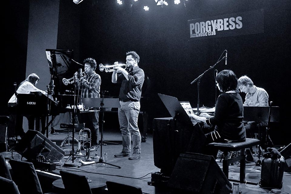Später ein Stockwerk tiefer: Blowin´ in the wind. Das unorthodox besetzte Projekt Kaze (japanisch für Wind). Japanisch-französische Freundschaft rund um die kapriziöse Pianistin Satoko Fujii. Erstmals dabei im Zuge der Zehnjahres-Jubiläumstour, die Down Town New York-Japanerin und Sampler-Pionierin Ikue Mori. Ein simultan gespielter, sirenenartiger Dauerton aus den beiden Trompeten stand am Anfang. Minutenlang. Minimale Modulationen erzeugten glimmende Obertonverläufe. Behutsam pirschten sich Piano, mit sparsam gesetzten, harmoniesperrigen Akkordalterationen, und ein rein soundkonzentriertes, zeitverschiebendes Schlagzeug heran. Ikue Mori generierte poitilistische, elektroakustische Tonkomplexe, denen ein asymmetrisch rhythmisches Pulsieren eingeschrieben war. Mit verblüffender Präzision platzierte sie ihr elektroakustischen Soundscapes dort wo im Schaffensprozess ihrer MitspielerInnen „Niederspannung“ überhand zu nehmen drohte. Neue Räumlichkeit ließ sie entstehen, die dem Prozess freier Improvisation, wenigen strukturellen Fixierungen unterliegend, Konsistenz und Architektonik gab. Vorwiegend die beiden Trompeter durchmaßen losgelöst improvisierend, monadisch als auch in parallel geführter Polyphonie, ausgiebig das spezifische Bandkontinuum. Frei fließende Phrasierung, geweitete Klangpalette, konzentrierte Impulsivität. Fujii schritt in ihren Exkursen gleichfalls Grenzen ab und darüber hinaus. Blieb jedoch in ihrer Sprödigkeit irgendwann hängen, was das harmonische Fluidum der Musik zu Bruchstückhaftigkeit verdammte. Mori fing mit ihrem einzigartigen Samplekonglomerat aus artifiziellen und mechanischen Sounds etliche Versprengtheiten auf, konnte aber den Spannungsabfall gegen Ende hin nicht kompensieren. Das freie Erfinden von Form, die momentgenerierte Improvisation ohne texturelle Verankerung tanzte hier zwar phasenweise am Grat des Scheiterns, dennoch war die Musik im Endeffekt in ihrer erkundenden Risikobereitschaft, ihrer stringenten Substanz überzeugend.