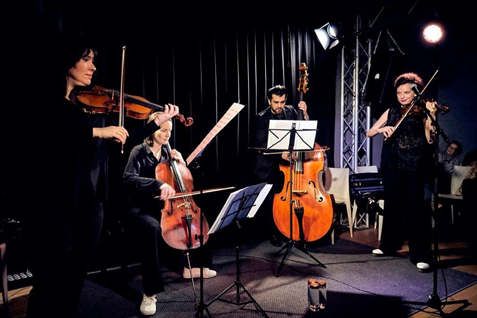 Intrada: Strenge Kammer. Corazón resplandeciente. „Kammerrat“ Renald Deppe, Mastermind der Lost & Found Konzertreihe in eben dieser Örtlichkeit, dem wunderbaren Versuchslabor für junge österreichische oder hier lebende MusikerInnen, hatte diesmal das „Streichquartett“ der gebürtigen Costa Ricanerin Phoebe Violet, seit etlichen Jahren in Wien ansässig, zur „Kammermusik“ geladen. Betreffend der Instrumentierung des Ensembles, wenn man so will, der sogenannten Gattung zurechenbar, aber was die Inhaltlichkeit und Extravertiertheit der musikalischen Hervorbringung betrifft, hebt das Quartett, das übrigens anstelle der Viola einen Kontrabass einbezieht, kämmerische Intimität aus den Angeln. Allem voran durch die beeindruckende Bühnenpräsenz der Leiterin an der Geige und mit Stimme. Das übertrug sich unmittelbar auf ihre Mitspielerinnen/Mitspieler. Agata Sikorska (v), Zsófia Günther –Mészáros (cello) – Mitwirkende bei den Wiener Symphonikern – und an Stelle des verhinderten Mathias Krispin Bucker (b) ein ebenfalls in Wien lebender Venezolaner. Für die Musik, verfasst in kunstfertig arrangierten Instrumentalstücken bzw. nochmals unter die Haut gehenden Liedern, echtem Leben zugewandt, steht Violet gerade. Und wie. Als Ingredienzien für ihre klangweltliche Individualität sind ihr lieb und wert, südamerikanisch Volksliedhaftes, Sephardisches, Flamenco, mediterrane Folklore mit teils Anregungen der europäischen Kunstmusik gekoppelt, aber auch in die Umgebung von Jazz und Popmusikalischem verpflanzt. Angetrieben von sattsamer Latin-Grooveness. Virtuos musikalisch kollektiviert – glühenden Herzens.
