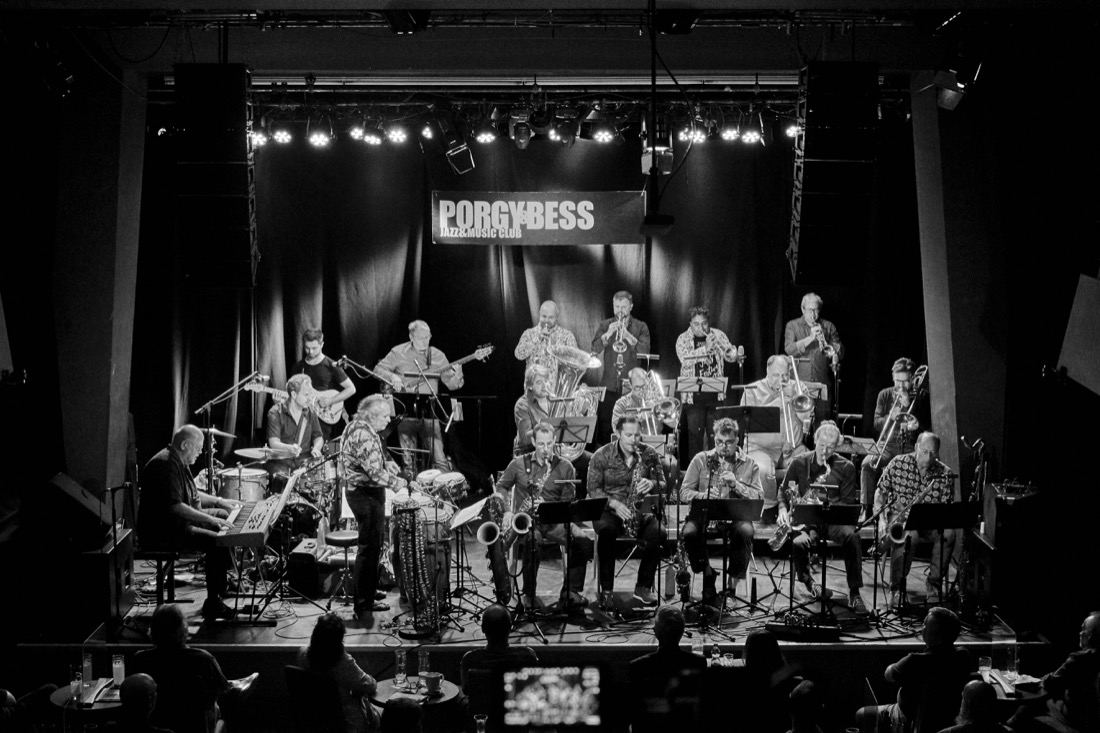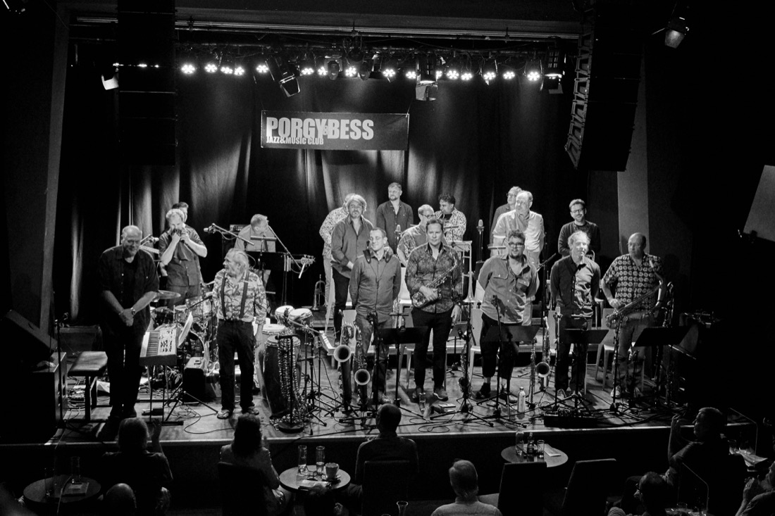Der große, alte Dampfer der österreichischen Jazz Big Band-Kultur feiert die Vollendung des sechsten Jahrzehnts irdischen Daseins ihrer Gründerväter respektive kompositorischen Masterminds Christoph Cech und Christian Mühlbacher. Geschlagene fünfunddreißig Jahre bereiten die beiden Orchesterchefs kalorienreiche Klangmenüs zu, die durch konsequent beigefügte strukturelle und klangfarbliche „Neugewürze“ die Gehörgangfreuden des geneigten Auditoriums aufs sinnintensivste zu erwecken wissen. Somit sei der soeben freierfundene „Duke-Award“ für fortwährendes Schaffen, den beiden Großformat-Meistern mit Hochachtung zugedacht. Im Grundton erklang die Musik dieses Abends, verpackt in Kompositionen älteren Datums bzw. Werken die im präsentationsfreien Zeitraum der pandemischen Beschränkungen entstanden, elegant und gediegen. Mit großem Herz und spritzigem Geist huldigten die eine ausgesprochene Vielfalt pflegenden Arrangements dem klassischen Big Band-Jargon. Viel „Ellingtonia“ in der Satzorganisation klingt an, aber auch die Weiterführungen von Dukes Erben, speziell jene von Gil Evans oder George Russell werden NC-eigen referenziert.
