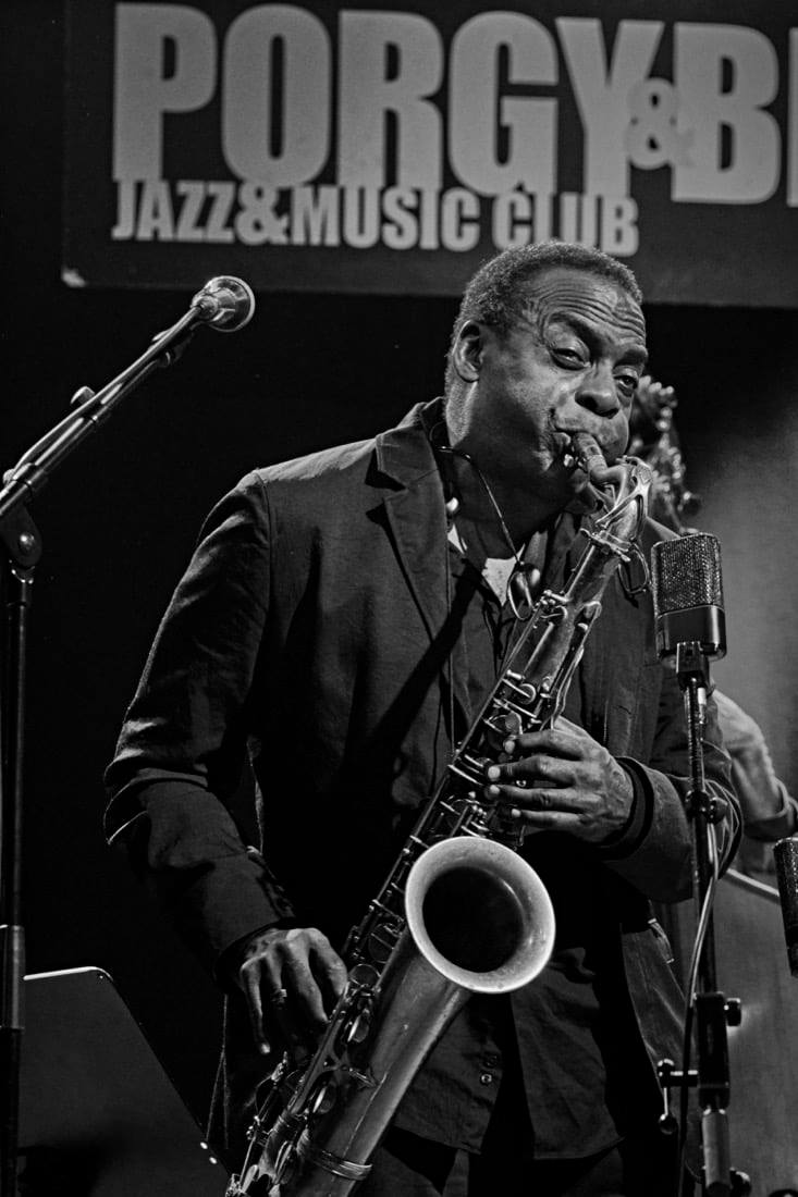 Mit 3. November hieß es für alle Kulturschaffenden und –vermittler wiederrum zurück an den Start. Neben den üblichen sozialen Kulturtechniken die wohlbekannt längstens tabu sind, bedeutete dieser Umstand erneut Konzerte ohne Publikum und somit abermals lediglich als Stream. Dahingehend auf bereits reichlich Erfahrung zurückgreifen könnend, da man bereits Anfang April dieses Jahres als erster Konzerte in Real Time! streamte, begann das Porgy-Team bereits tags darauf aufs Neue mit der live gestreamten „musikalischen Hauszustellung“. Einiges aus der vorgesehen Programmplanung, vor allem internationale Acts, musste geändert bzw. verschoben werden. Jedoch es wurde wie gewohnt fast jeden Abend leibhaft performt. Nur ab und an war ein Rückgriff auf das inzwischen relativ groß angewachsene Mitschnitte-Archiv notwendig. Im Fokus steht abermals die unermüdlich kreative, hochklassige öster-reichhaltige Gegenwarts-Jazzszene. Wahrlich fegten bisher Kollektive wie Preinfalk/Vogel/Jardim, Studio Dan, Martin Reiter & The Flow, European Residents, das Upper Austrian Jazz Orchestra von der Bühne virtuell in die Wohnzimmer. Somit kommen wir zu einer weiterhin relevanten Lichtgestalt des Planet Jazz mit Verwurzelung in dessen „Black-Line“, die es, mit allen pandemischen Geboten sich arrangierend, um nichts in der Welt unterlassen wollte, die Leere des Clubs mit lebensenergischem Spiel in Schwingung zu versetzen: David Murray. Welch gewichtige Geste. Welch Affektivität er hineinlegte. Der Saxophonist rief seine österreichische Band zusammen. Das vom Festival-/Konzertpromotor, Labelbetreiber und Posaunisten Paul Zauner initiierte und zusammengehaltene Working-Ensemble Blue Brass. Dieser singuläre Ton auf dem Tenorsaxophon. Echos aus allen Perioden der modernen Tenorsaxophon-Geschichte wehten herüber aber ebenso, und derzeit wieder umso dringlicher, wiederhallte in seinen Klangreden die soziopolitische Leidensgeschichte der Afro-Amerikaner. Anklagen eines Malcolm X oder Martin Luther King klangen durch. David Murray ist unvermindert Avantgardist im kreativen Sinne. Mit profundestem Wissen/Erfahrungsschatz und offensichtlich limitloser Technik konjungiert er die Tradition zur Avantgarde und die Avantgarde zur Tradition. Wiedergespiegelt in einem stimmigen Programm aus Murray-Klassikern, „Morning Song“, „Acoustic Octo-Funk“, „Flowers For Albert“, neuen Stücken - „Adrian“, „Nektar“ und Piecen von Butch Morris, u.a. „Spoonin´“. Gegossen in Strukturen/Formen die man als zeitfließenden, pluralistischen Jazz-Modernismus charakterisieren könnte. Definiert mit eigenständigem Gruppensound. Klarerweise bestimmt durch Murrays Klangmächtigkeit und seiner kompositorischen Meisterschaft was Kontrapunktik und Rhythmuswechsel anbelangt. Umgesetzt mit eloquentem kollektiven Bewusstsein. Solistisch überragte freilich Murray, verlor das Bandgefüge allerdings nie aus den Ohren, packte seine Partner unaufhörlich bei den Schultern. Der Bann seines Spiels wirkt wie eh und je, wenn er in den Improvisationen das Tenor von samtenen Klangwolken im tiefen Register über harmonisch ausgeklügeltes, boppiges Phrasieren bis zu einmaliger diskanter Mehrstimmigkeit durchmisst. Mit dem Griff zur Bassklarinette ist die Losung Murrays kurzfristig: Funkadelic. Permanente Überraschungsmomente kitzeln Details wie etwa Motivketten und klar geclusterten Geräuschfetzen hervor. In all dieser Ekstase ist Gospel und Blues ein Ursprung. Als ganz persönliche Geschichte. Paul Zauner, mit der Inbrunst der Überzeugung, brachte schlichte, herzenswarme Kurzgeschichten mitein, die wie Fragen an den Meister klangen. Sie blieben nicht unbeantwortet. Melodischer Feinsinn kennzeichnete ein wendiges Bass-Solo das Wolfram Derschmidt beseelt aus den Fingern floss, der zudem mit Dusan Novakov, unter dessen Extremitäten die Musik frenetisch zu swingen begann und eine flexible Tempodramatik entwickelte, zu einem austarierten Motorikkraftpacket zusammensteht. Fire Of The Hipmen.